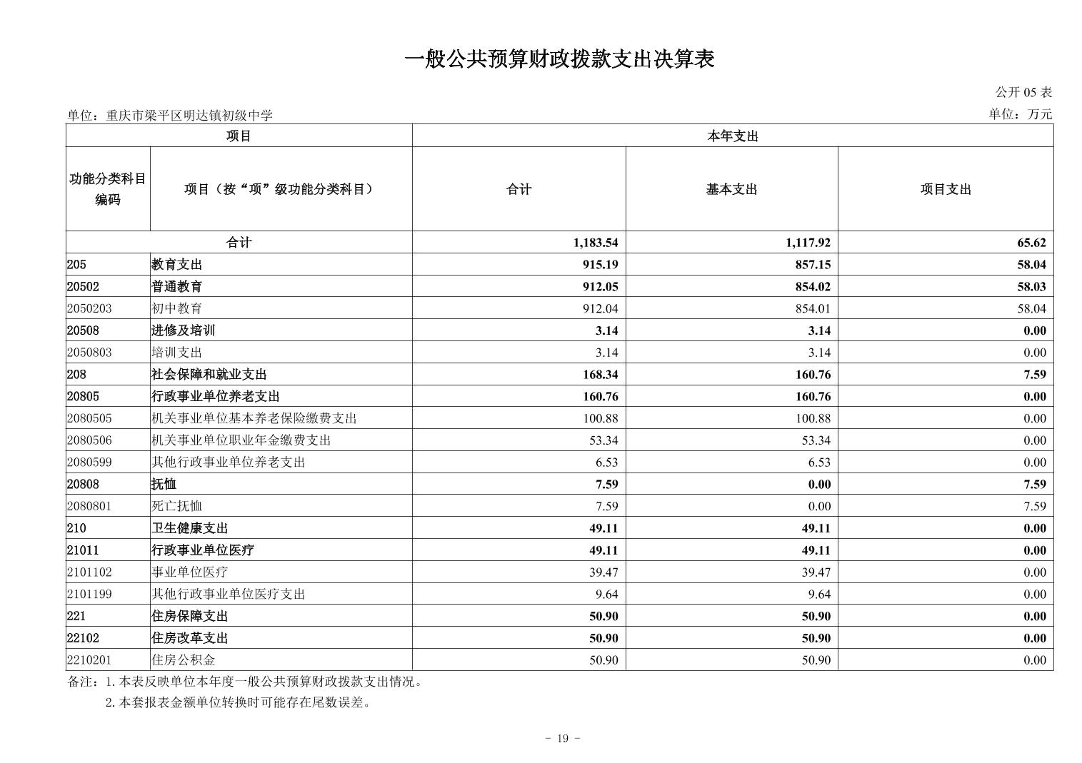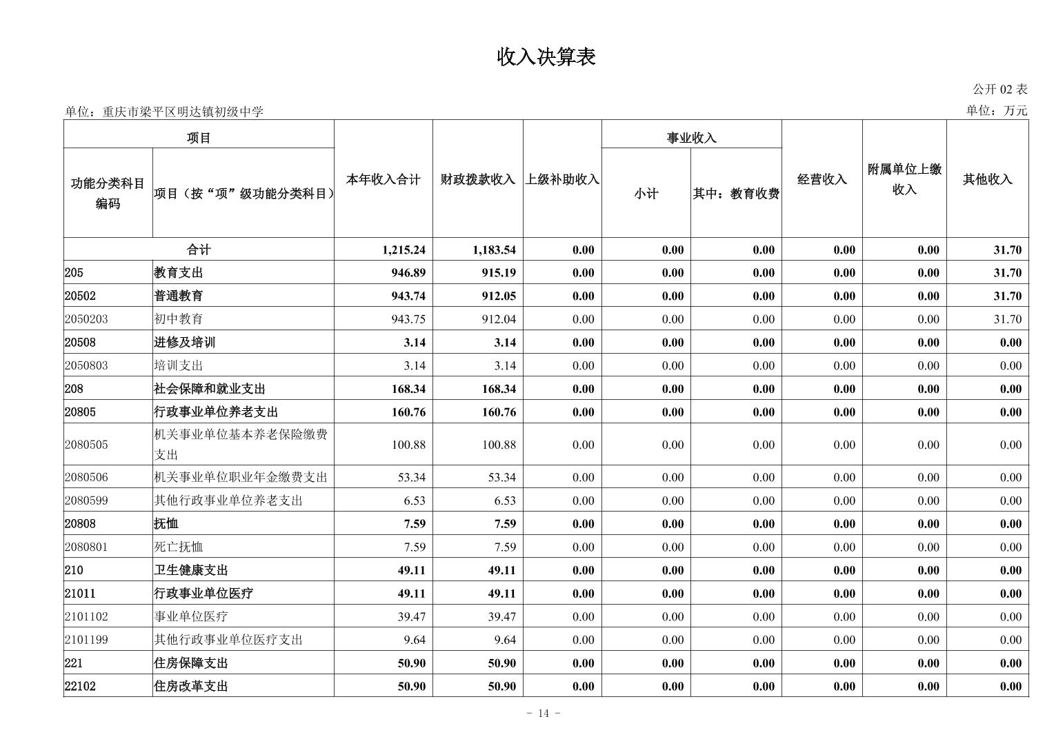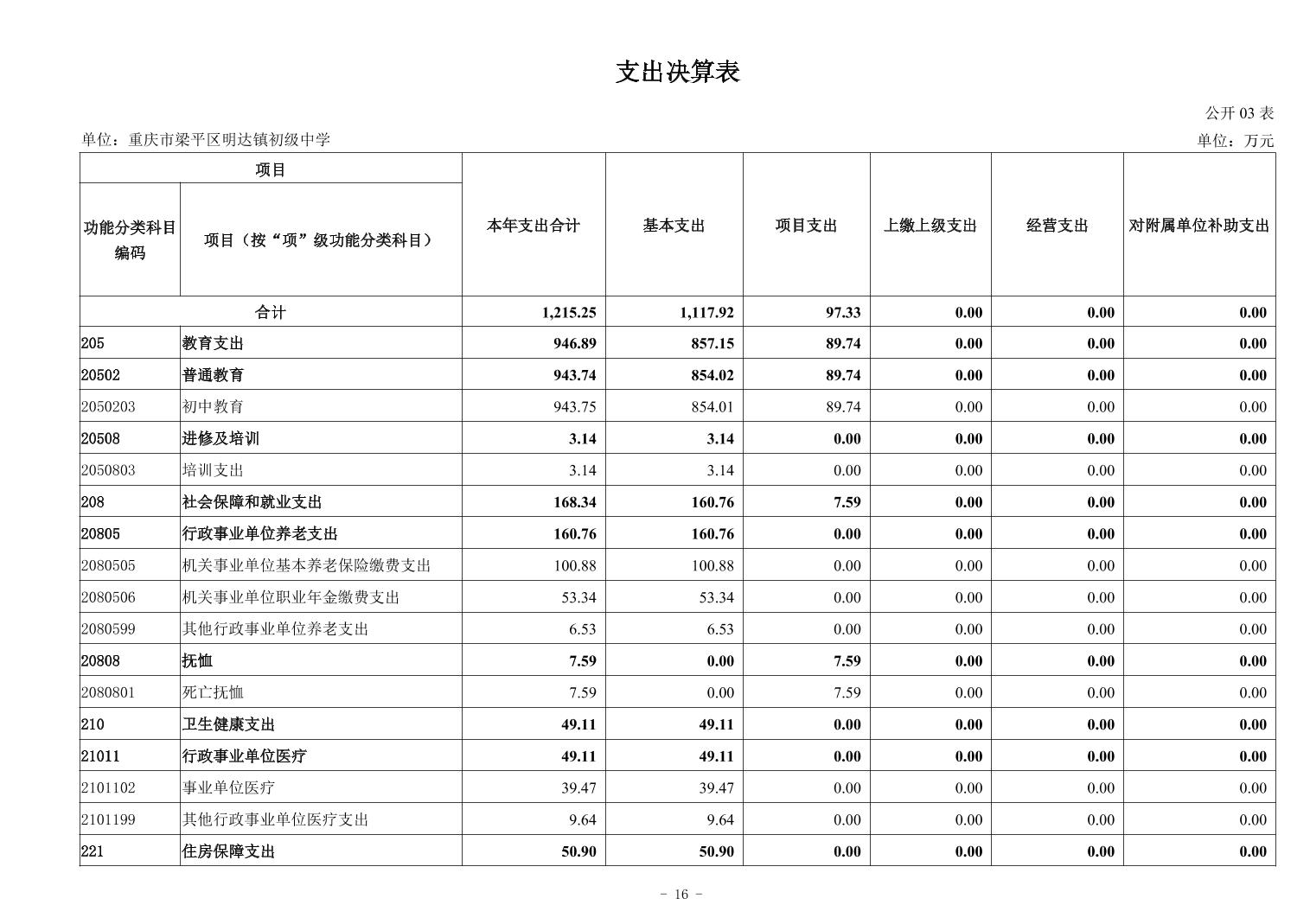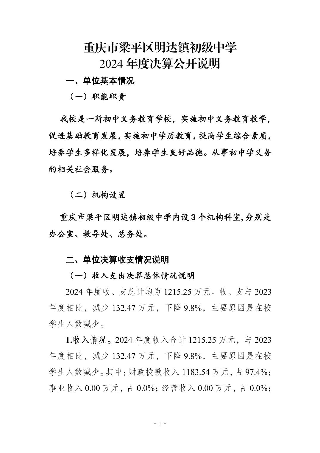 标题 | 重庆市梁平区明达镇初级中学2024年度决算公开说明 |