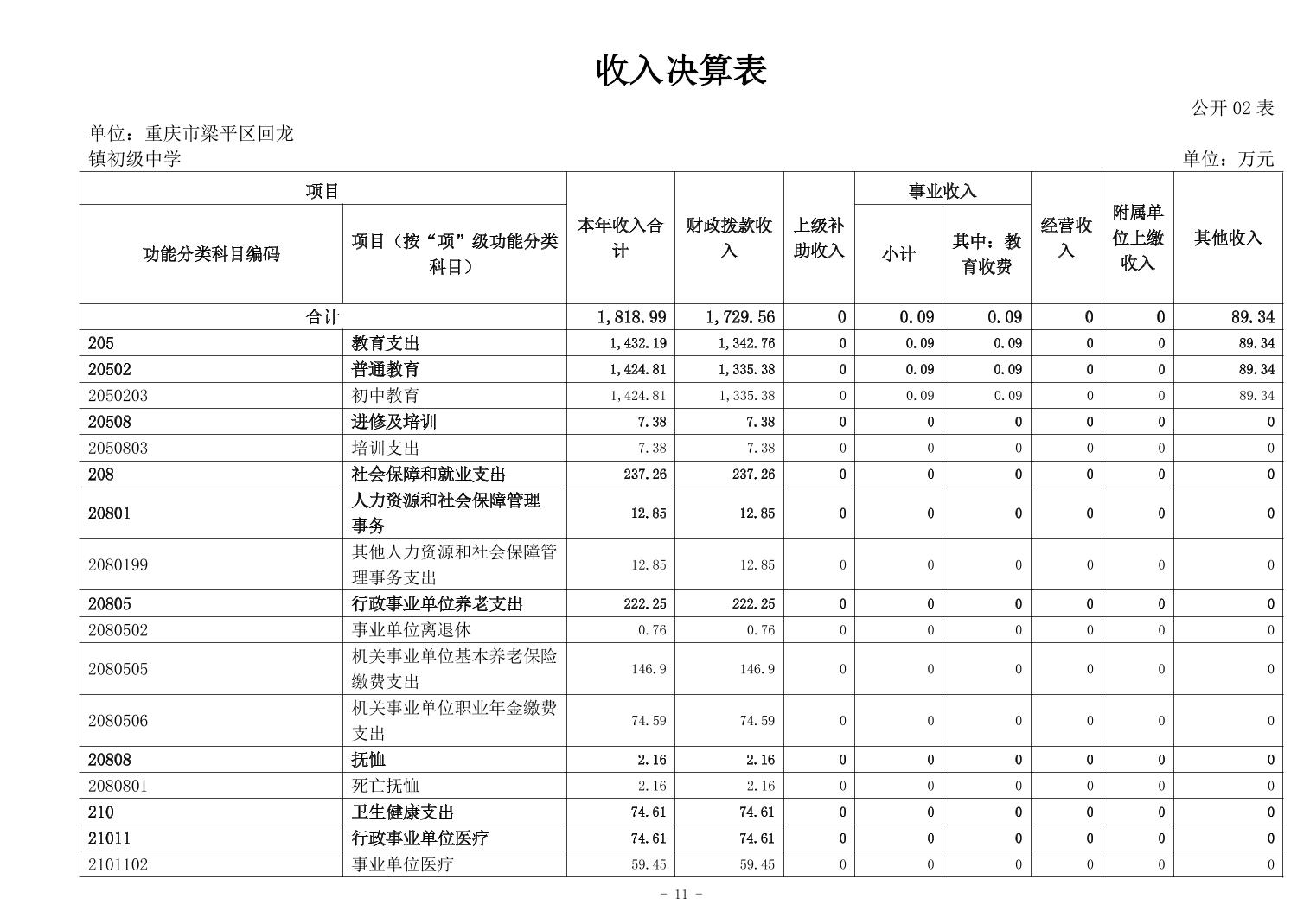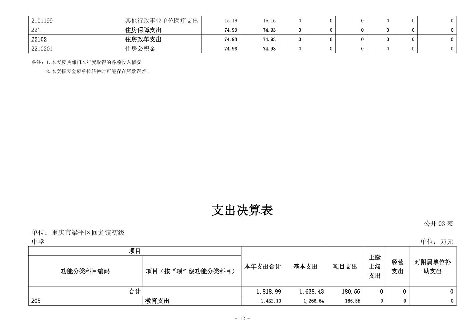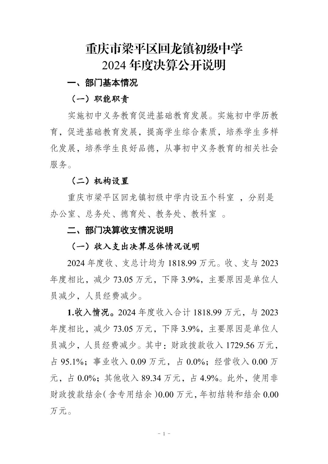 标题 | 重庆市梁平区回龙镇初级中学2024年度决算公开说明 |