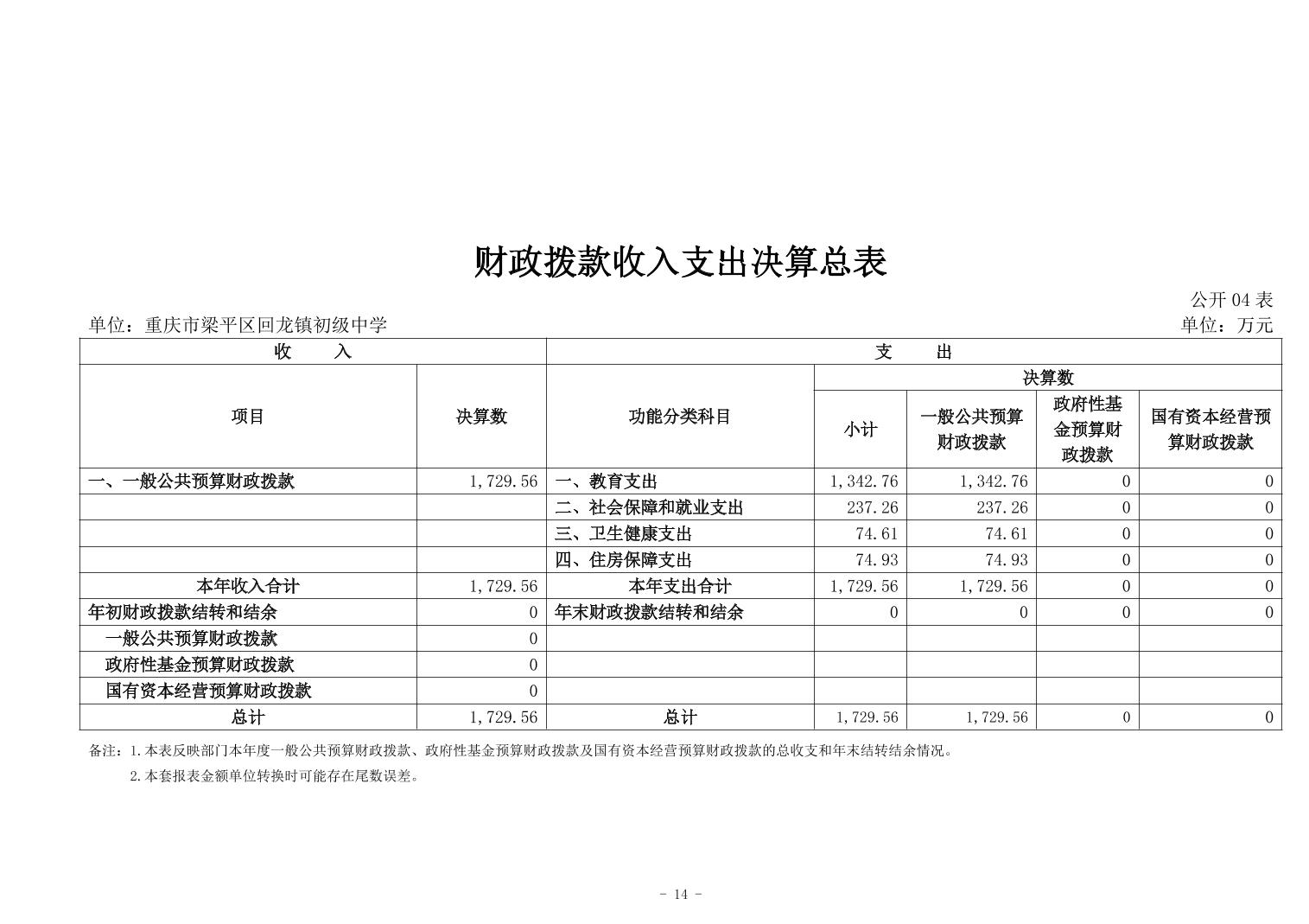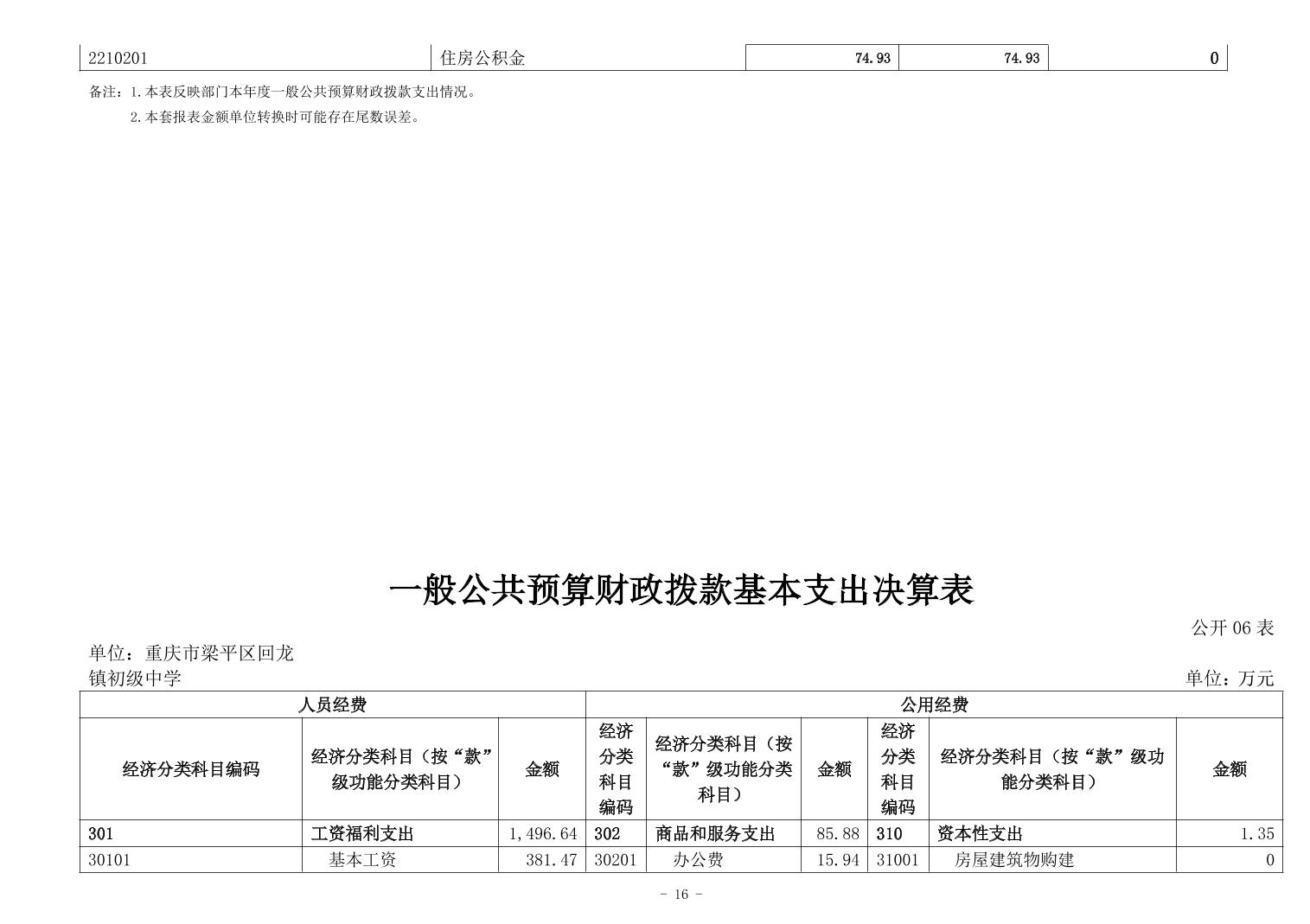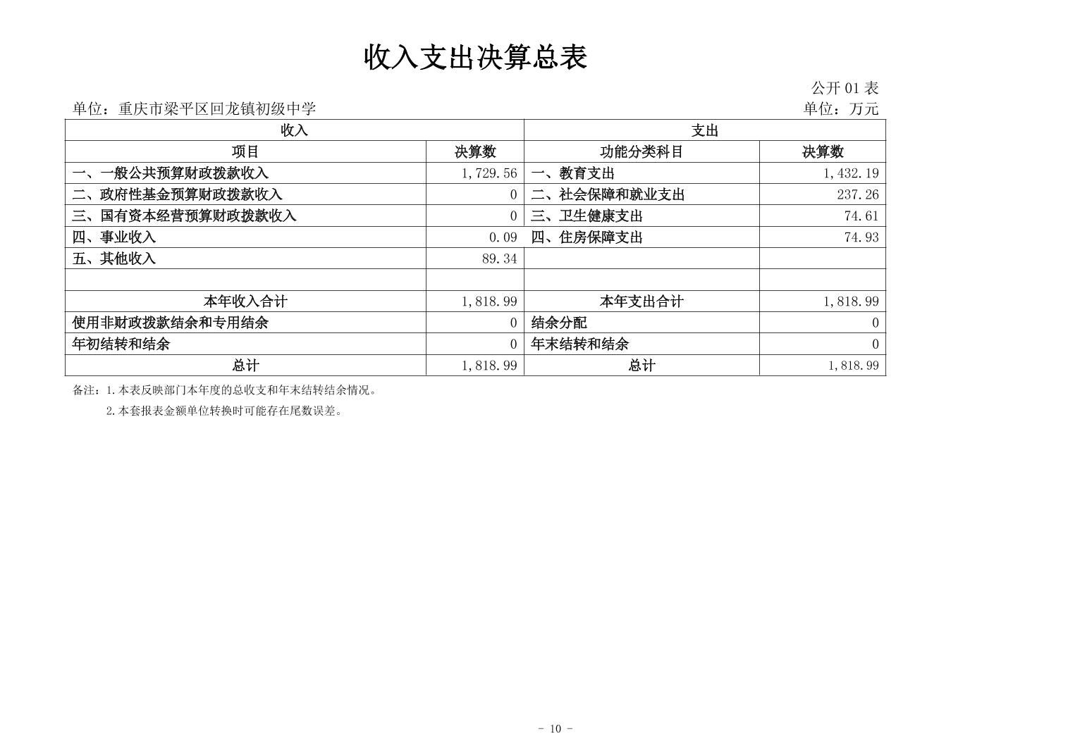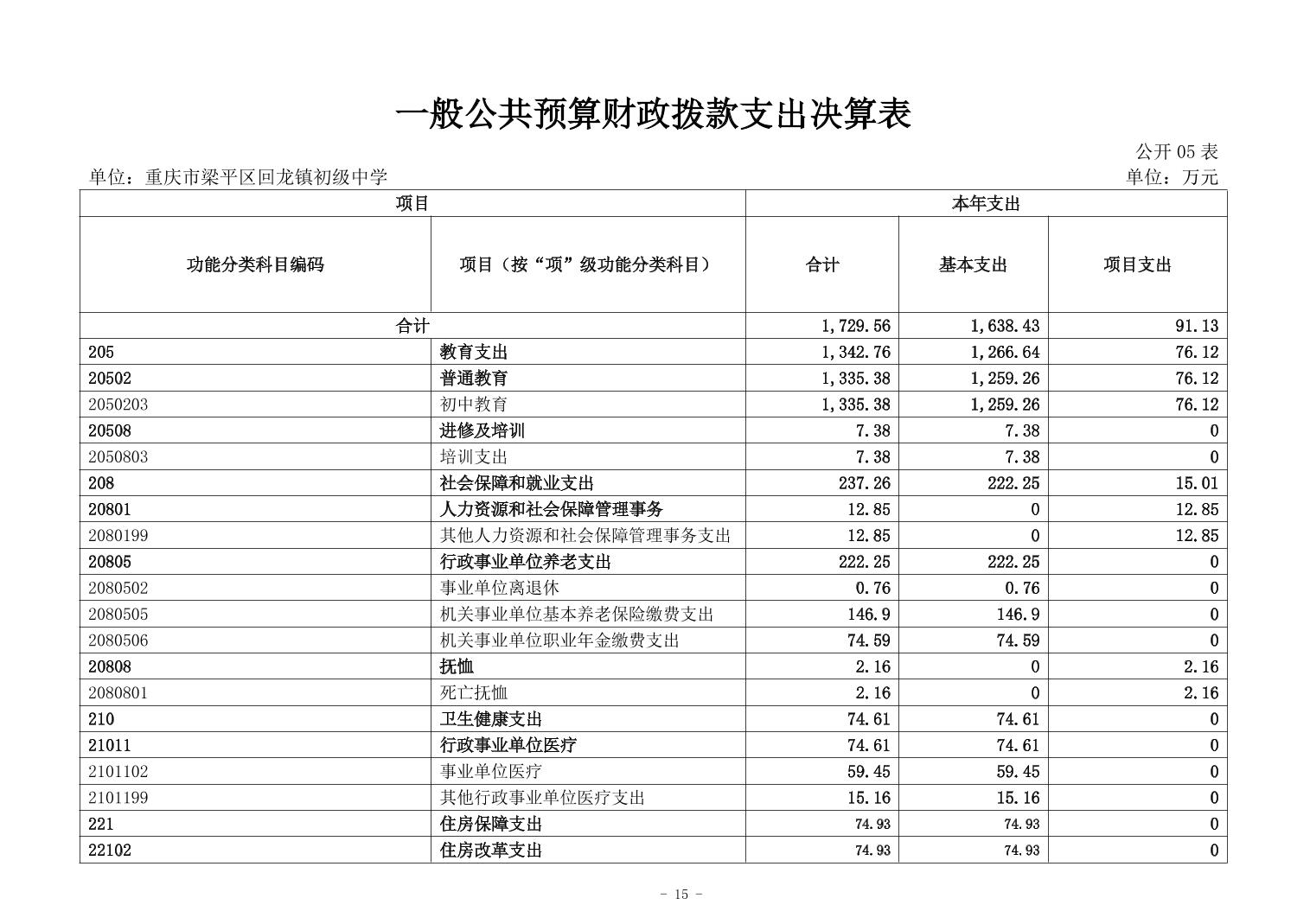 标题 | 重庆市梁平区回龙镇初级中学2024年度决算公开说明 |