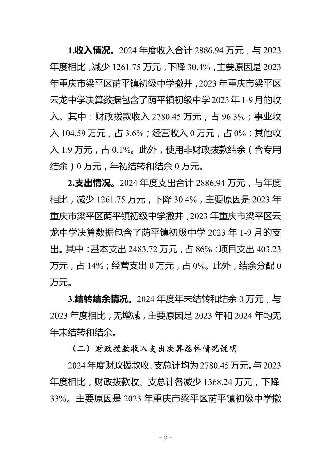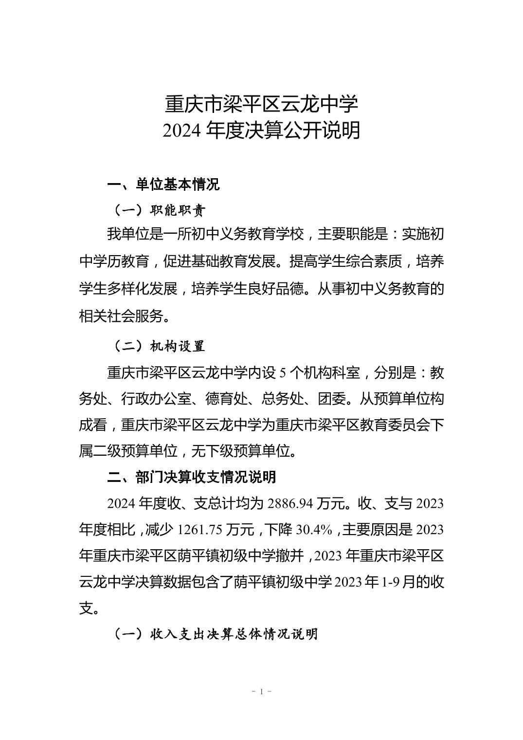 标题 | 重庆市梁平区云龙中学2024年部门决算公开说明 |