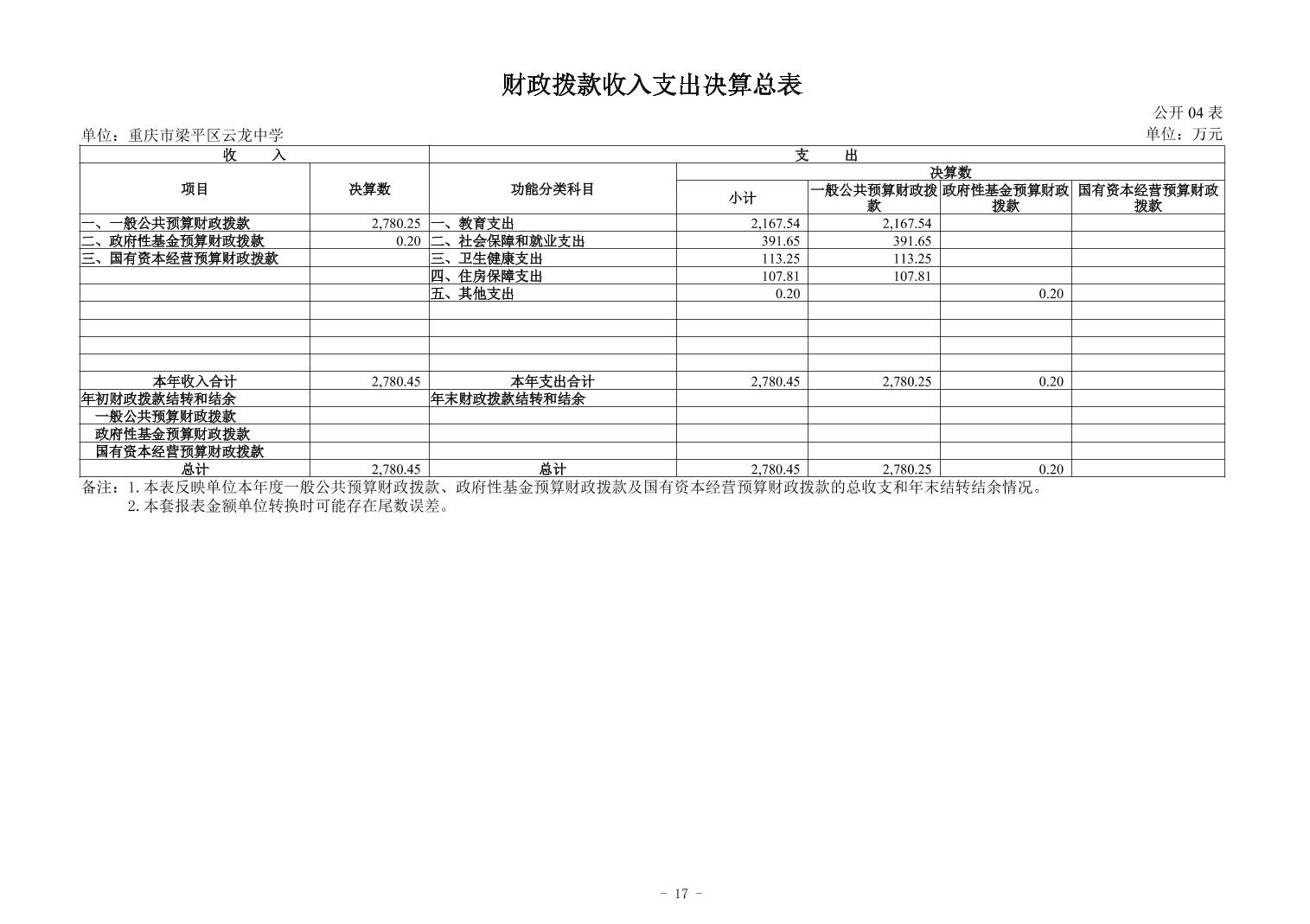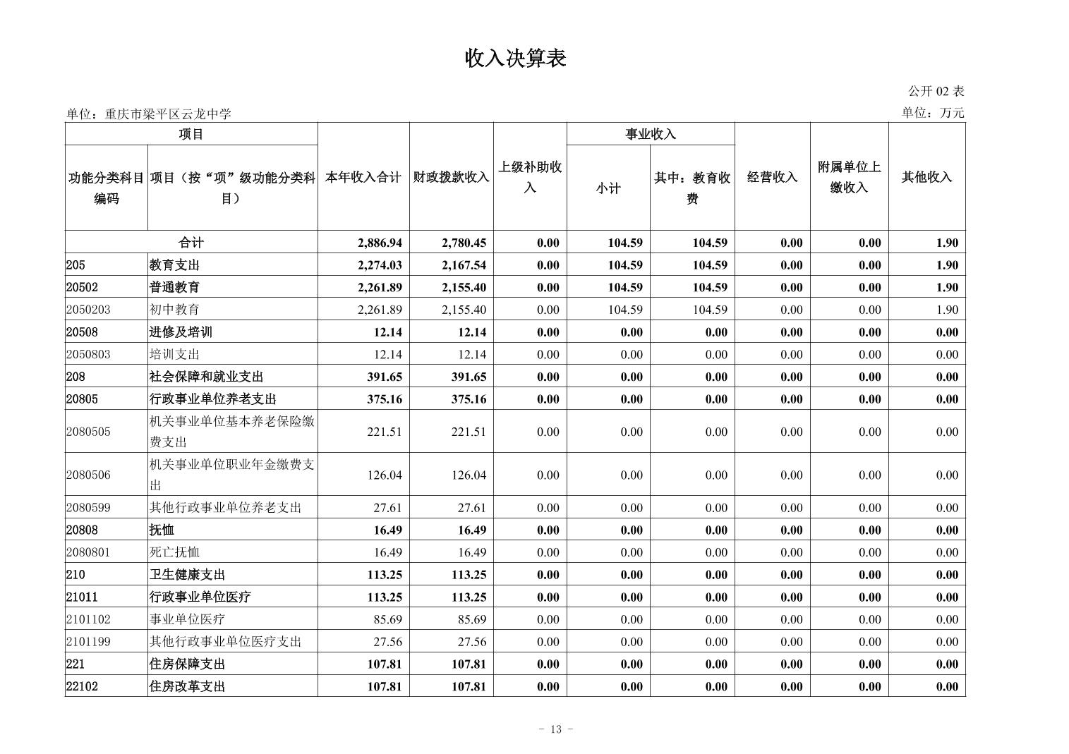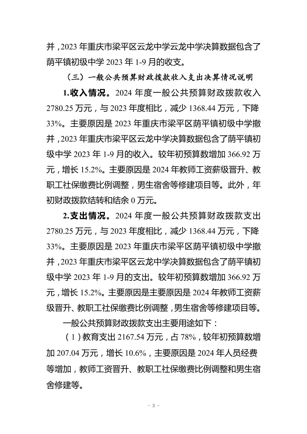 标题 | 重庆市梁平区云龙中学2024年部门决算公开说明 | ||