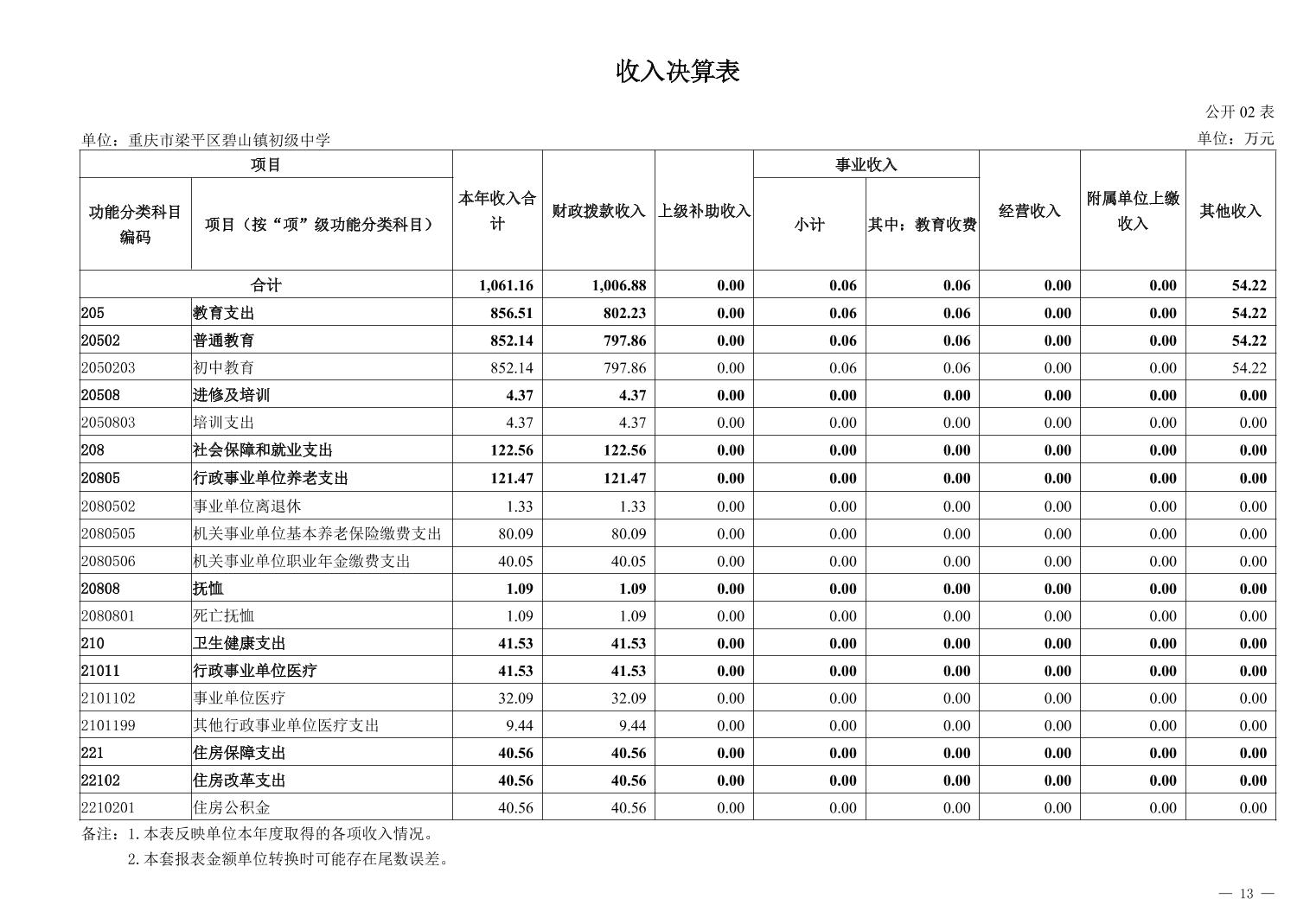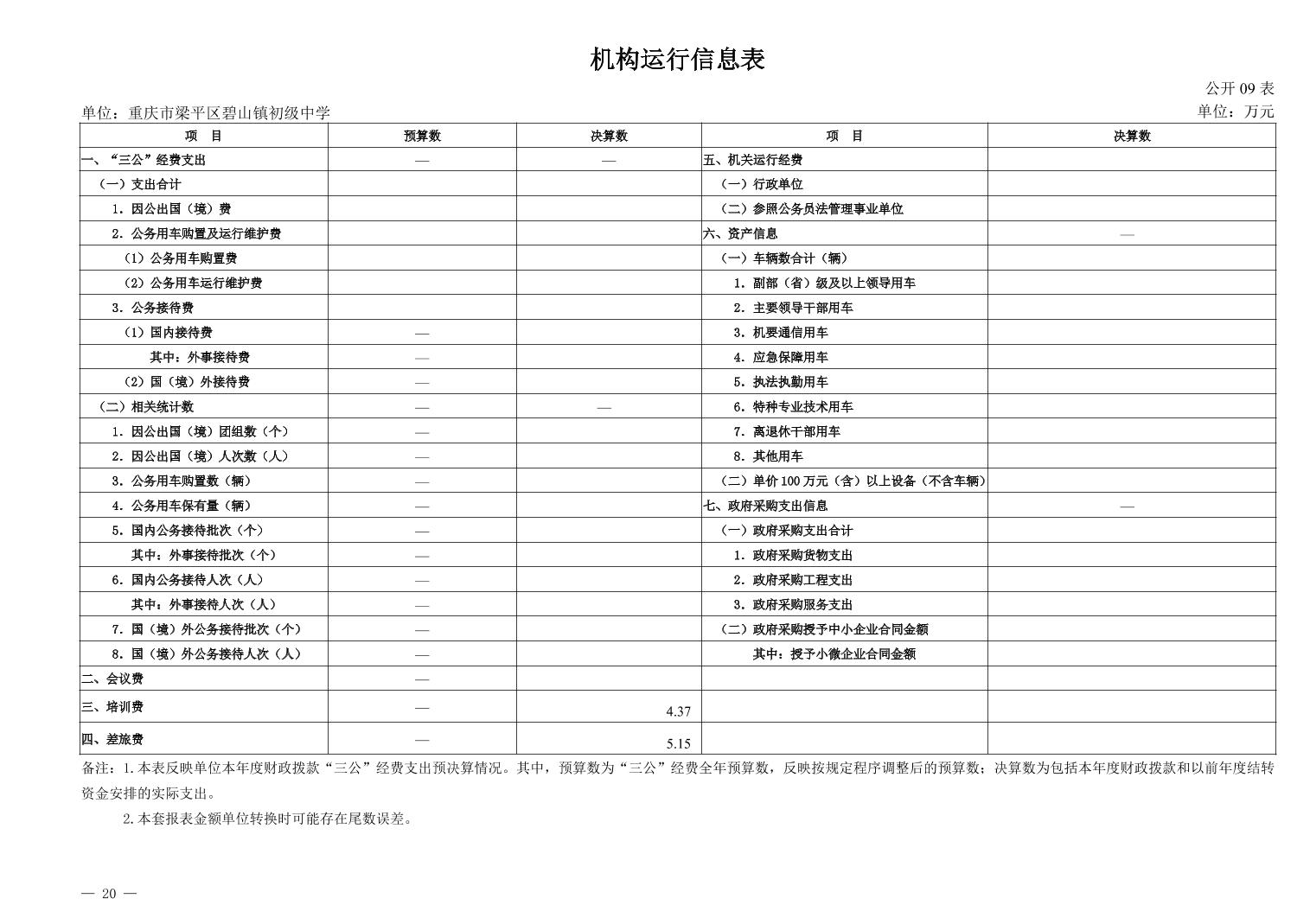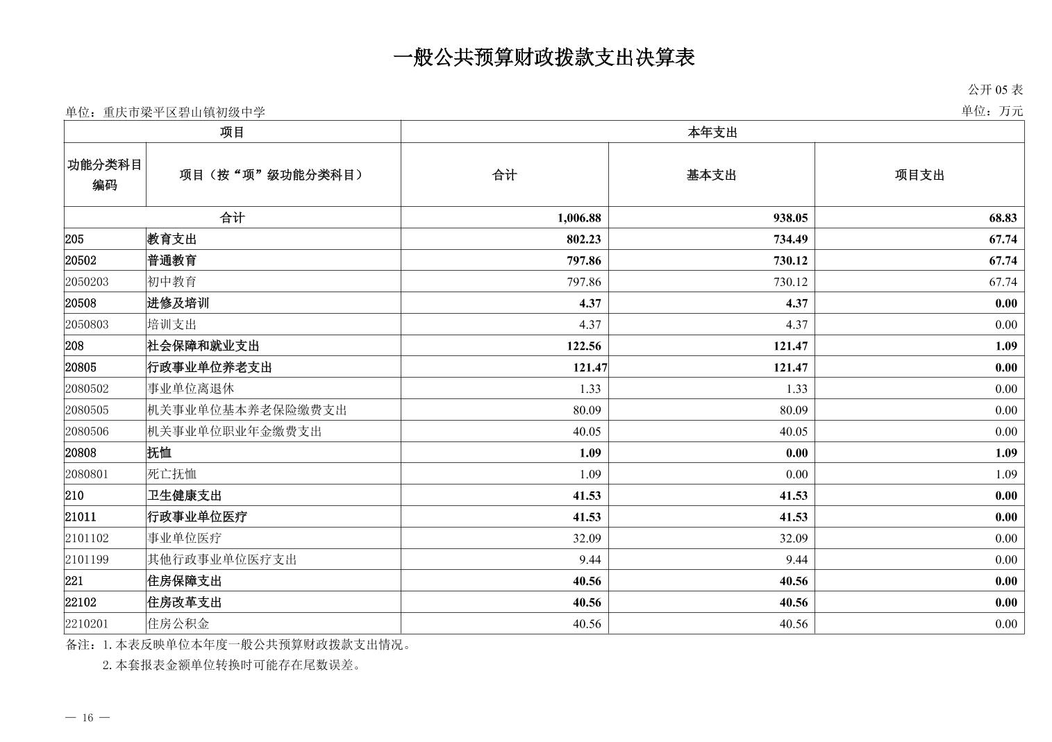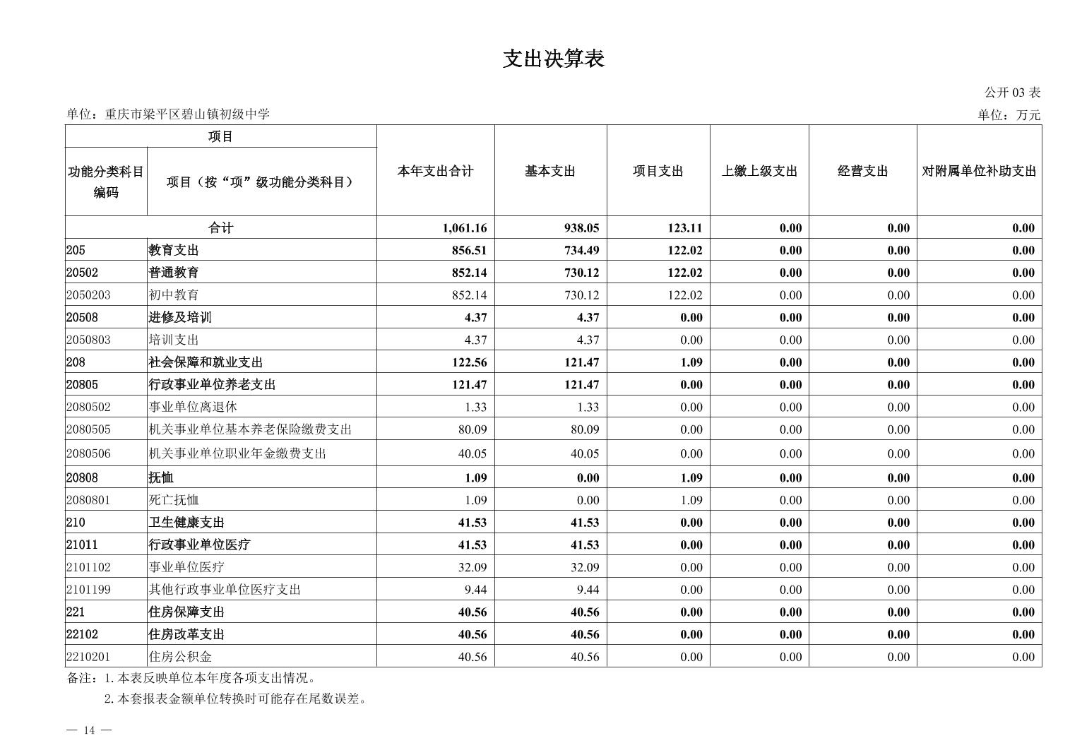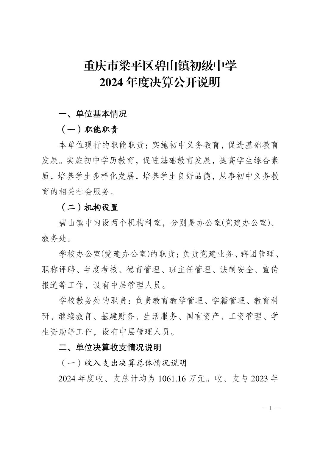 标题 | 重庆市梁平区碧山镇初级中学2024年度决算公开说明 |