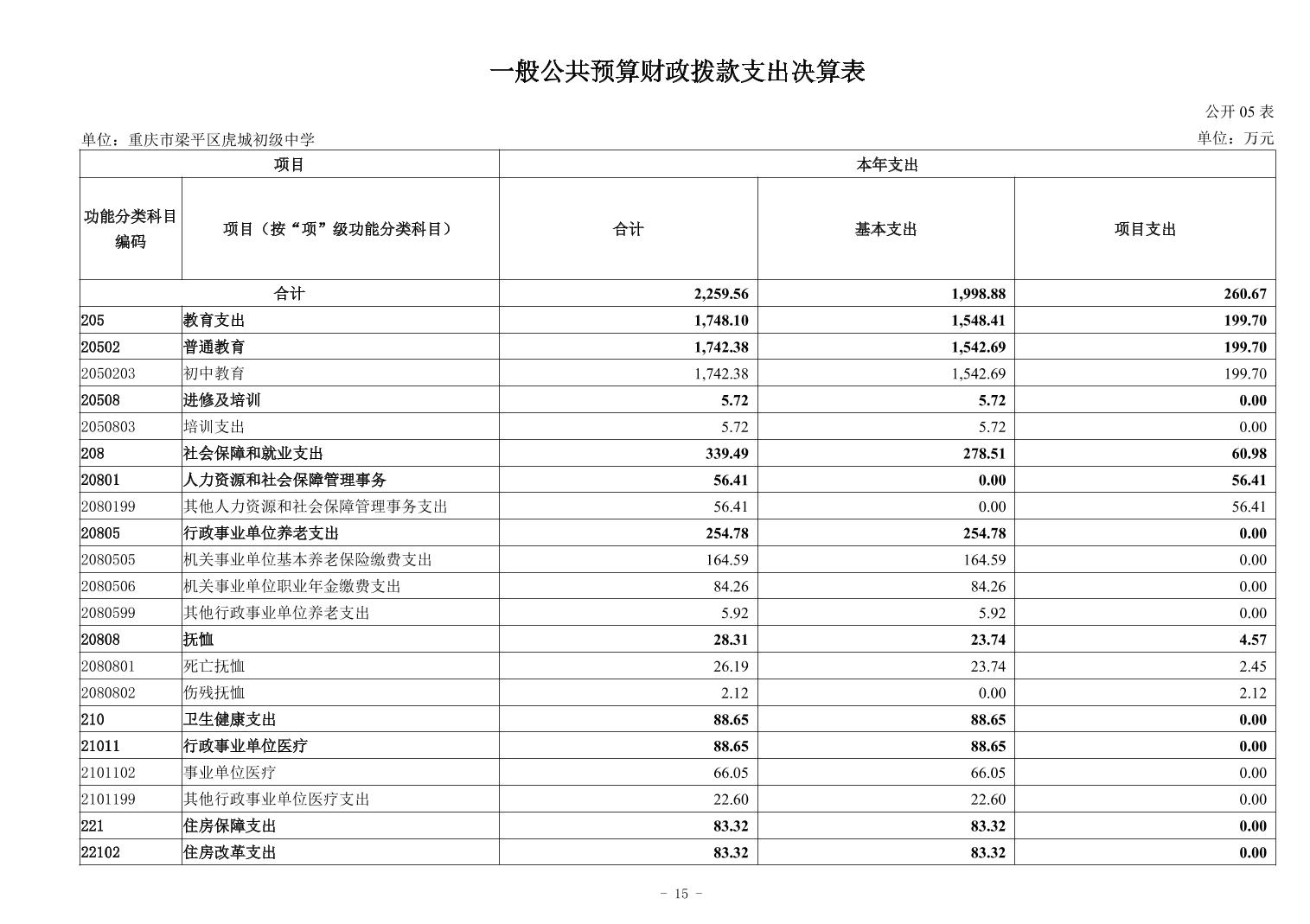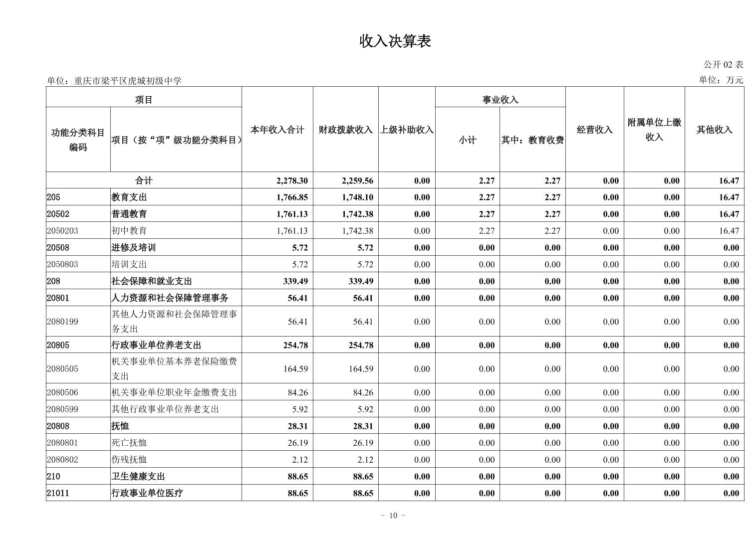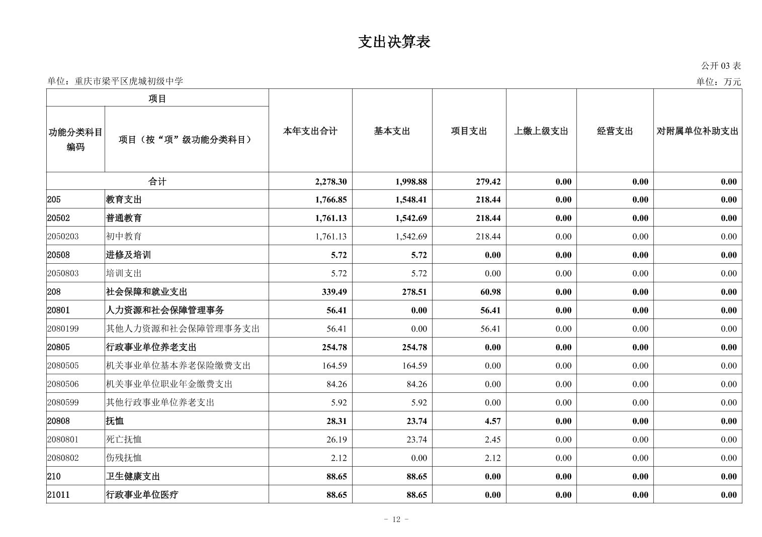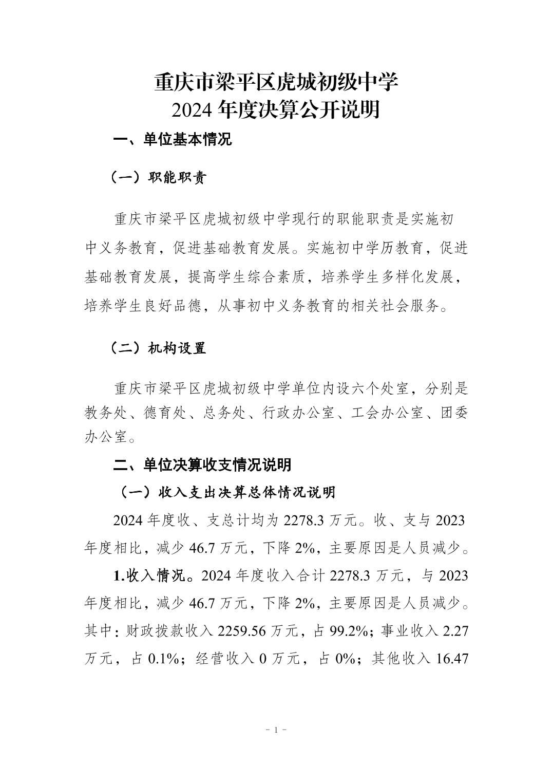 标题 | 重庆市梁平区虎城初级中学2024年度决算公开说明 |