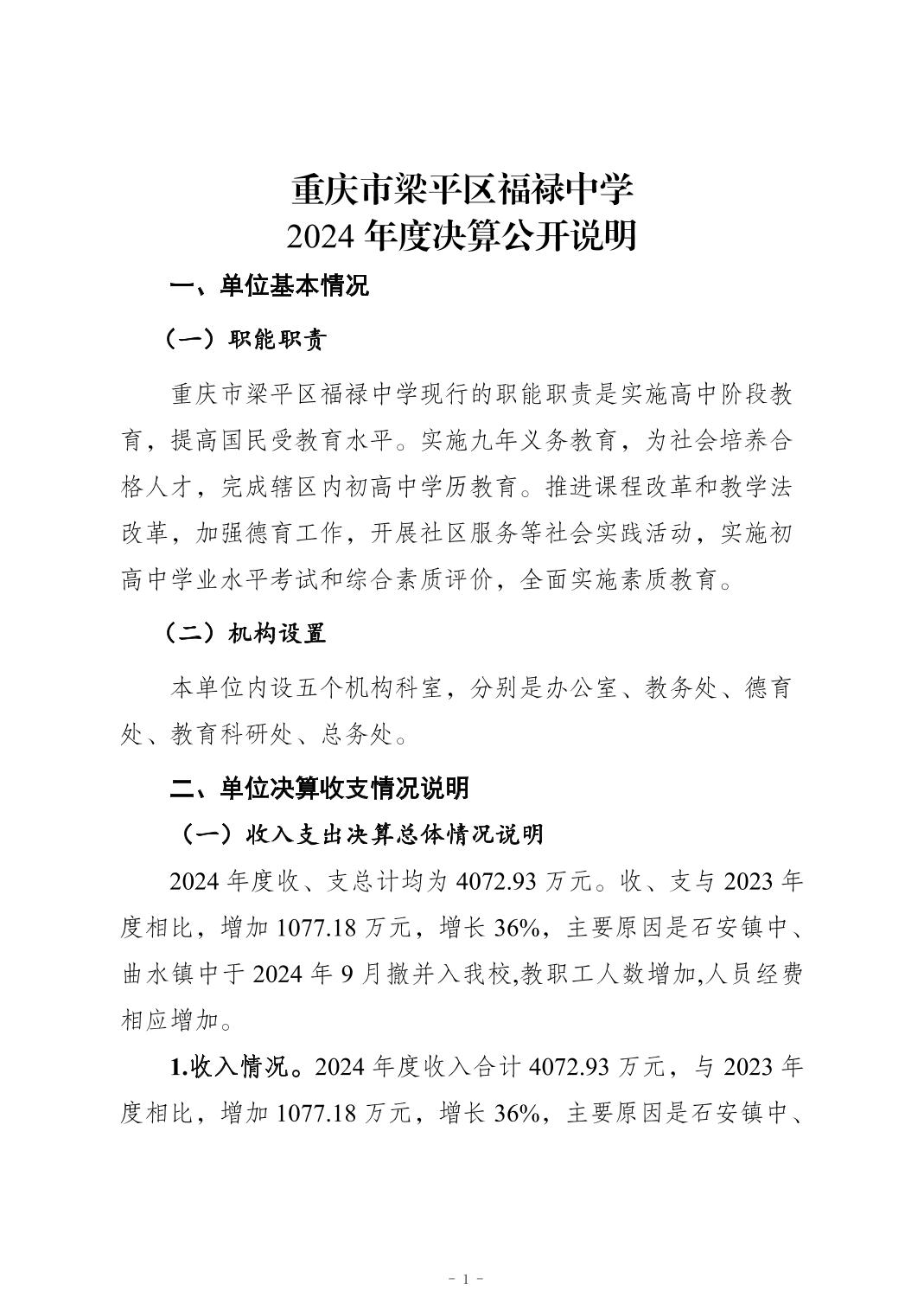 标题 | 重庆市梁平区福禄中学2024年决算公开说明 |
