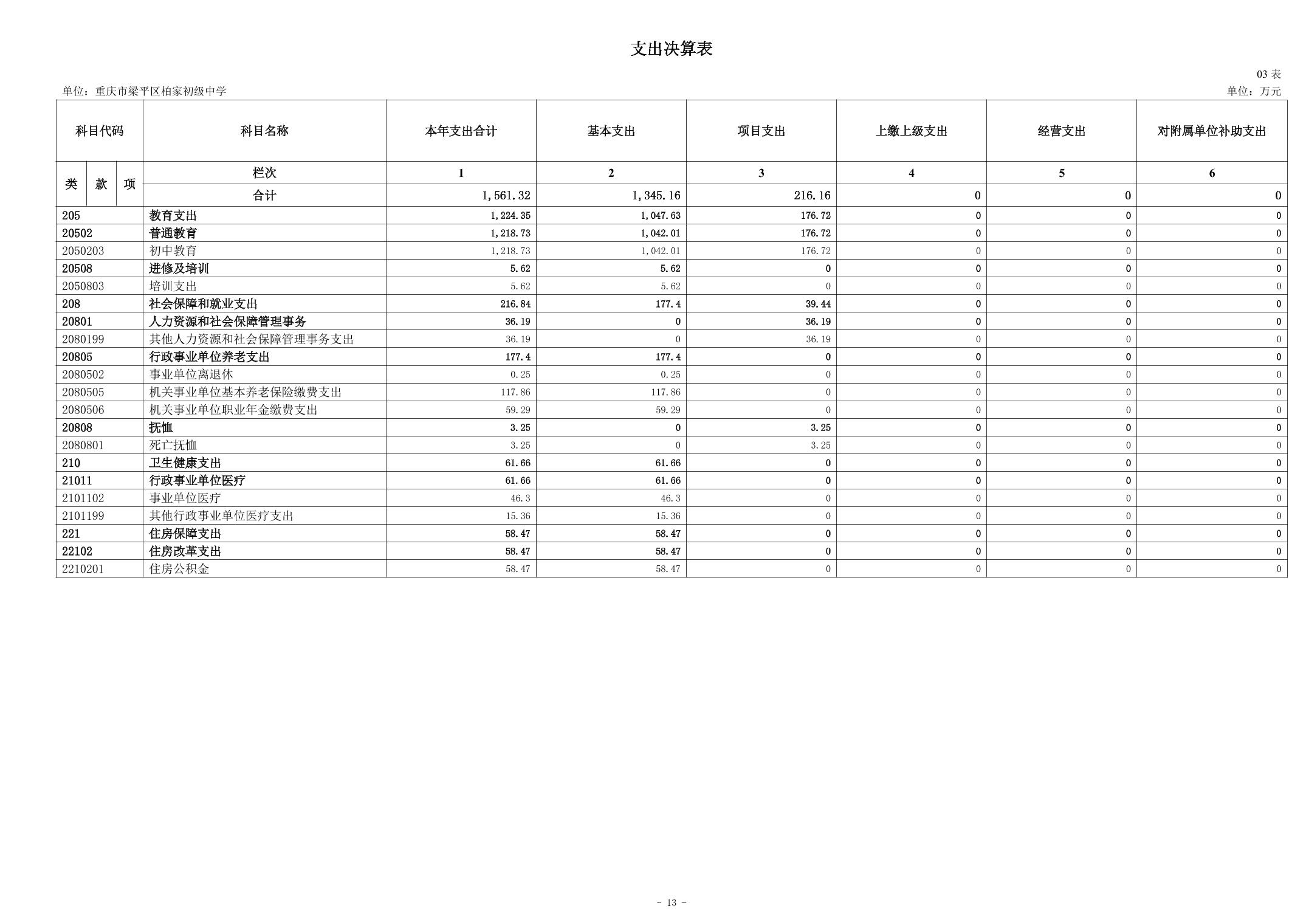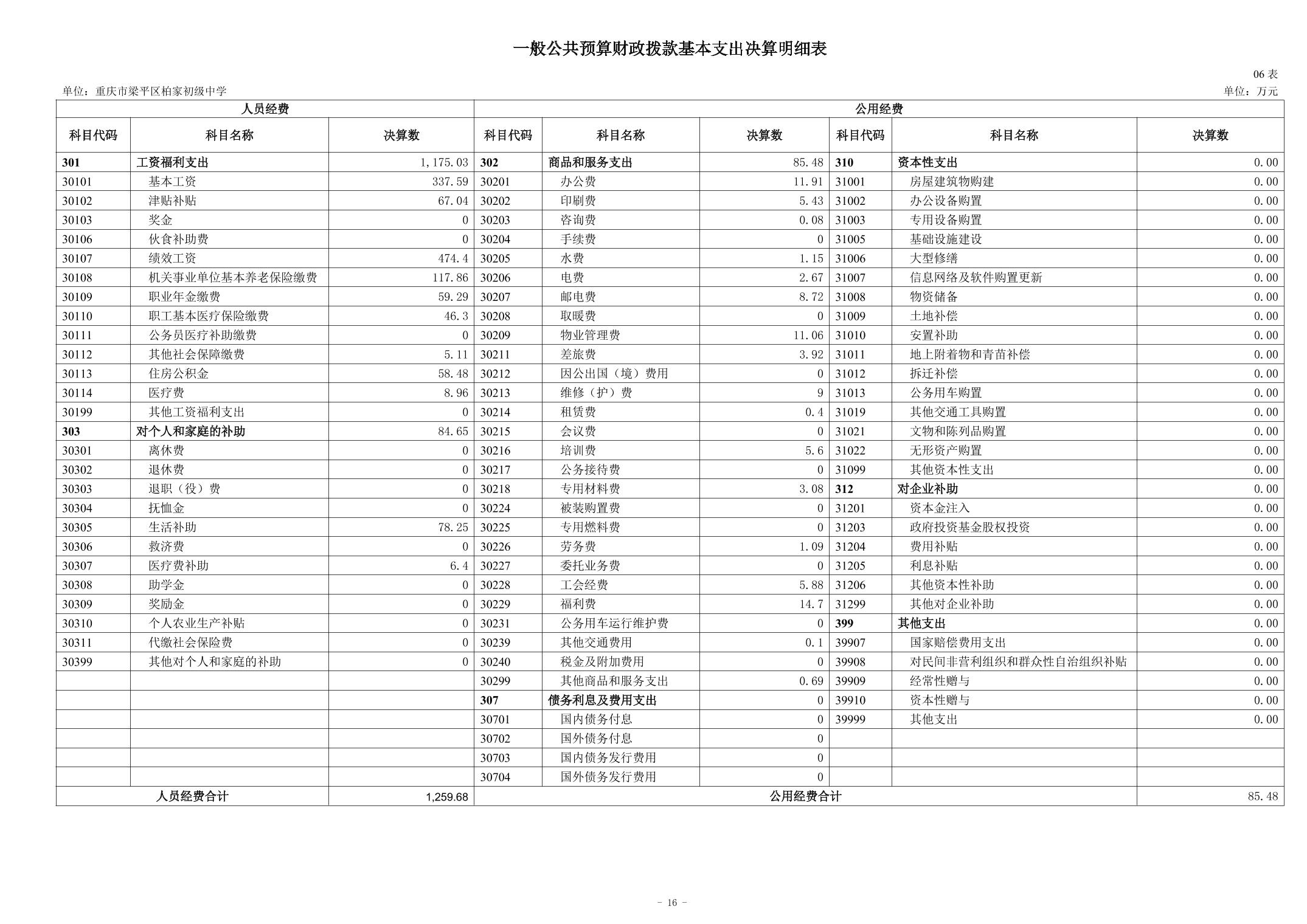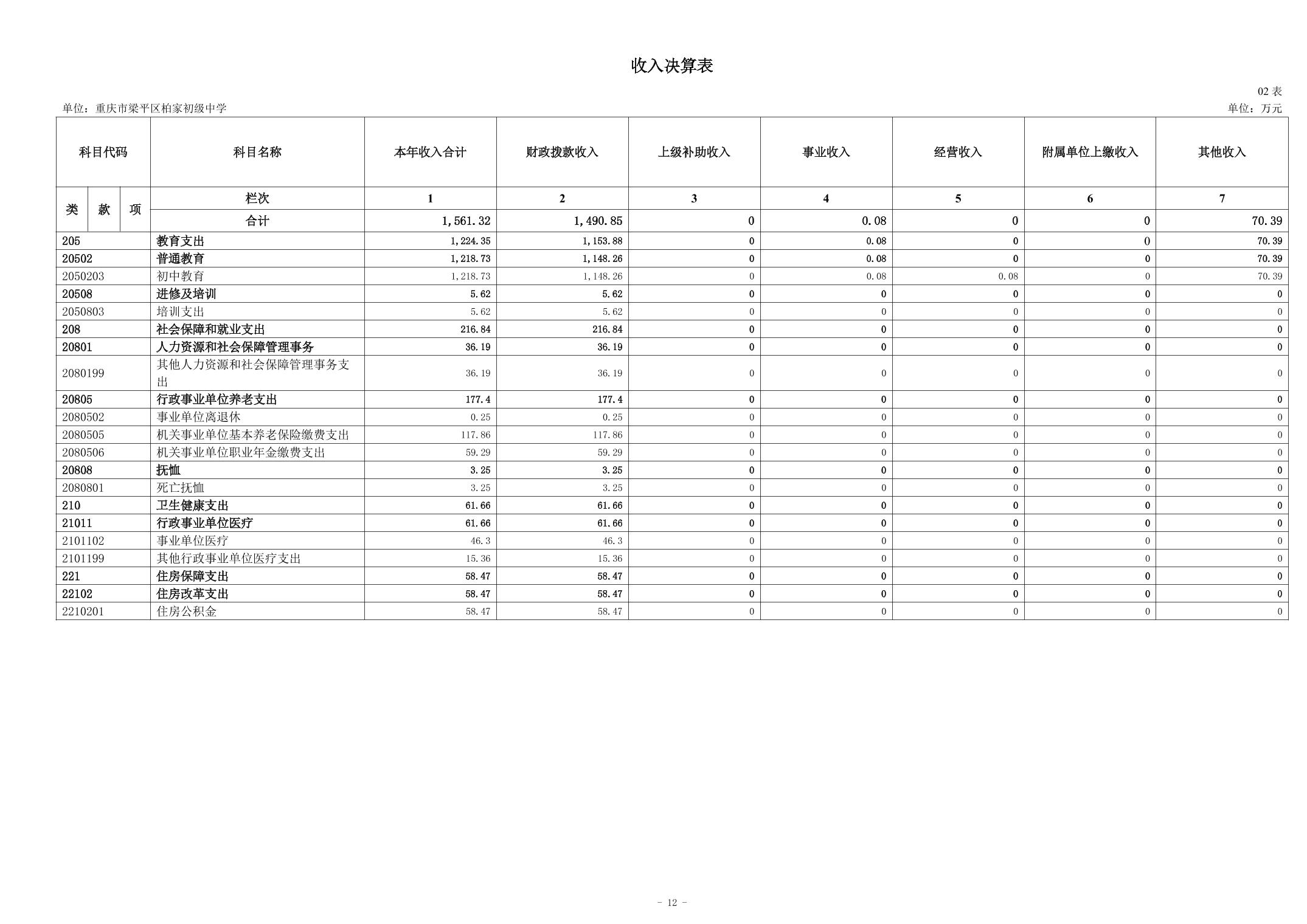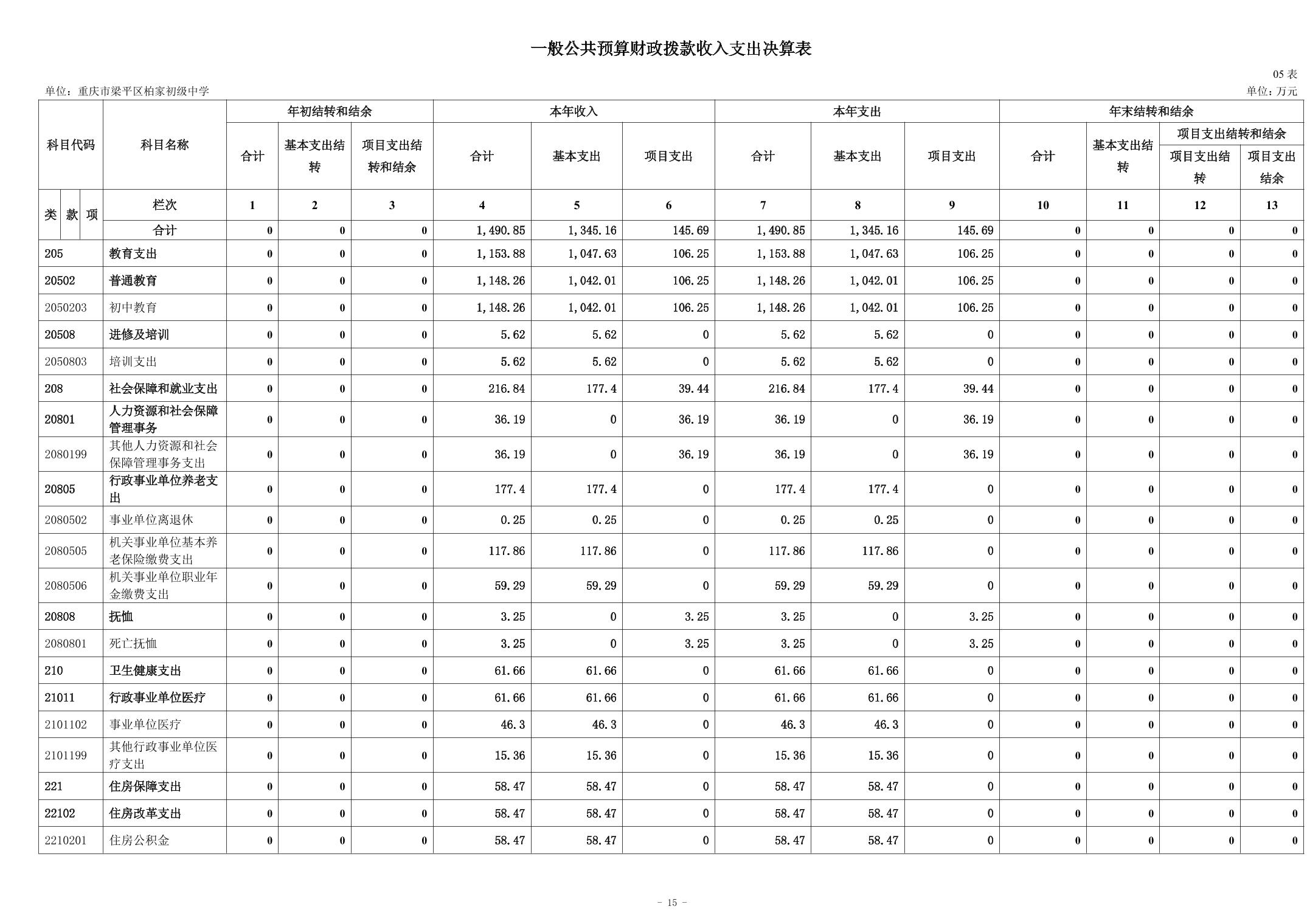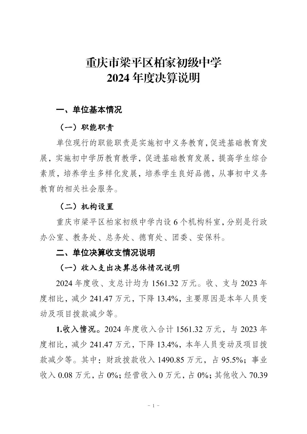 标题 | 重庆市梁平区柏家初级中学2024年度部门决算报告 | ||