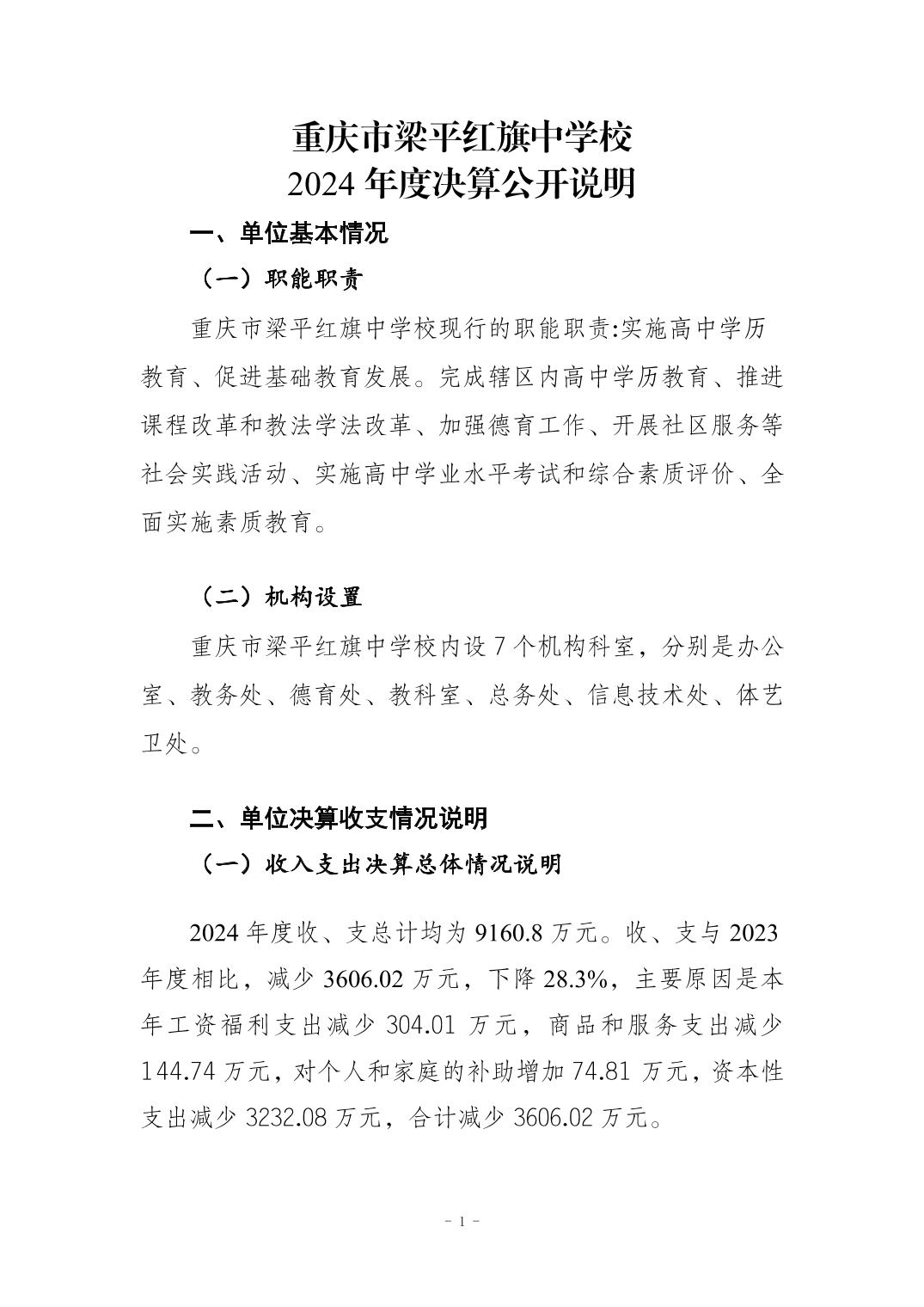 标题 | 重庆市梁平红旗中学校2024年度决算公开说明 |