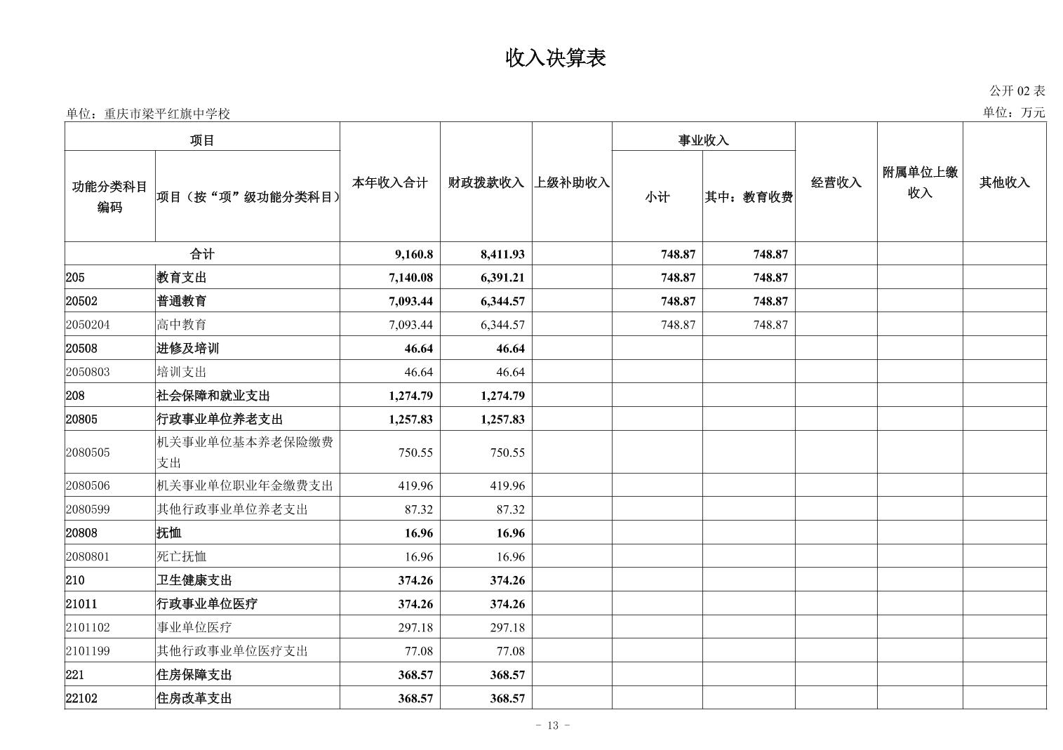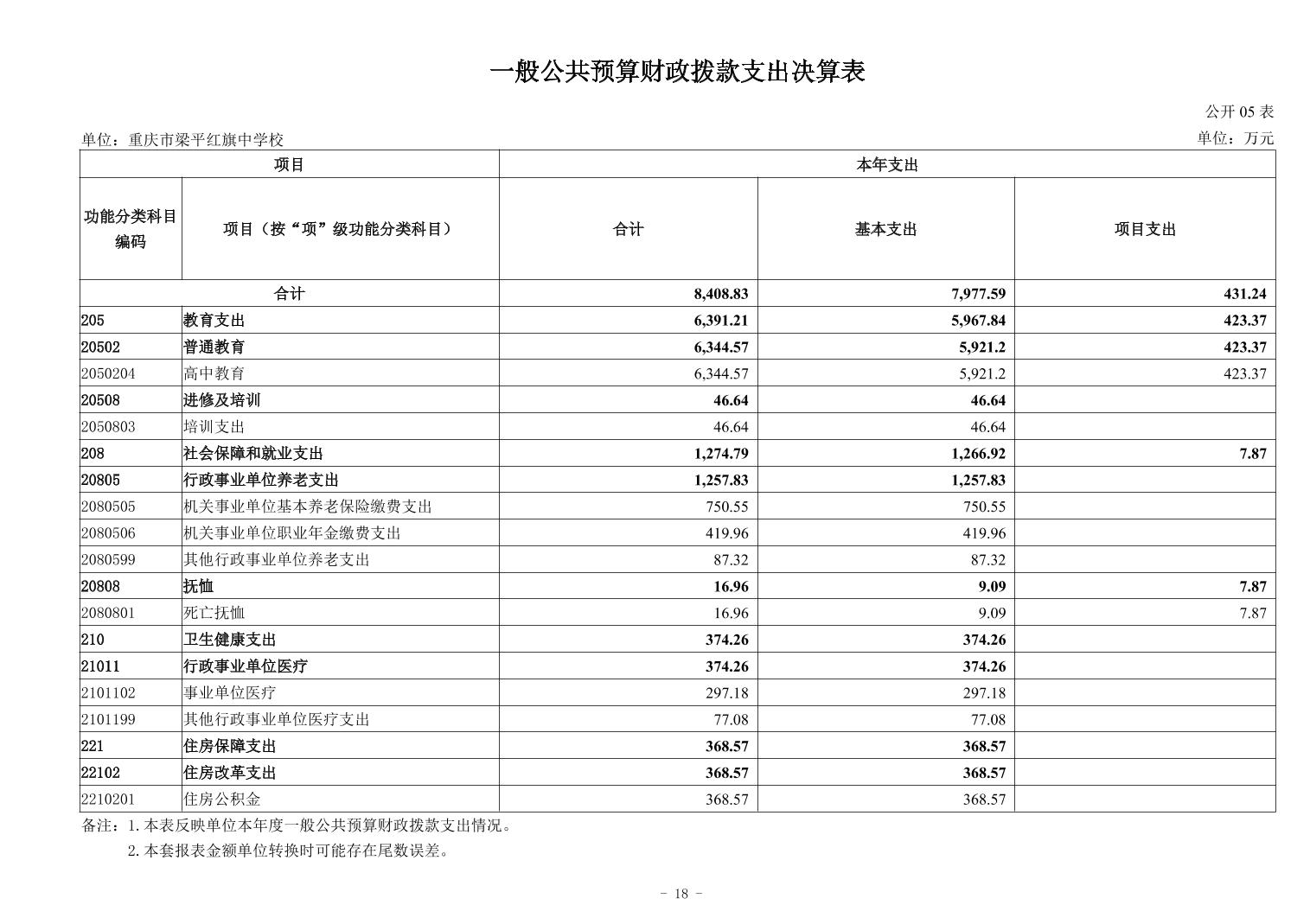 标题 | 重庆市梁平红旗中学校2024年度决算公开说明 | ||