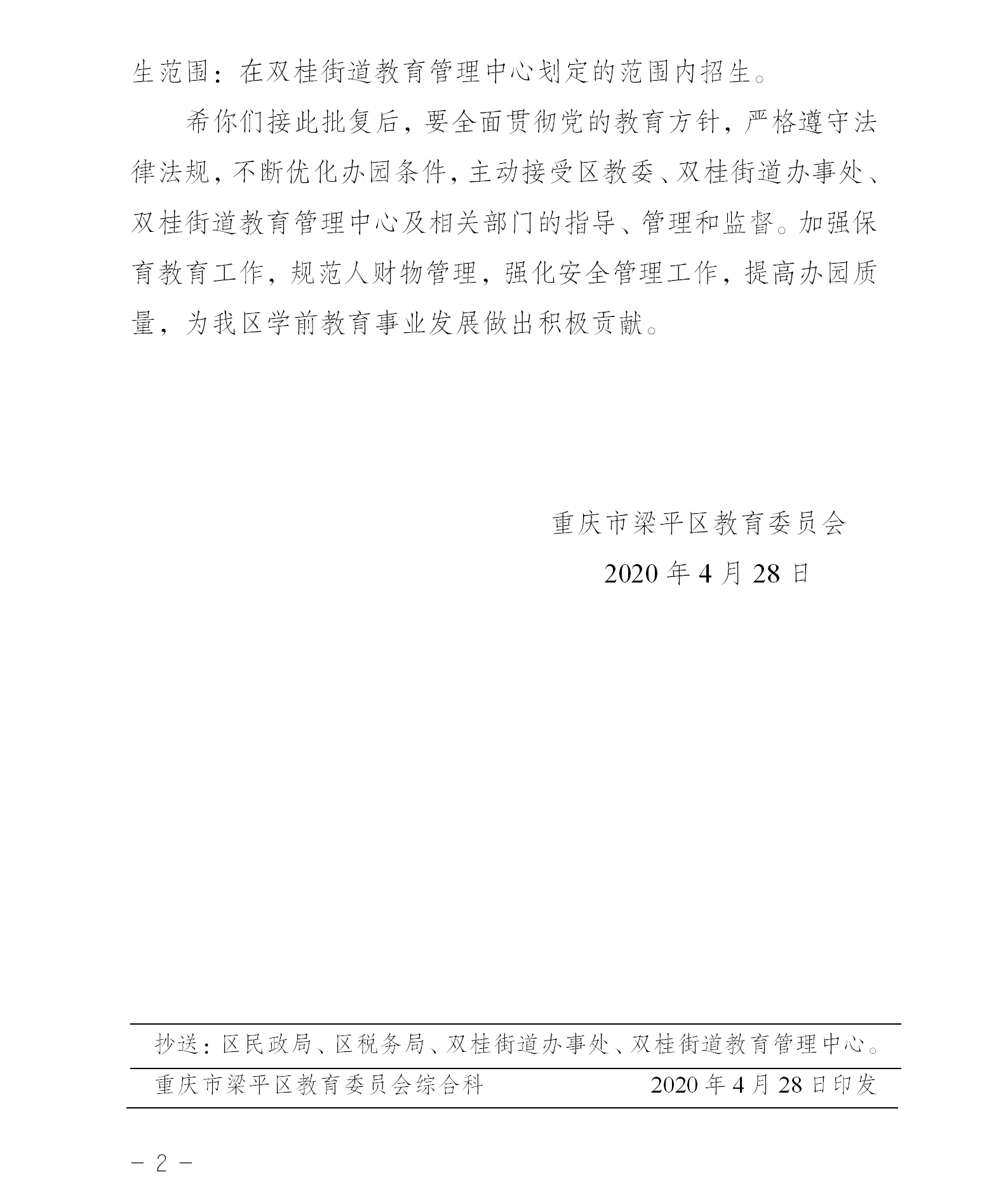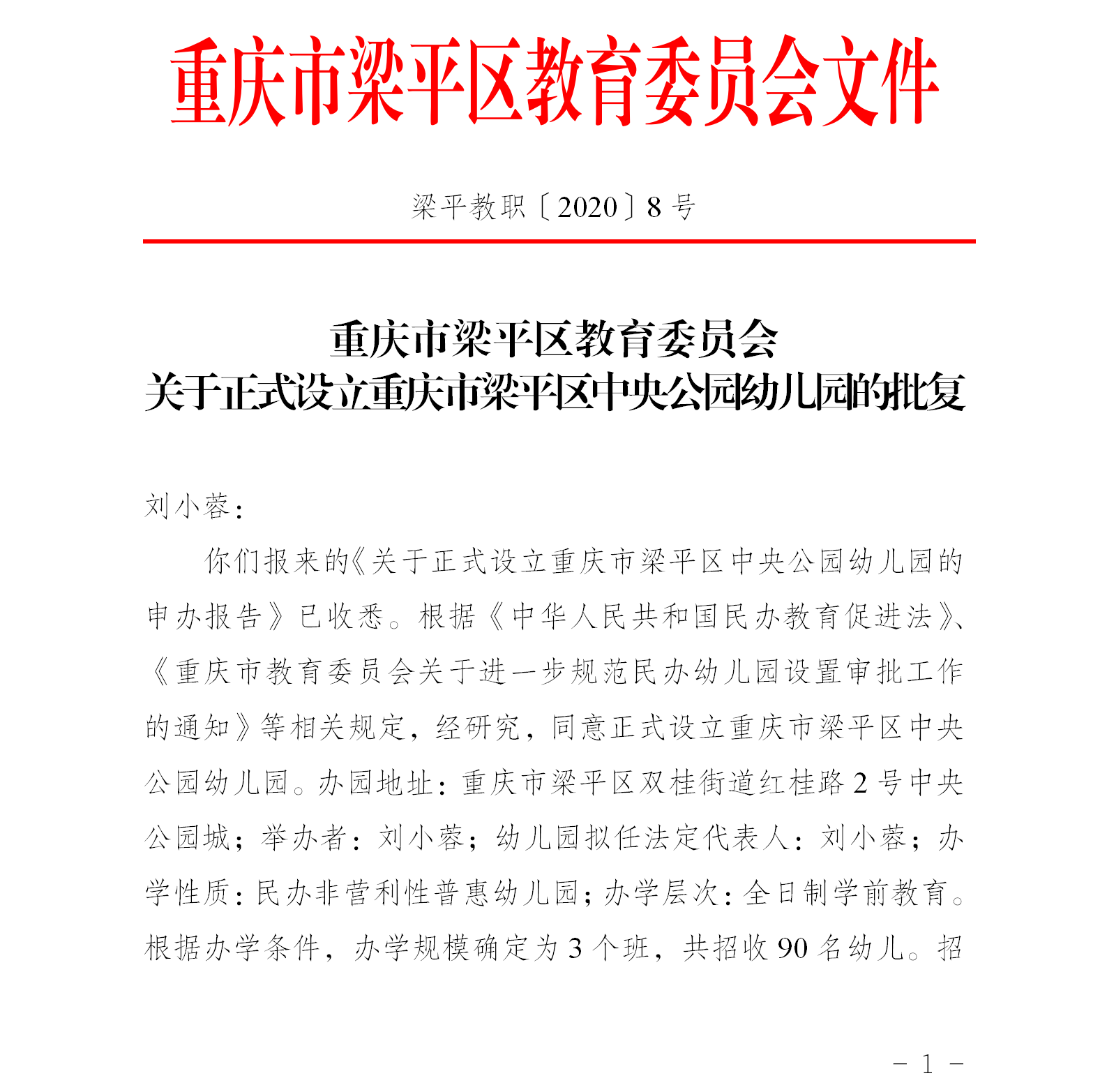 标题 | 重庆市梁平区教育委员会关于正式设立重庆市梁平区中央公园幼儿园的批复 | ||