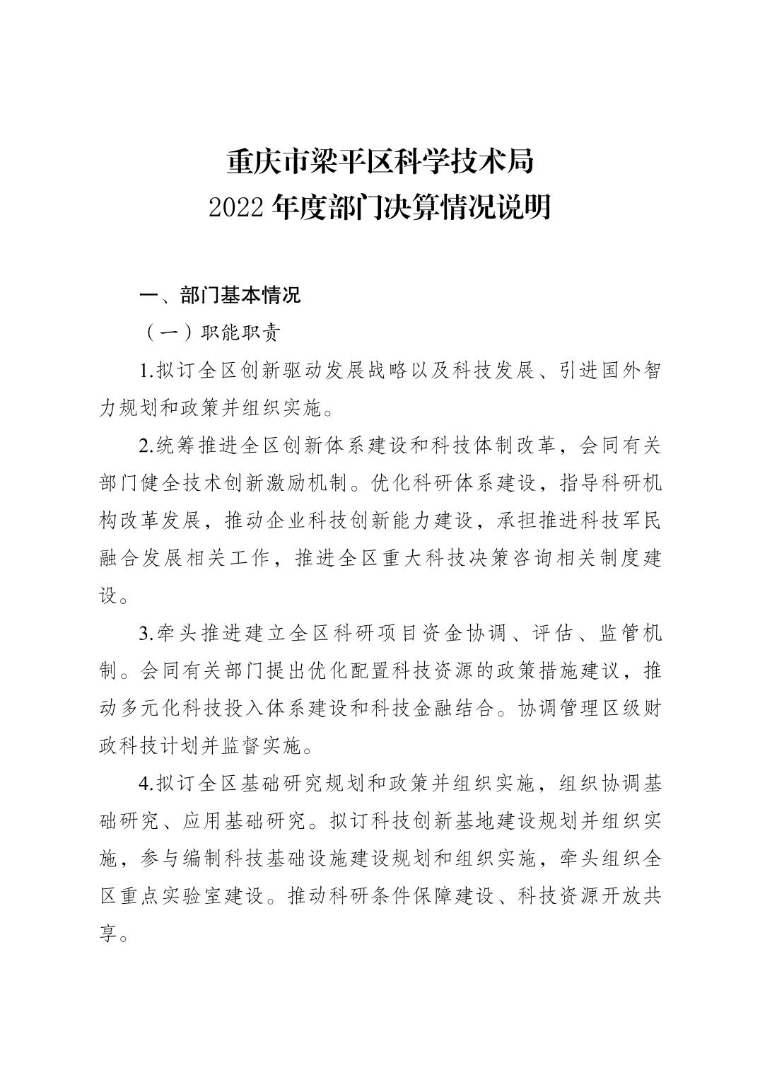| 标题 | 重庆市梁平区科学技术局2022年度部门决算情况说明 |