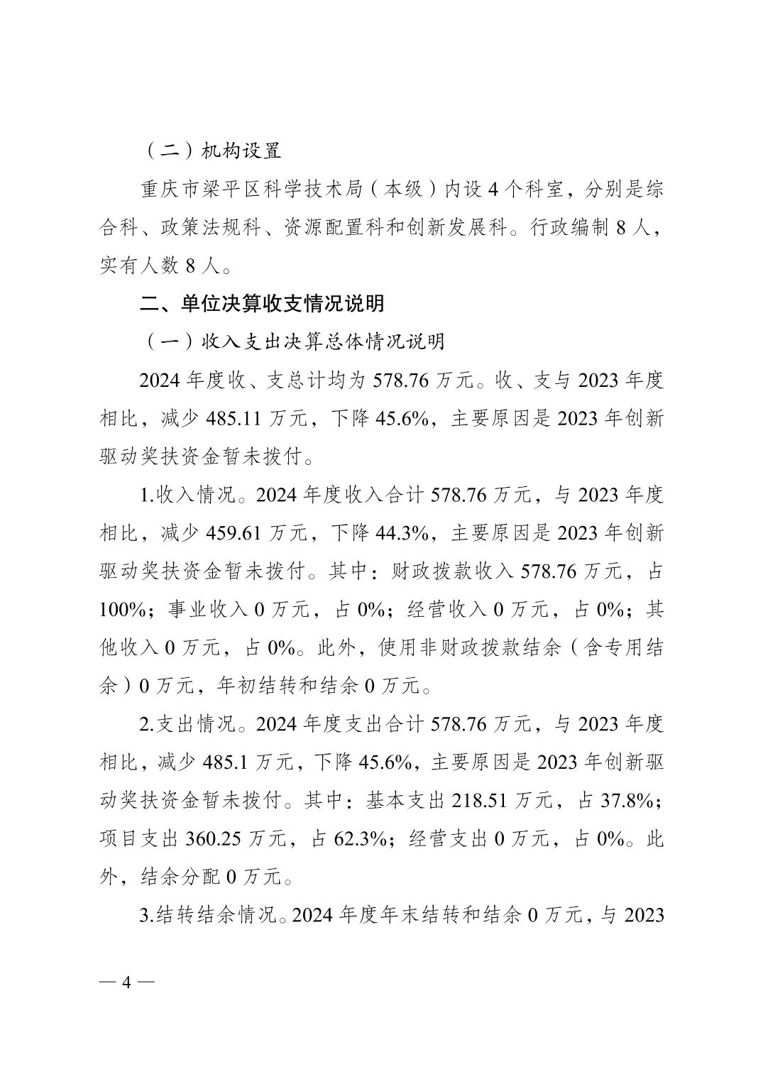 标题 | 重庆市梁平区科学技术局(本级)2024年度决算公开说明 |