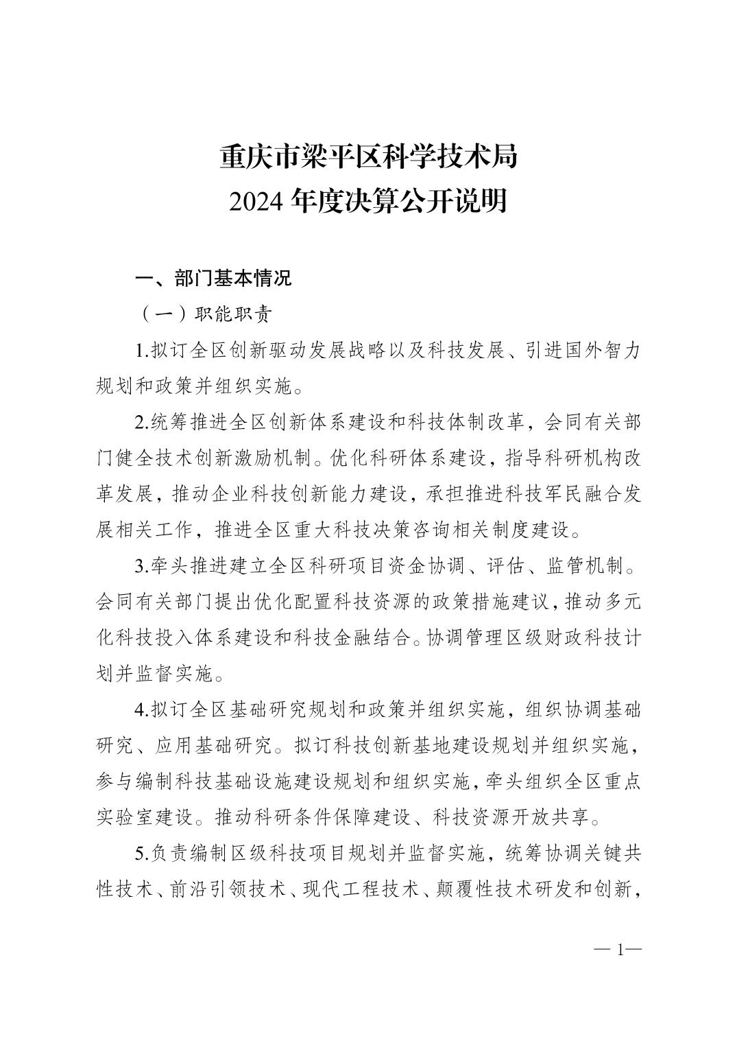 标题 | 重庆市梁平区科学技术局2024年度决算公开说明 |