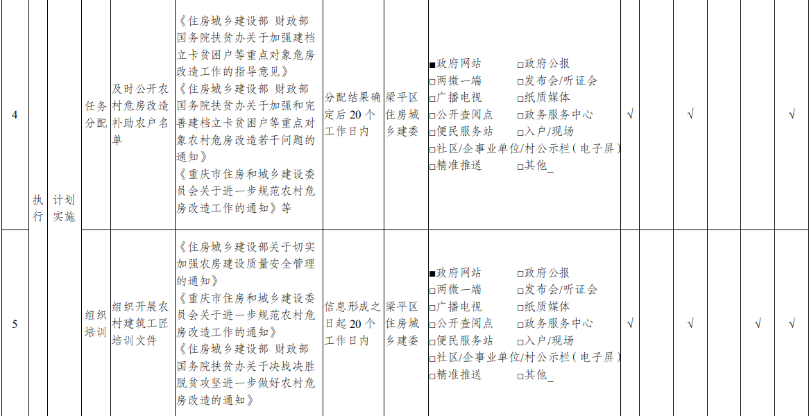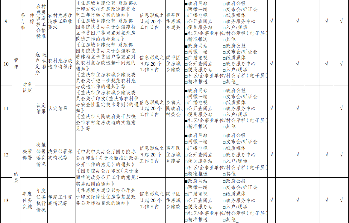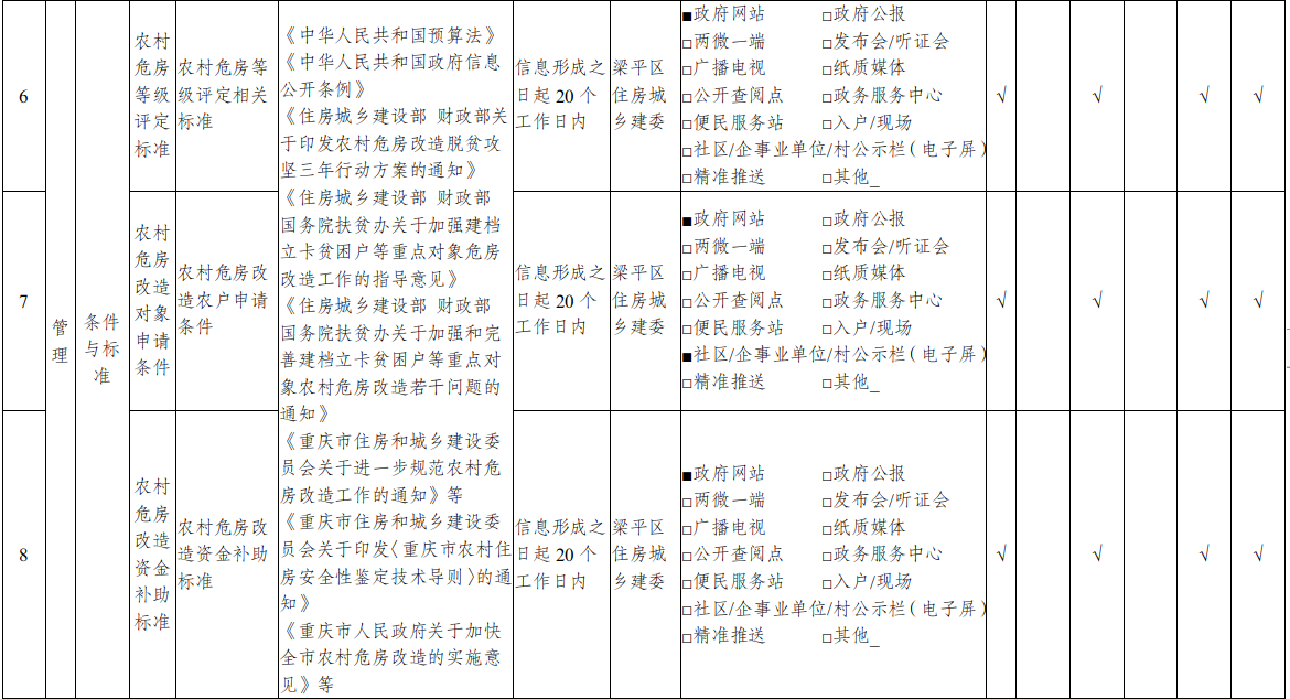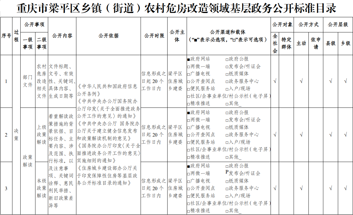 重庆市梁平区乡镇(街道)农村危房改造领域基层政务公开标准目录