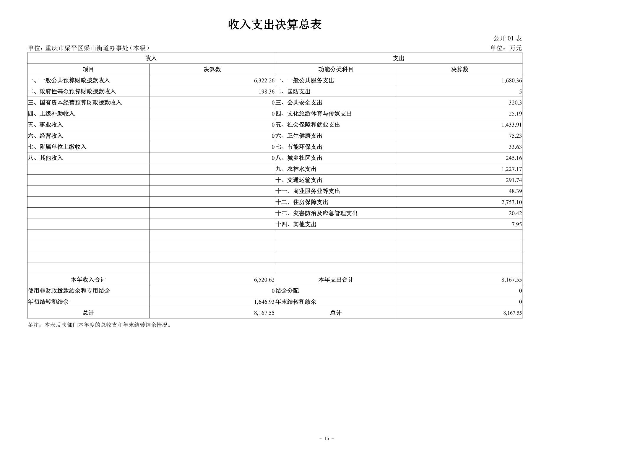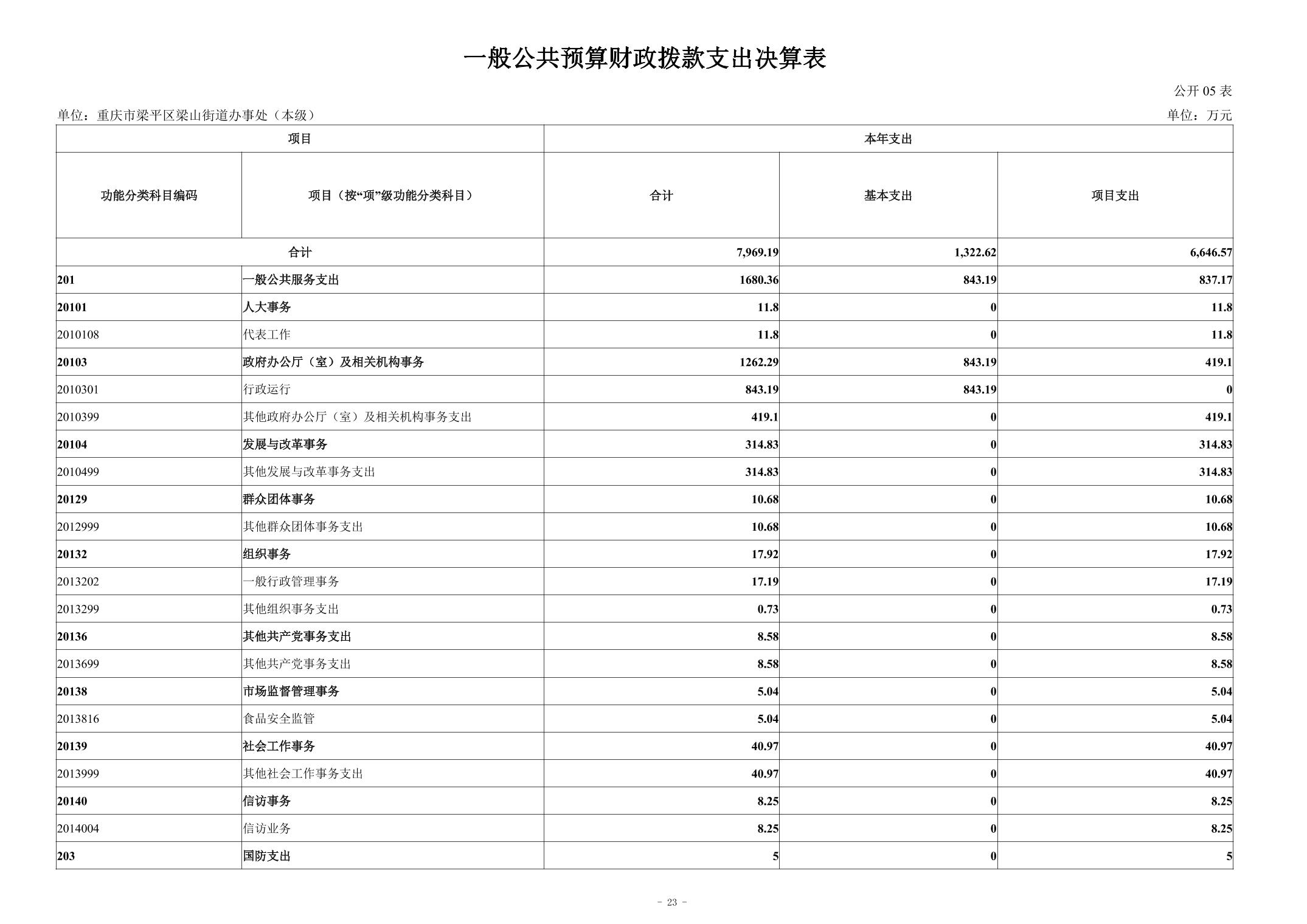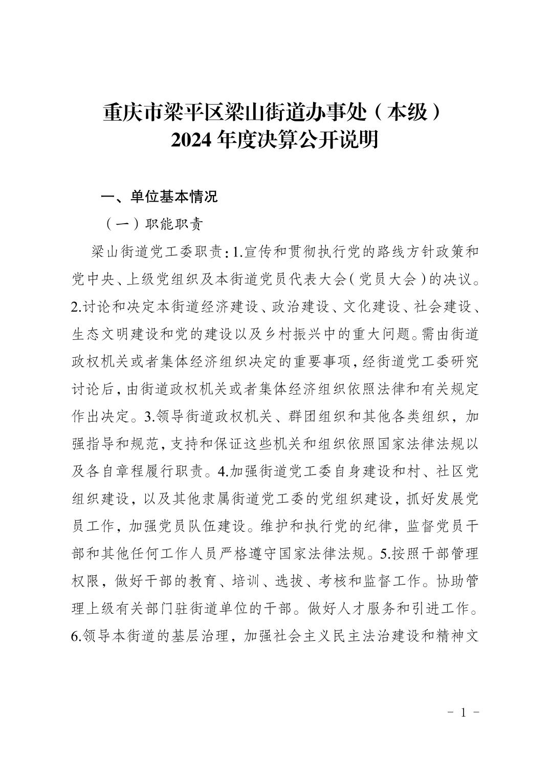 | 标题 | 重庆市梁平区梁山街道办事处(本级)2024年度决算公开说明 |