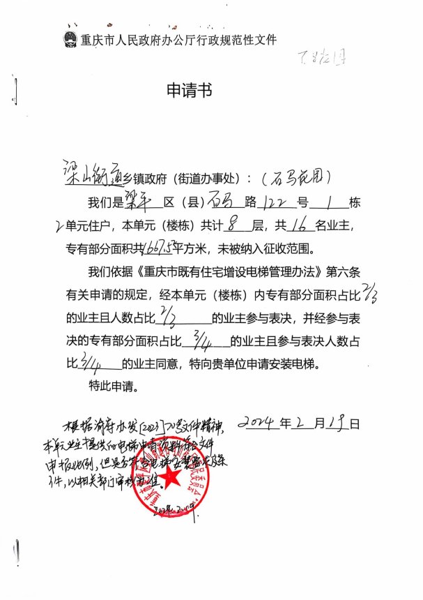 | 标题 | 重庆市梁平区梁山街道办事处关于石马路122号(石马花园)1幢2单元增设电梯的公示 | ||