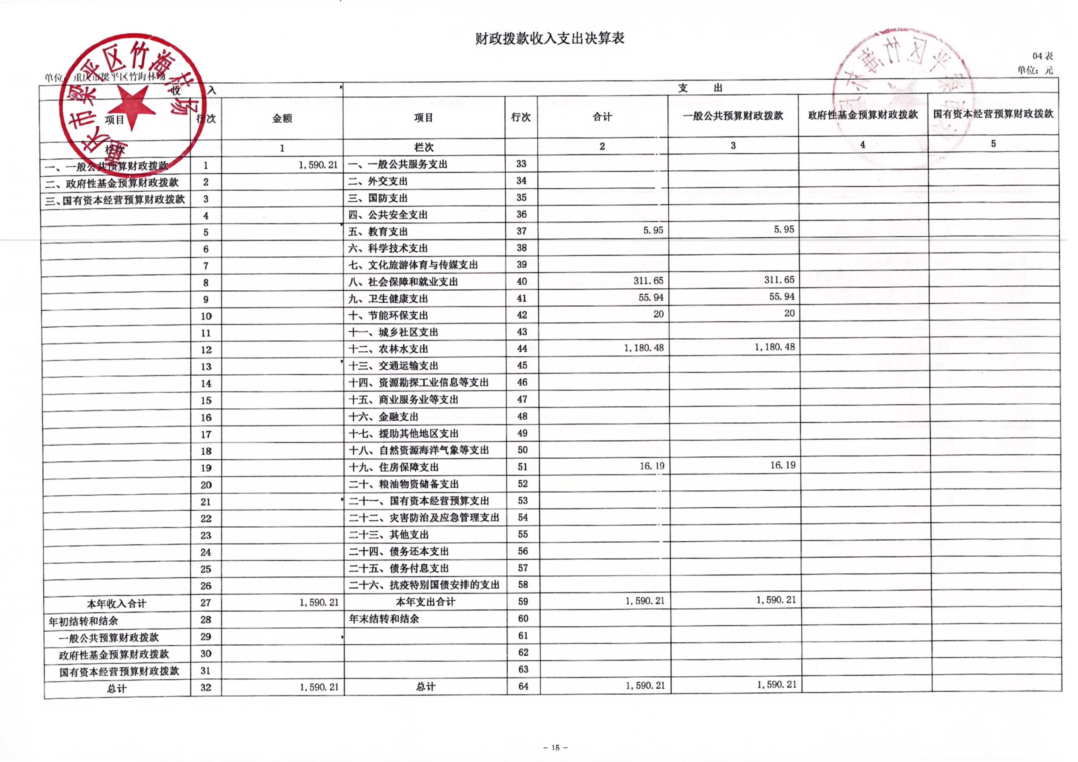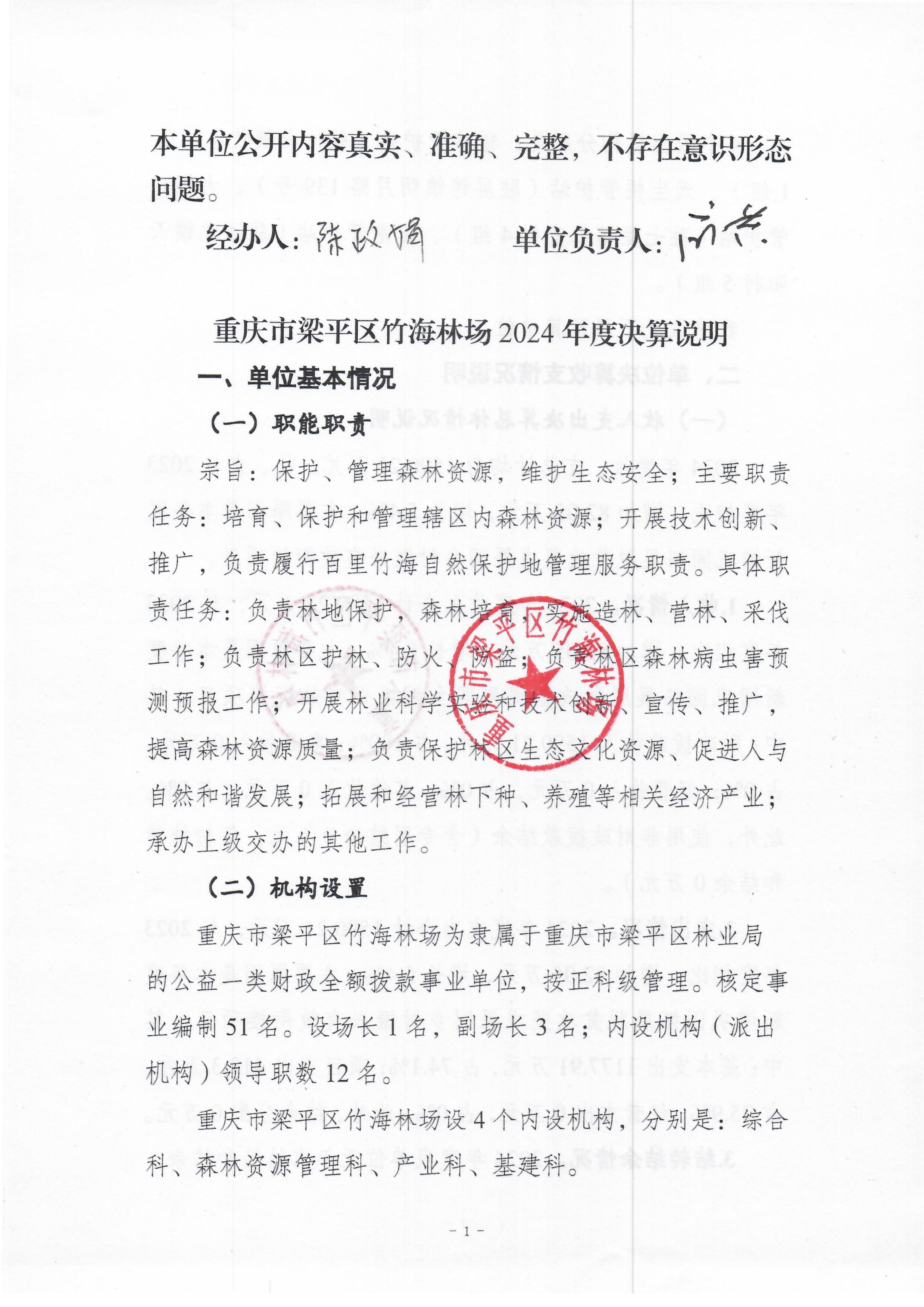 标题 | 重庆市梁平区竹海林场2024年度决算公开说明 |