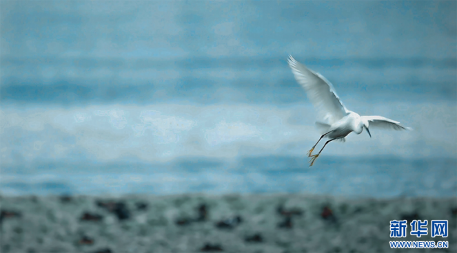 白鹭振翅,水天一色生态画卷徐徐展开。新华网发(吴梦雄 摄)