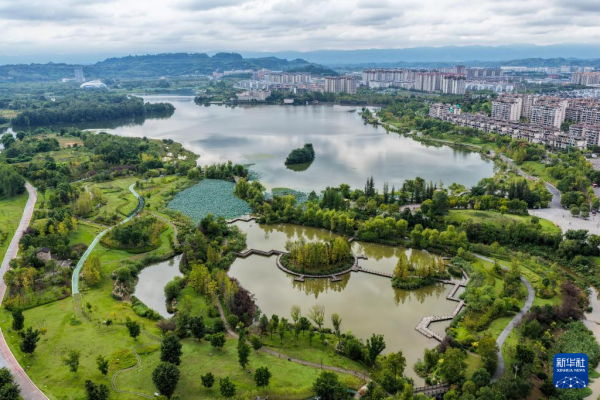 重庆双桂湖国家湿地公园一角(9月26日摄,无人机照片)。