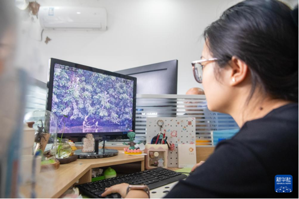 9月26日,重庆市梁平区湿地保护中心工作人员吕妮洪在保护中心内对采集数据进行整理。