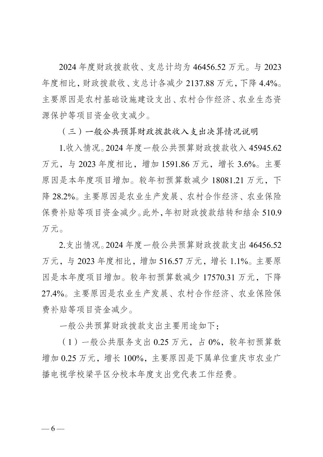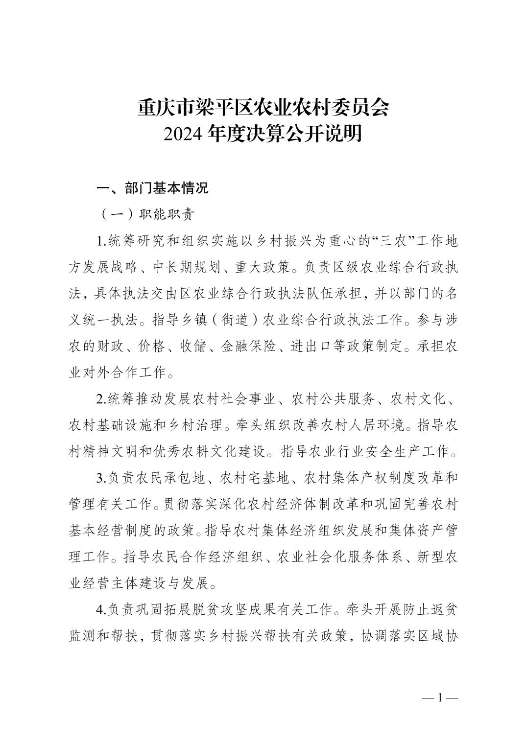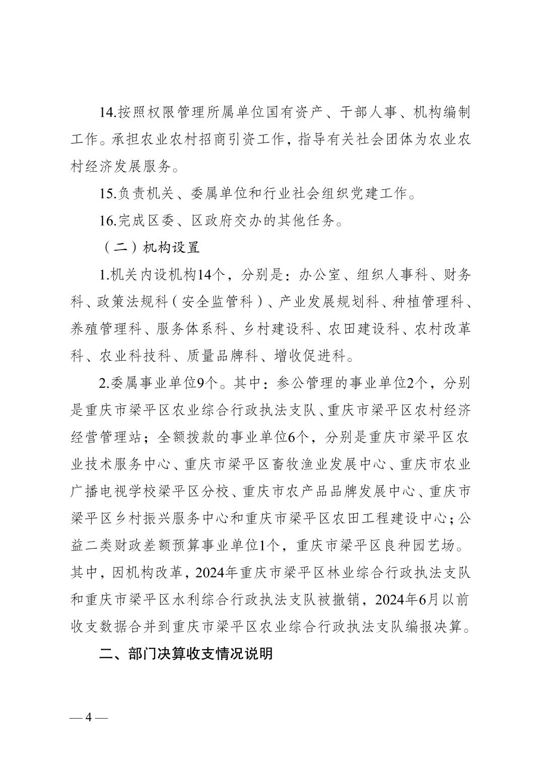 标题 | 重庆市梁平区农业农村委员会 2024年度决算公开说明 |