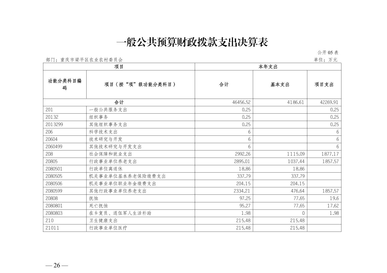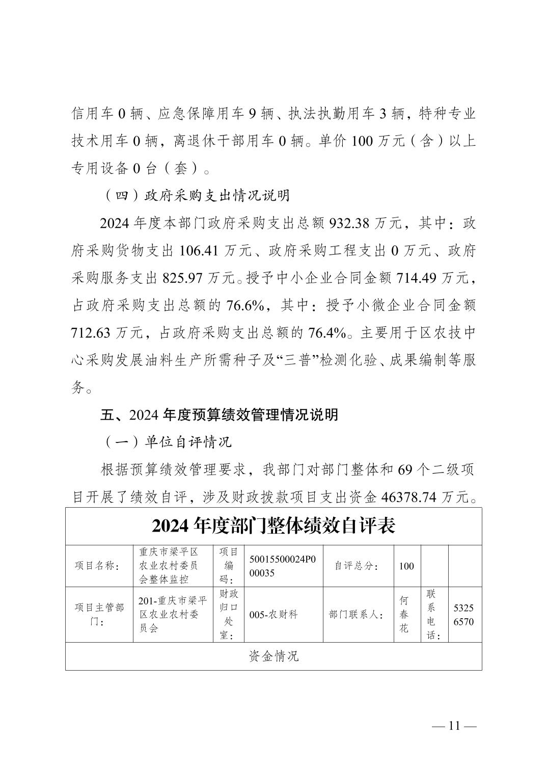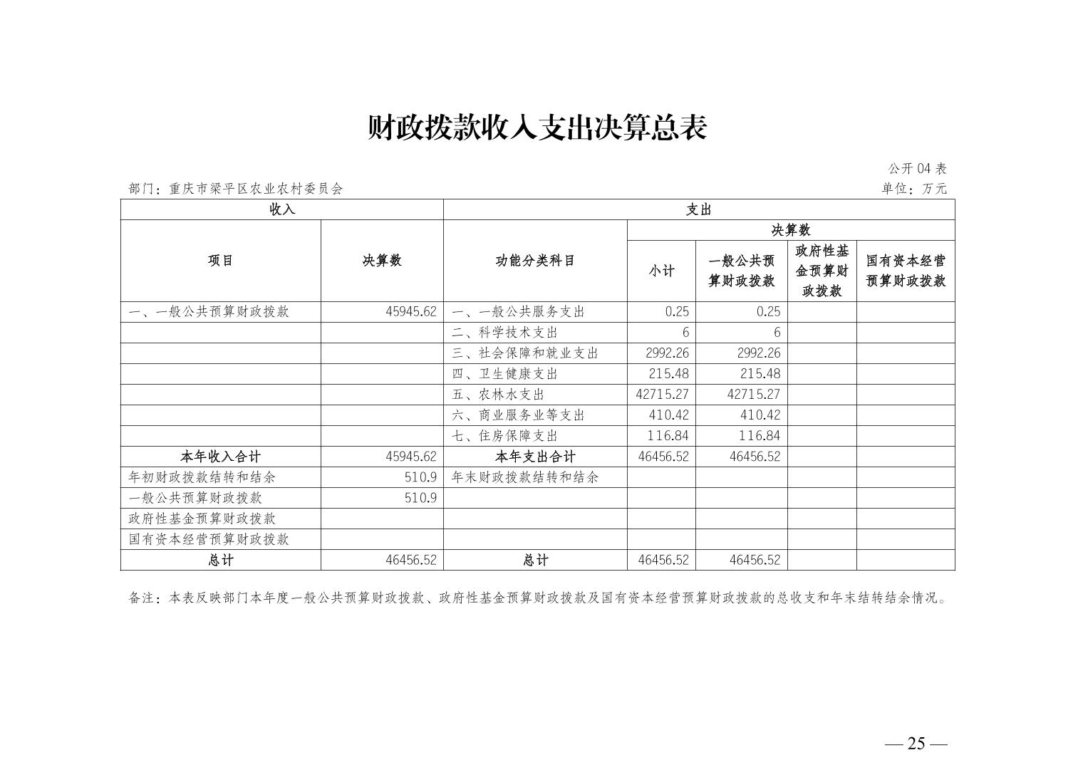 标题 | 重庆市梁平区农业农村委员会 2024年度决算公开说明 |