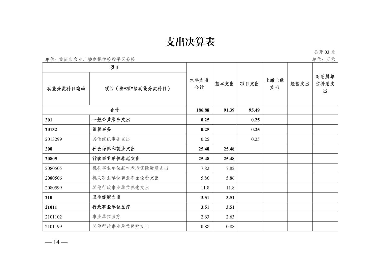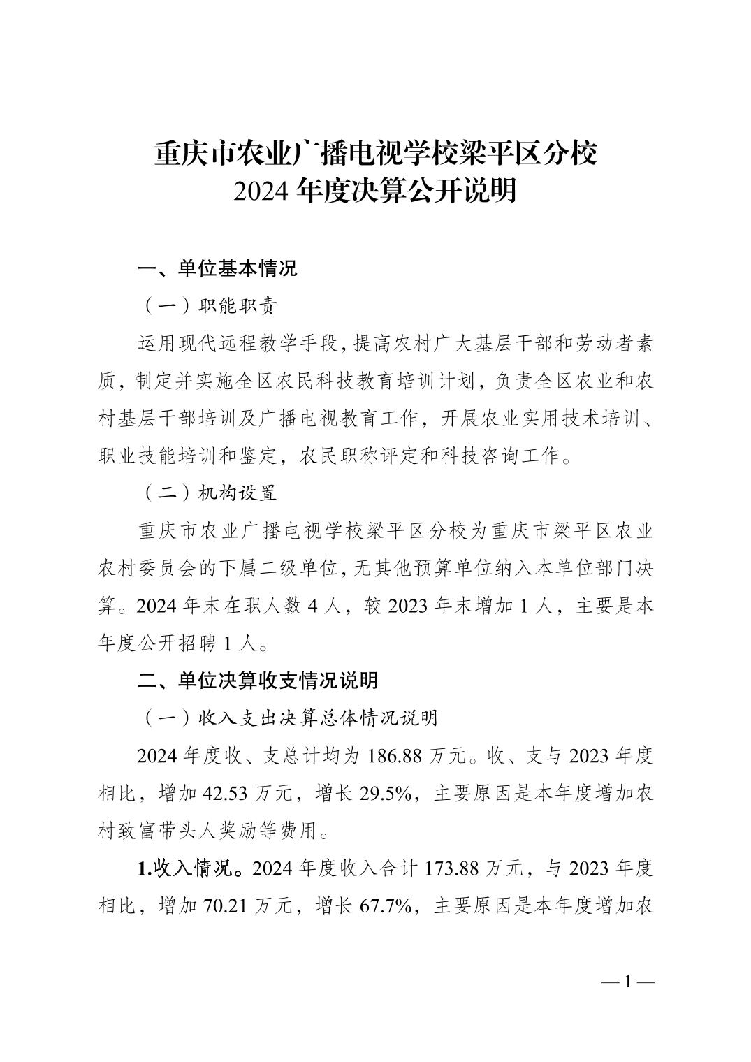 标题 | 重庆市农业广播电视学校梁平区分校2024年度决算公开说明 |