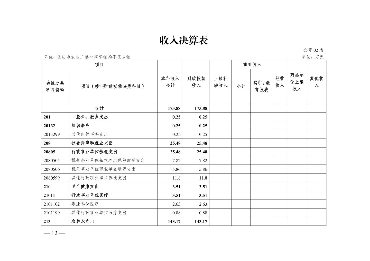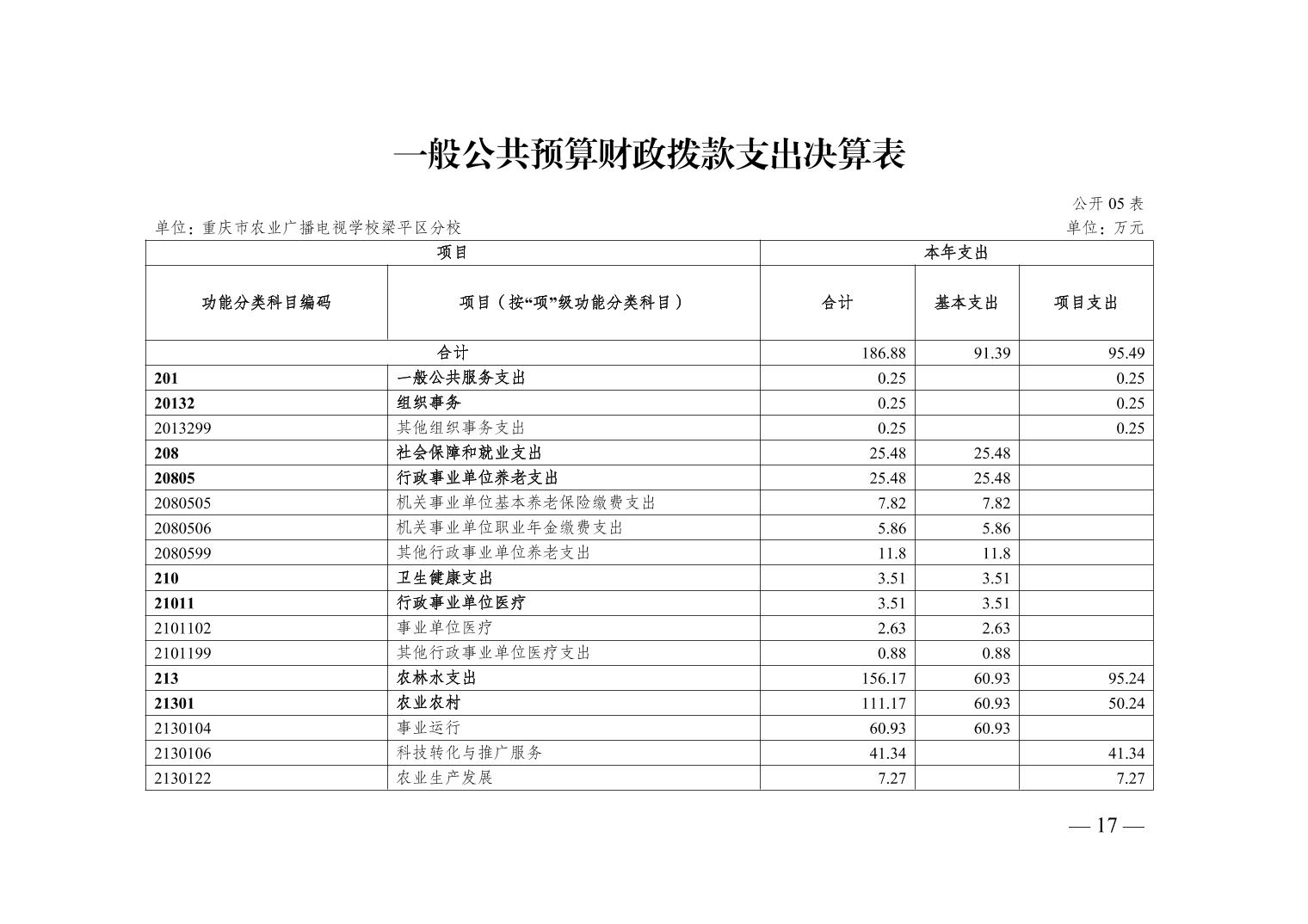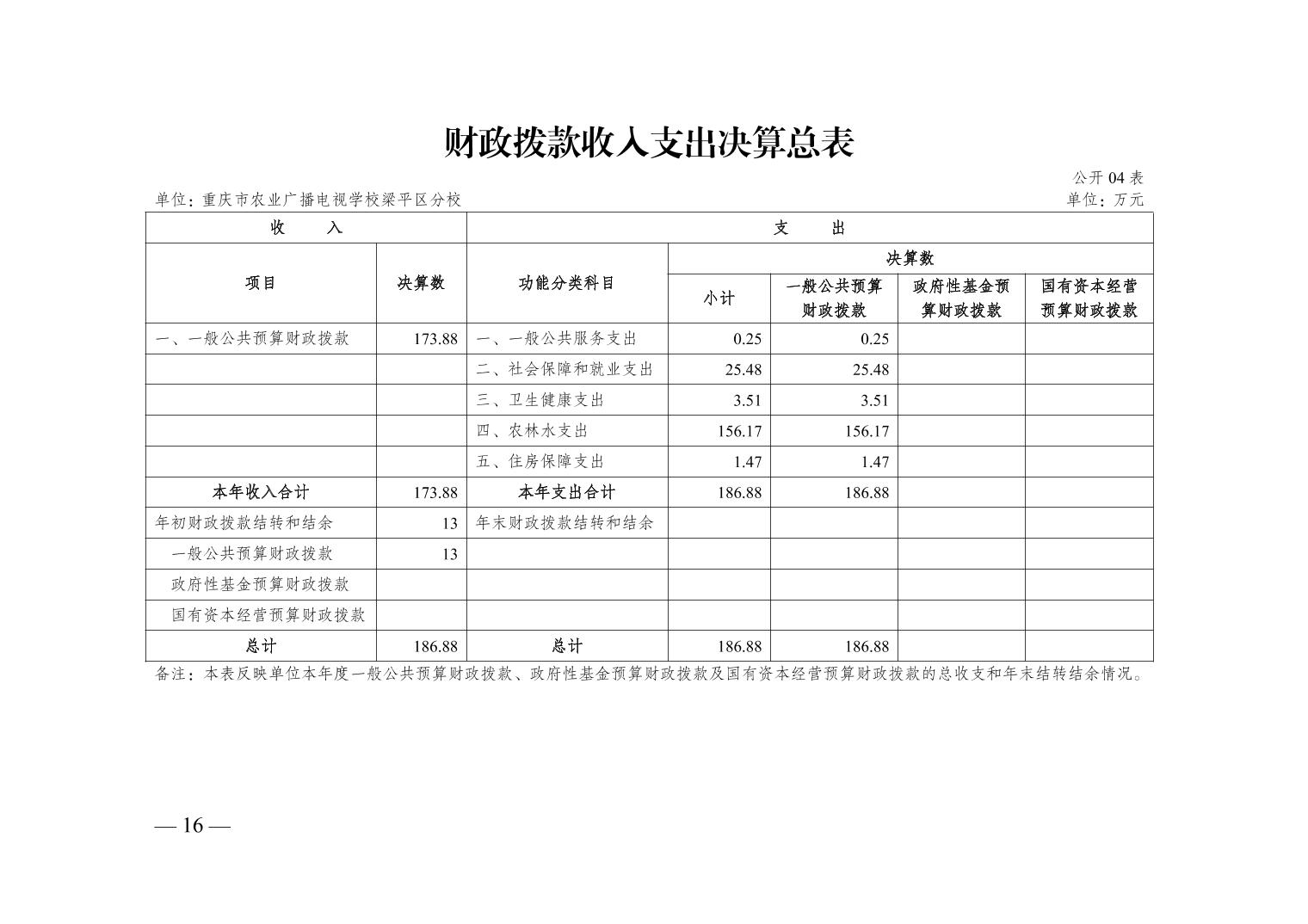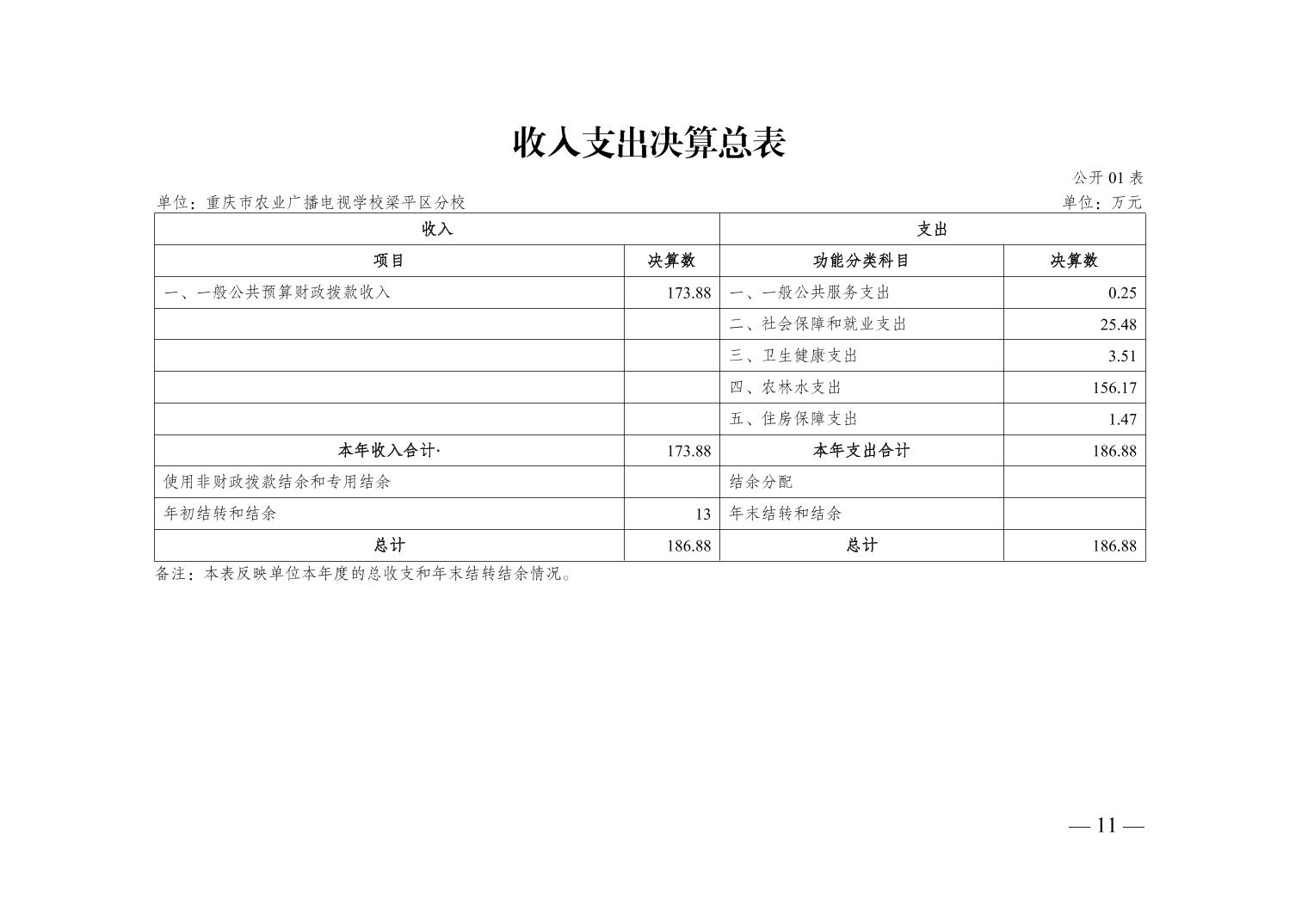 标题 | 重庆市农业广播电视学校梁平区分校2024年度决算公开说明 | ||