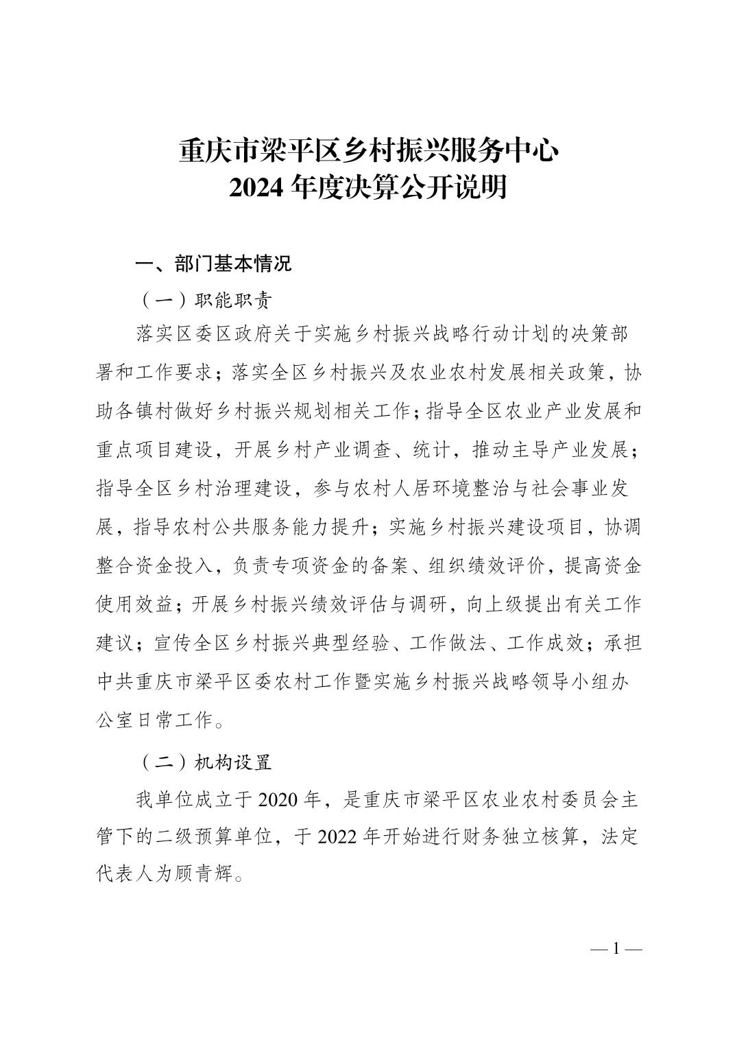 标题 | 重庆市梁平区乡村振兴服务中心2024年度决算公开说明 |