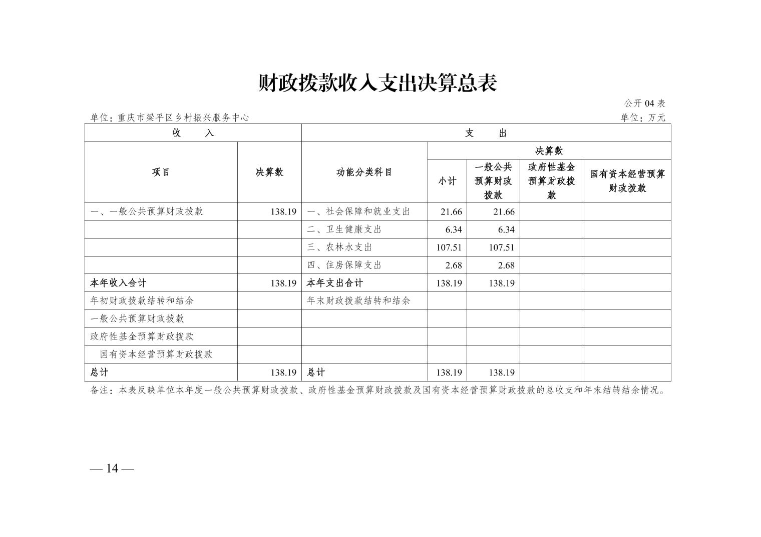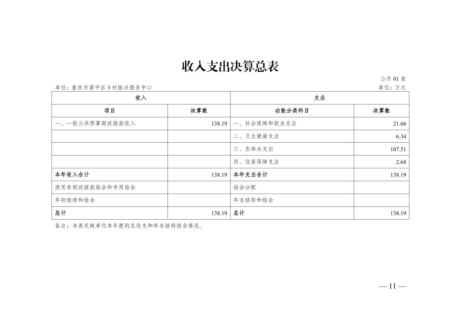 标题 | 重庆市梁平区乡村振兴服务中心2024年度决算公开说明 | ||
