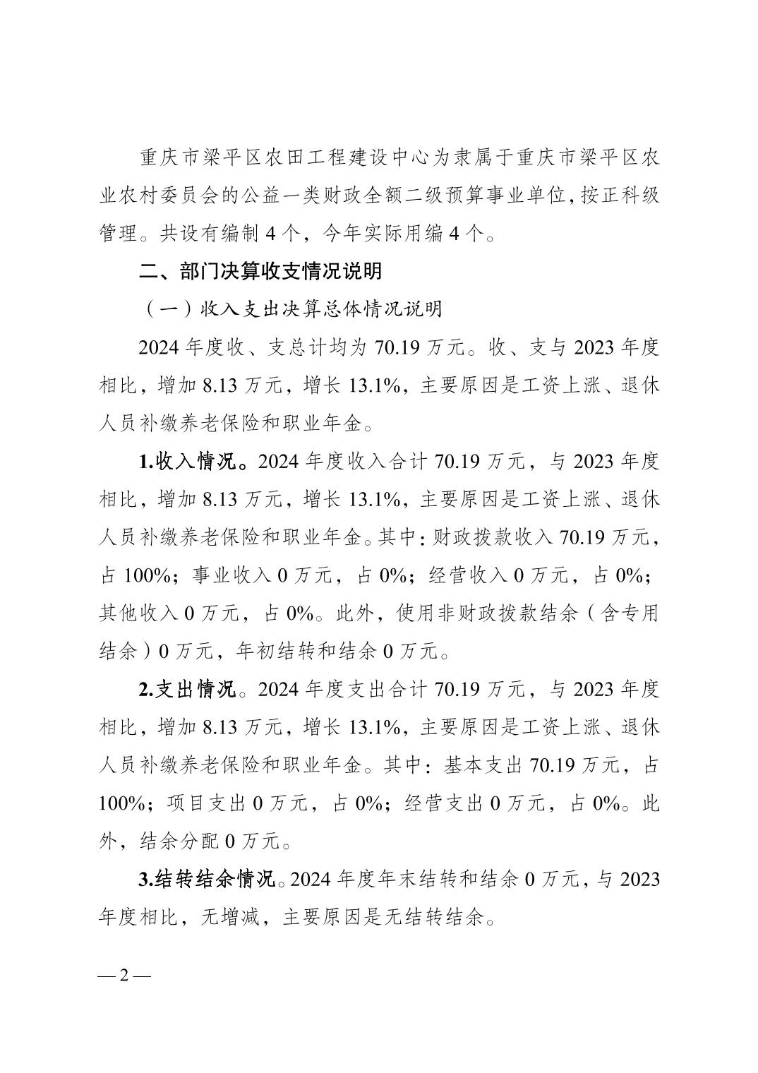 标题 | 重庆市梁平区农田工程建设中心2024年度决算公开说明 |