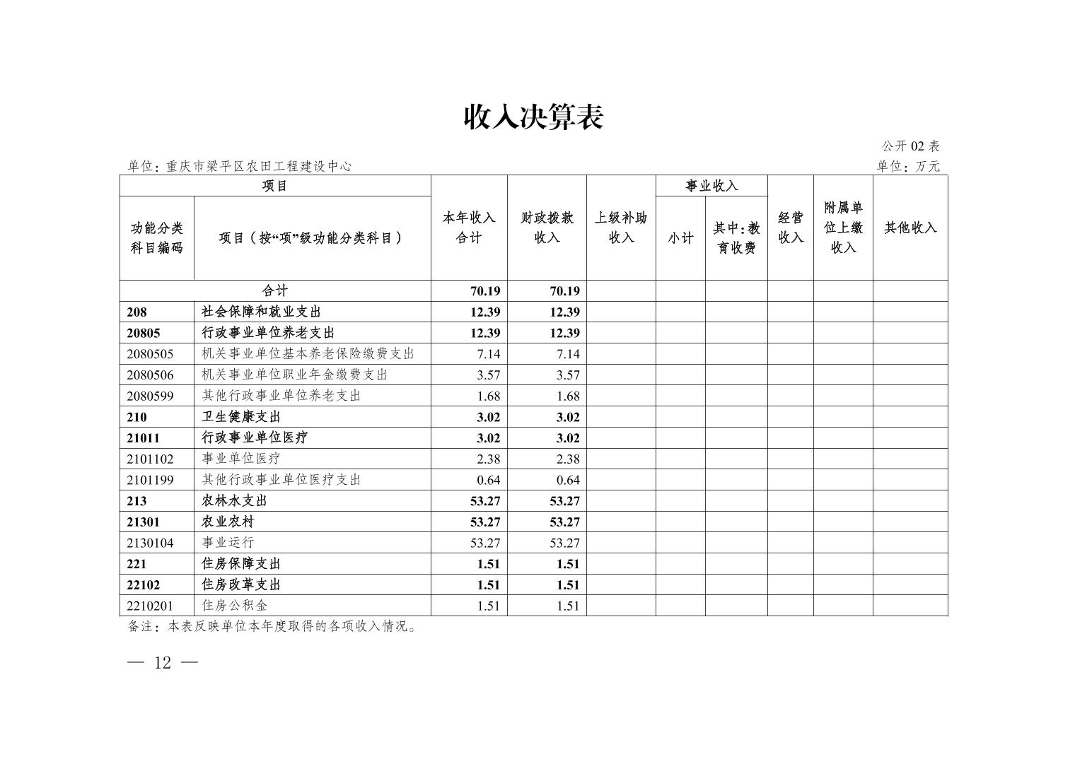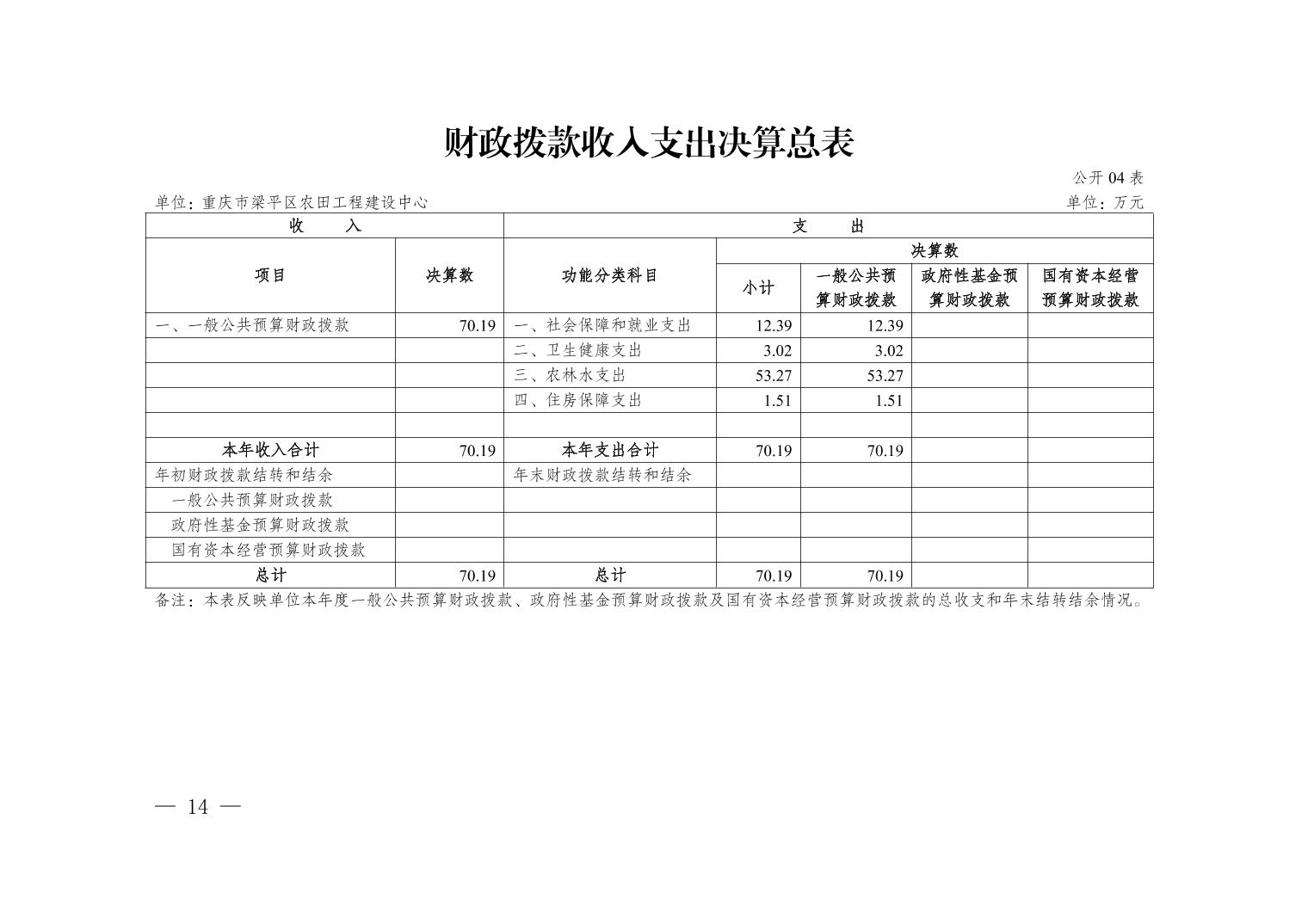 标题 | 重庆市梁平区农田工程建设中心2024年度决算公开说明 | ||