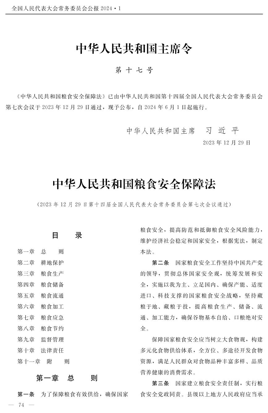 | 标题 | 中华人民共和国粮食安全保障法 |