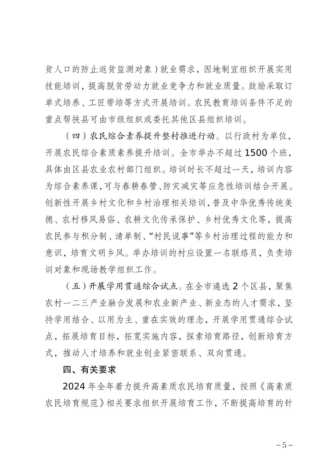 | 标题 | 重庆市农业农村委员会办公室关于做好 2024 年高素质农民培育工作的通知 |