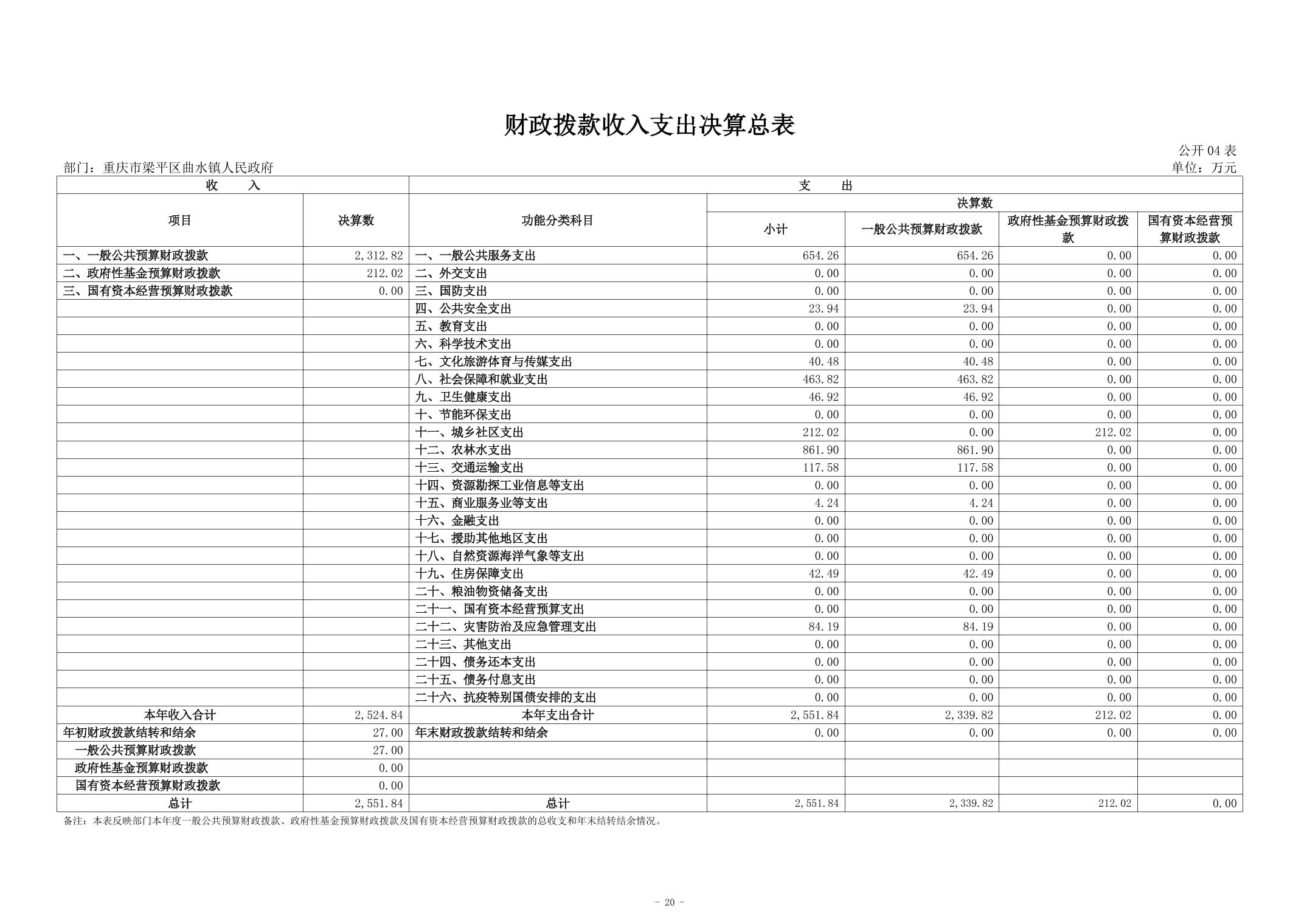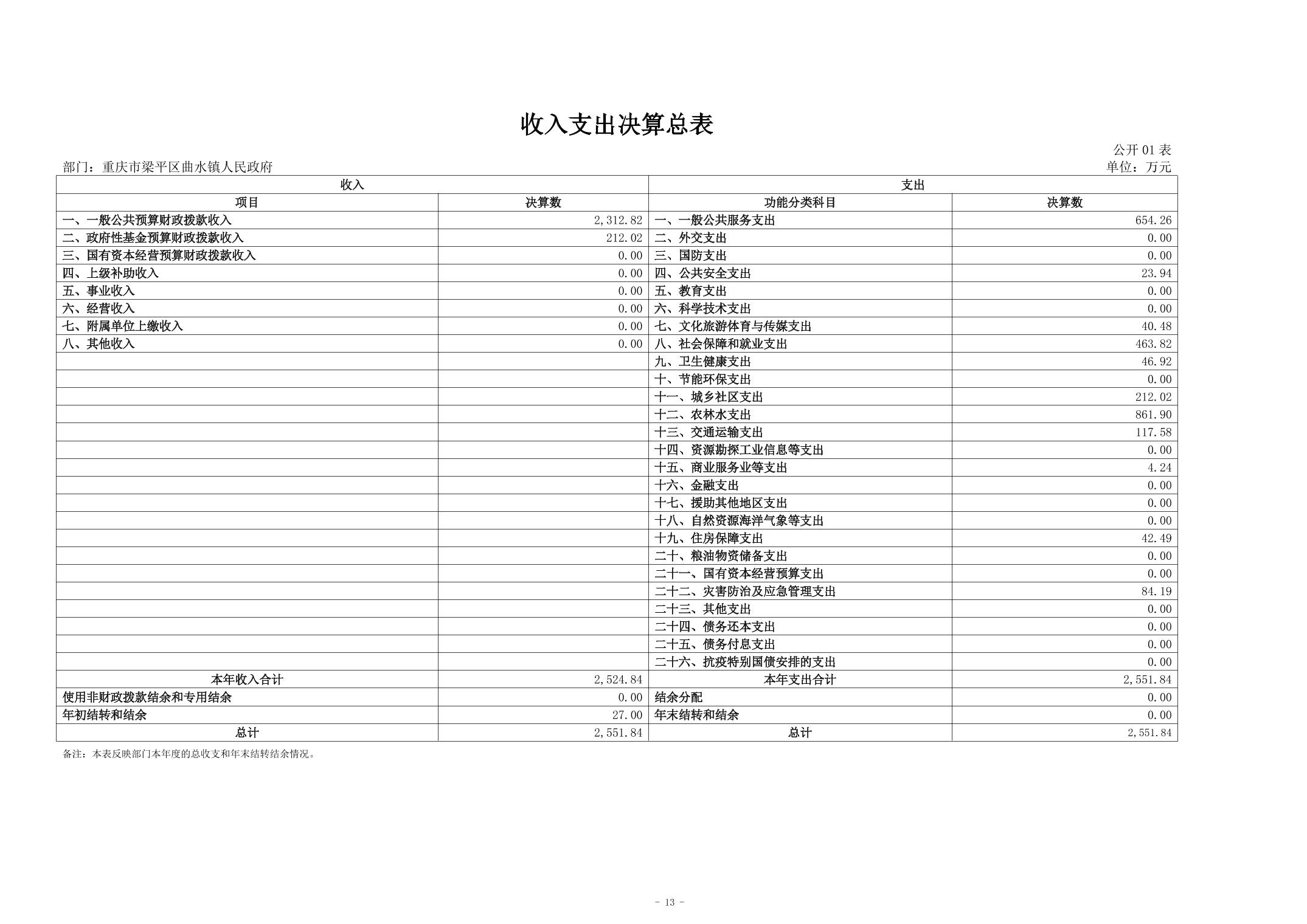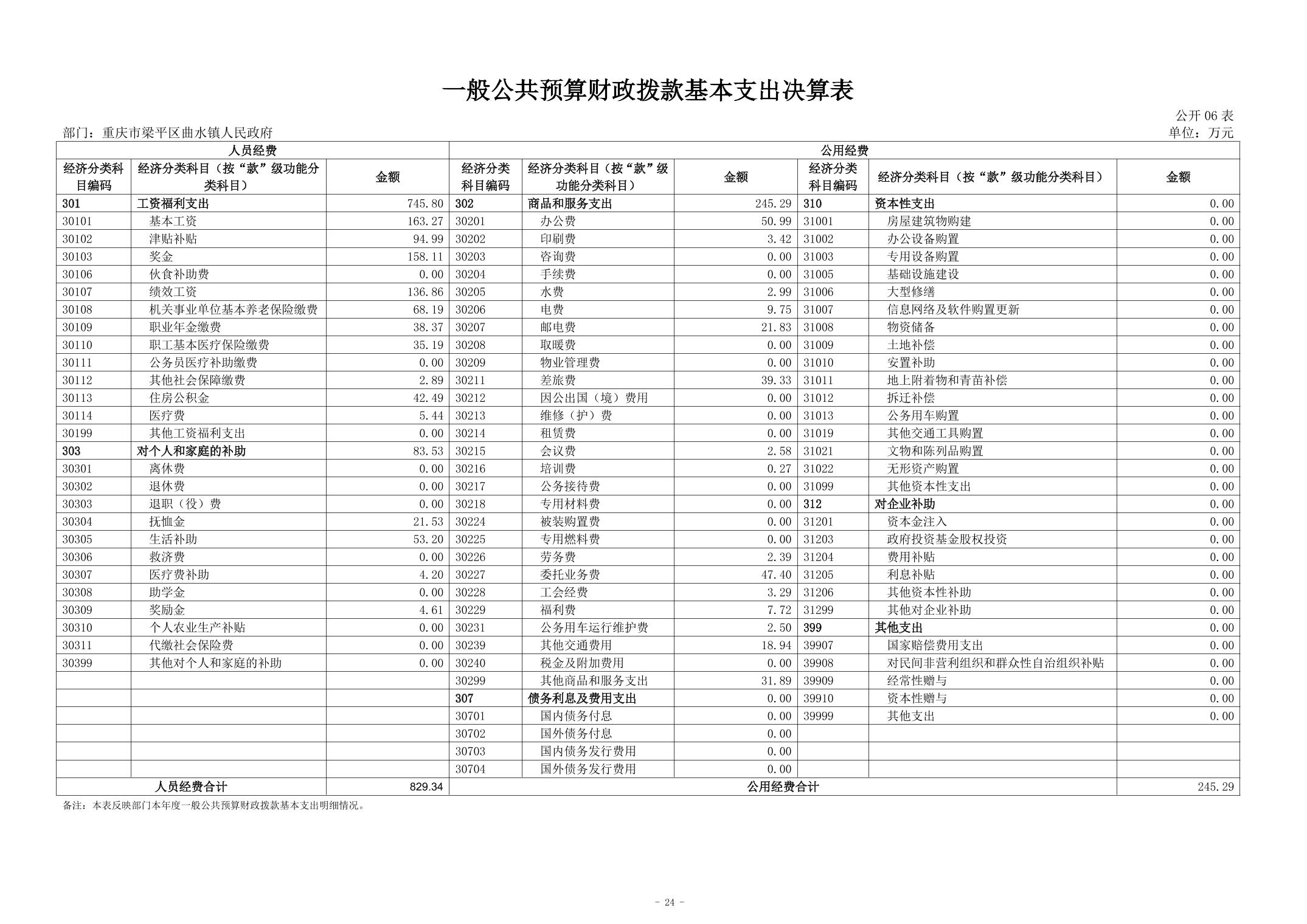 | 标题 | 重庆市梁平区曲水镇人民政府2024年度决算说明 |