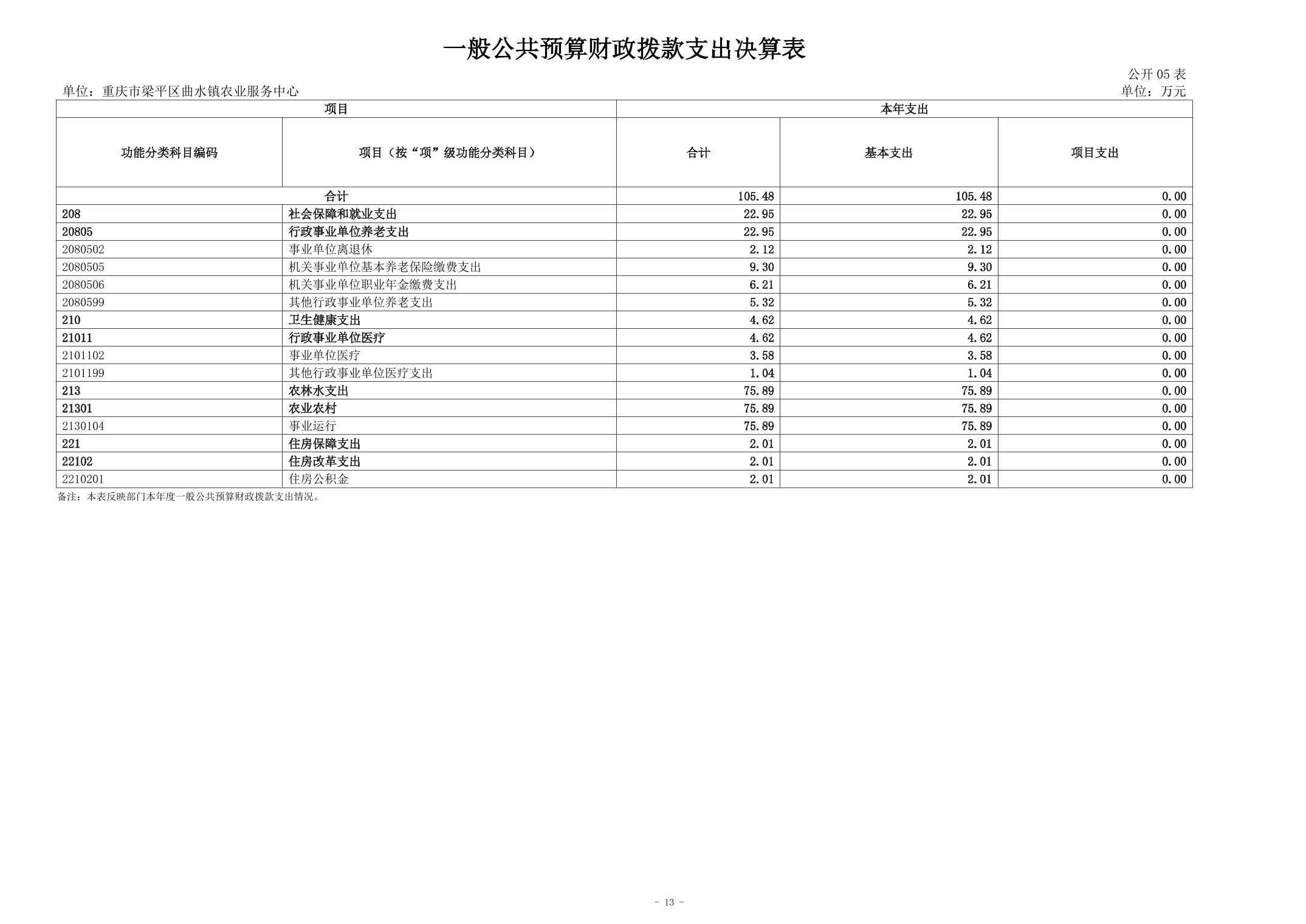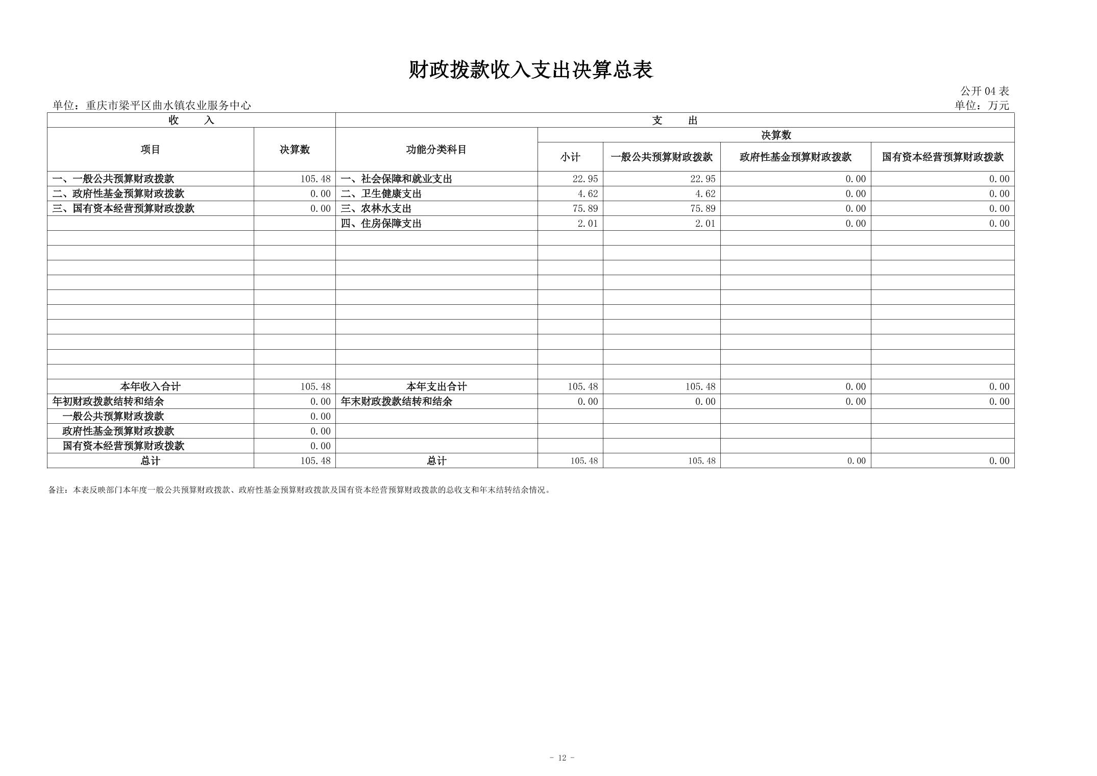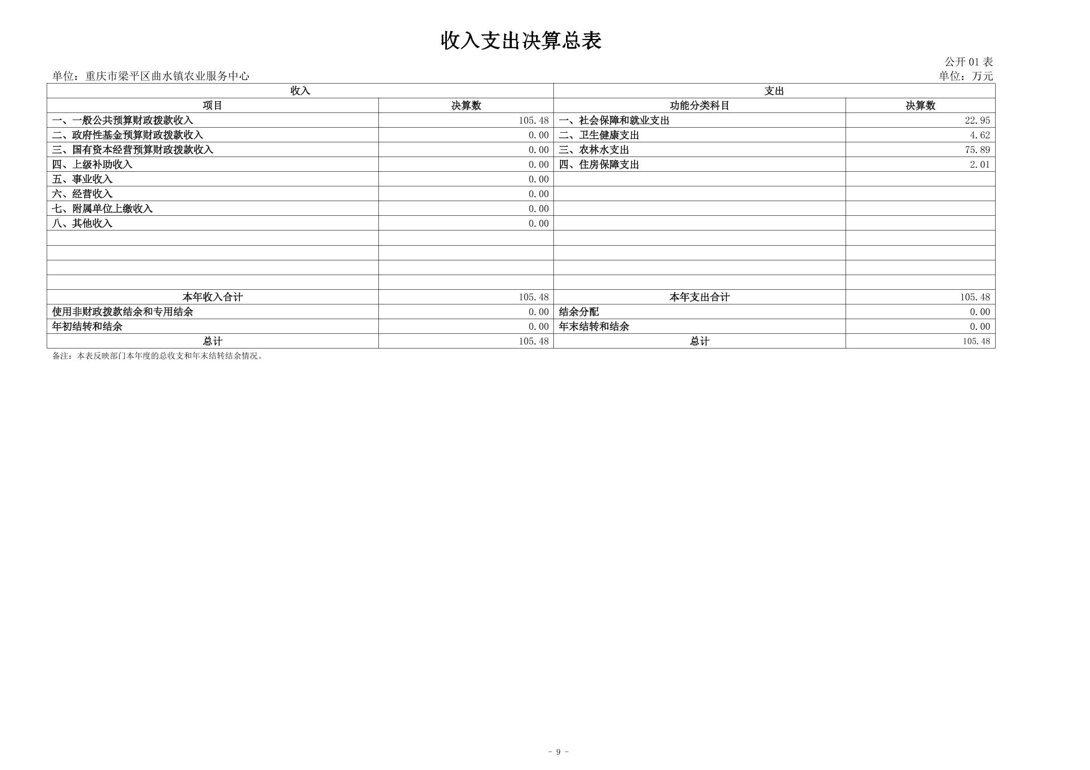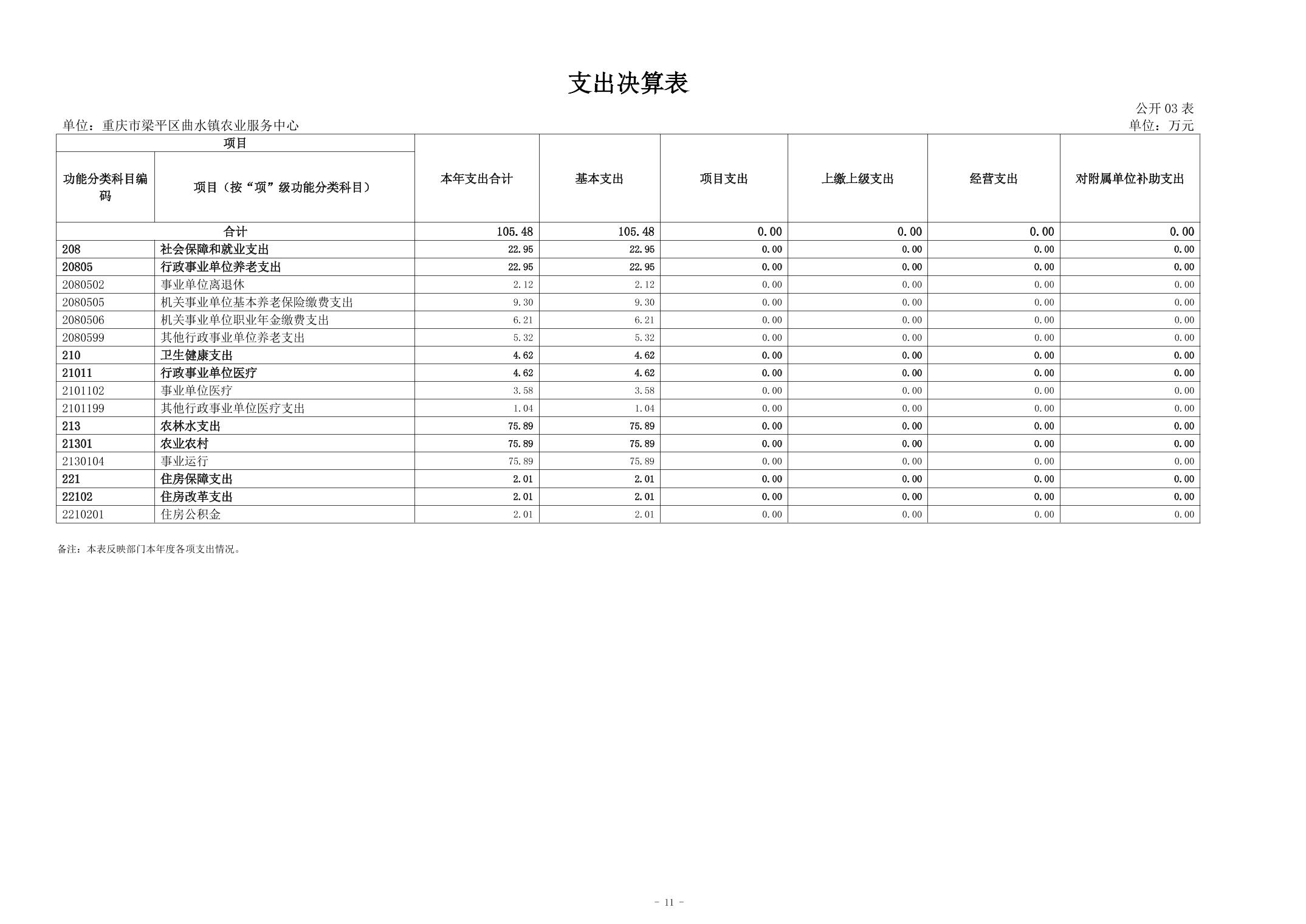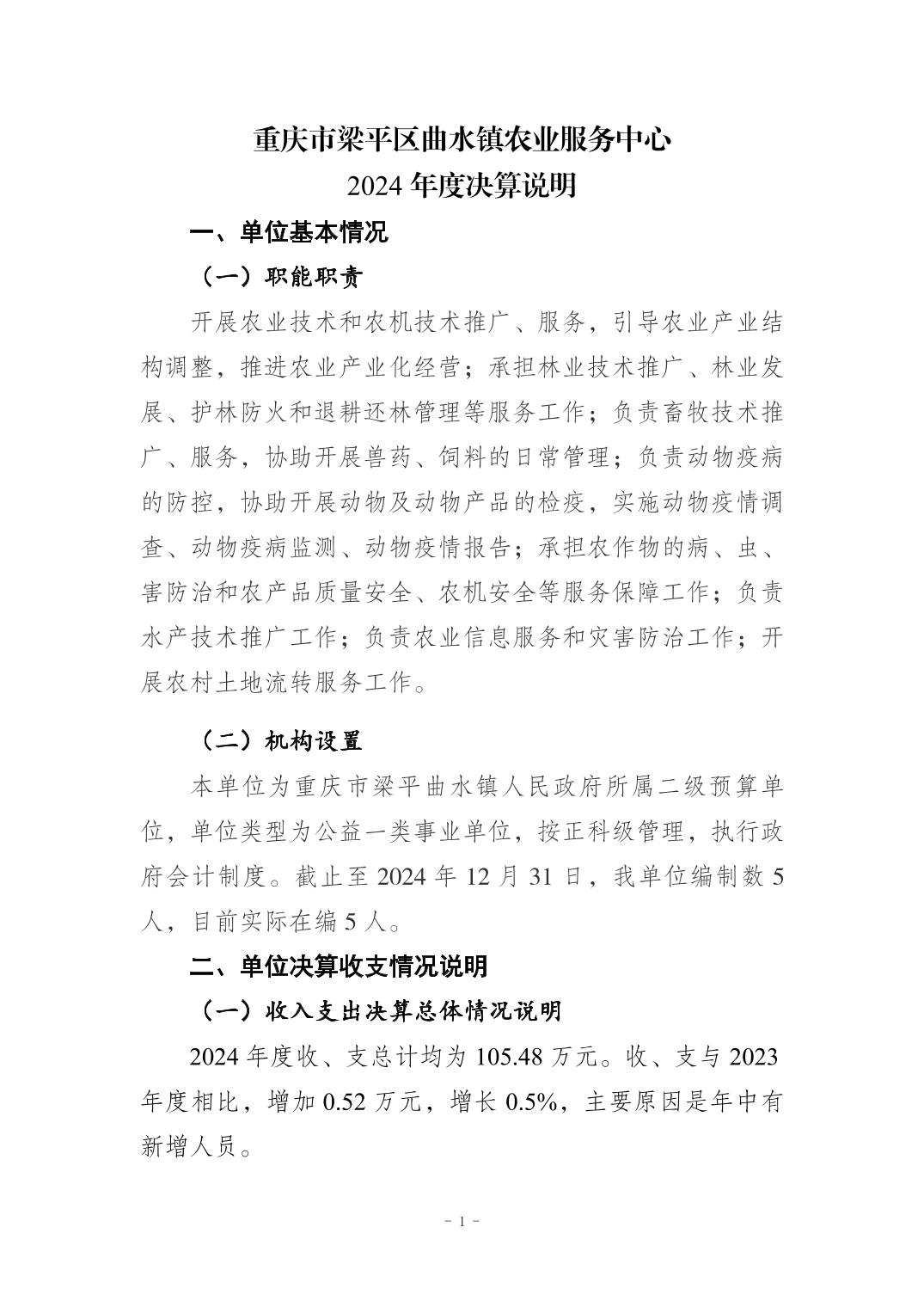 标题 | 重庆市梁平区曲水镇农业服务中心2024年度决算说明 |
