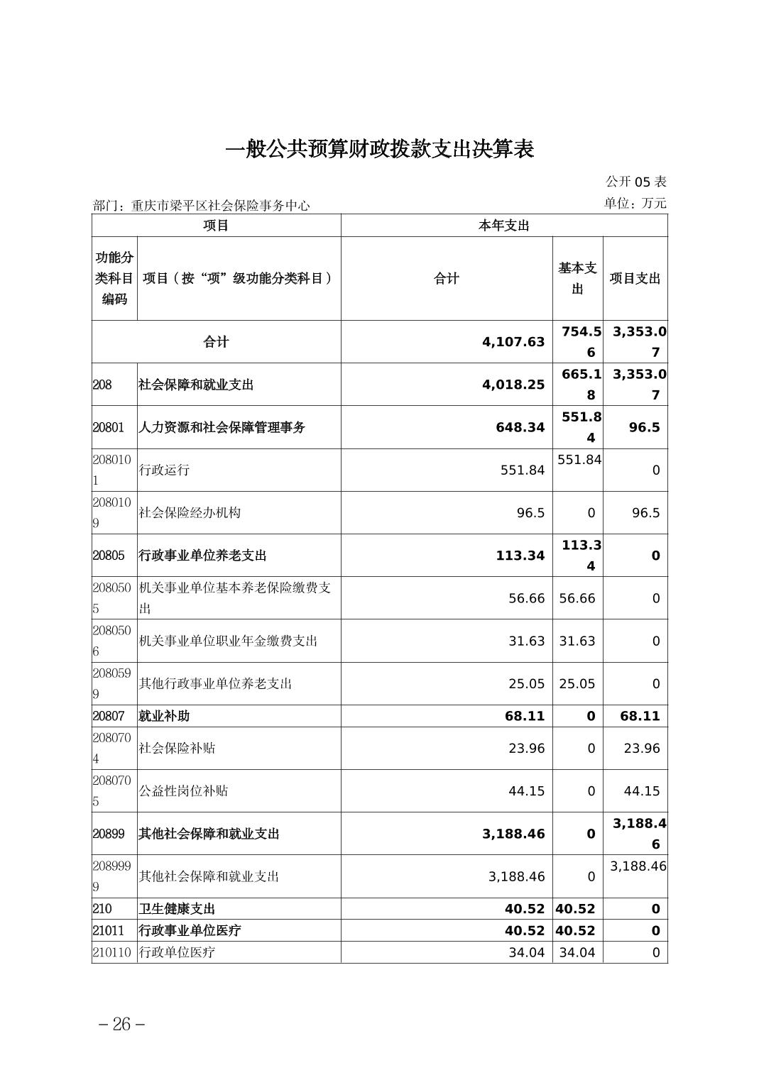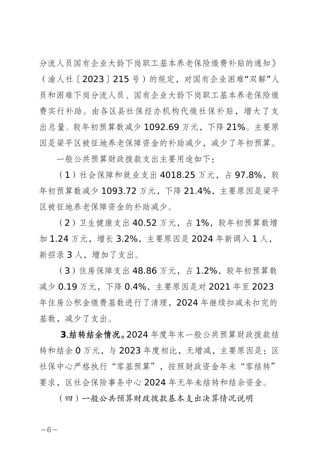 标题 | 重庆市梁平区社会保险事务中心2024年度决算公开说明 |