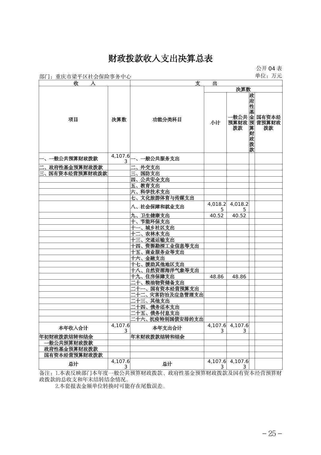 标题 | 重庆市梁平区社会保险事务中心2024年度决算公开说明 | ||