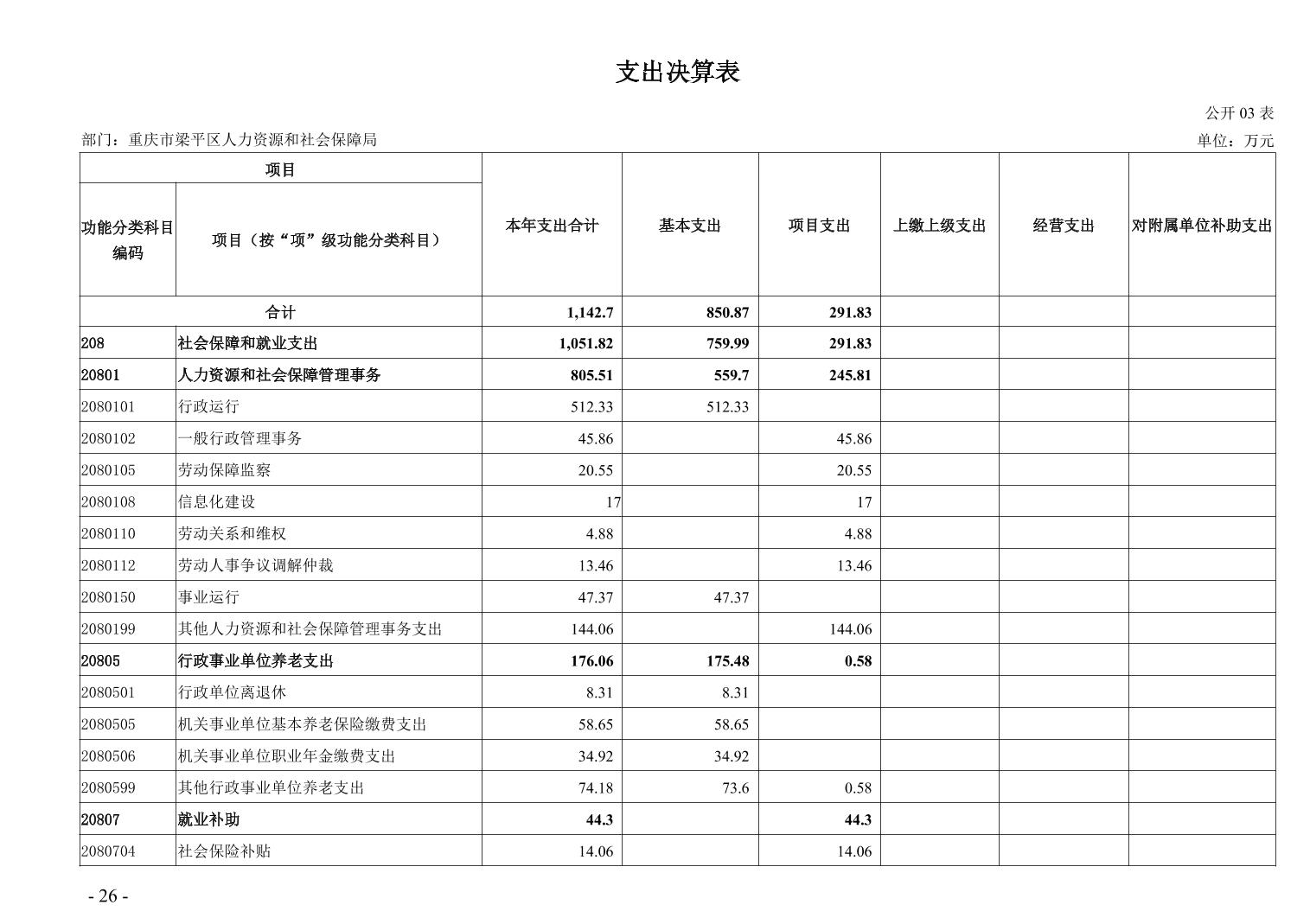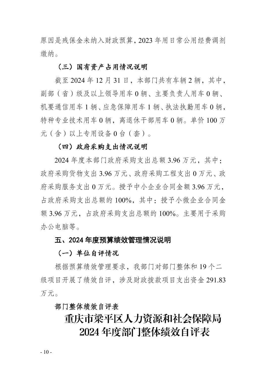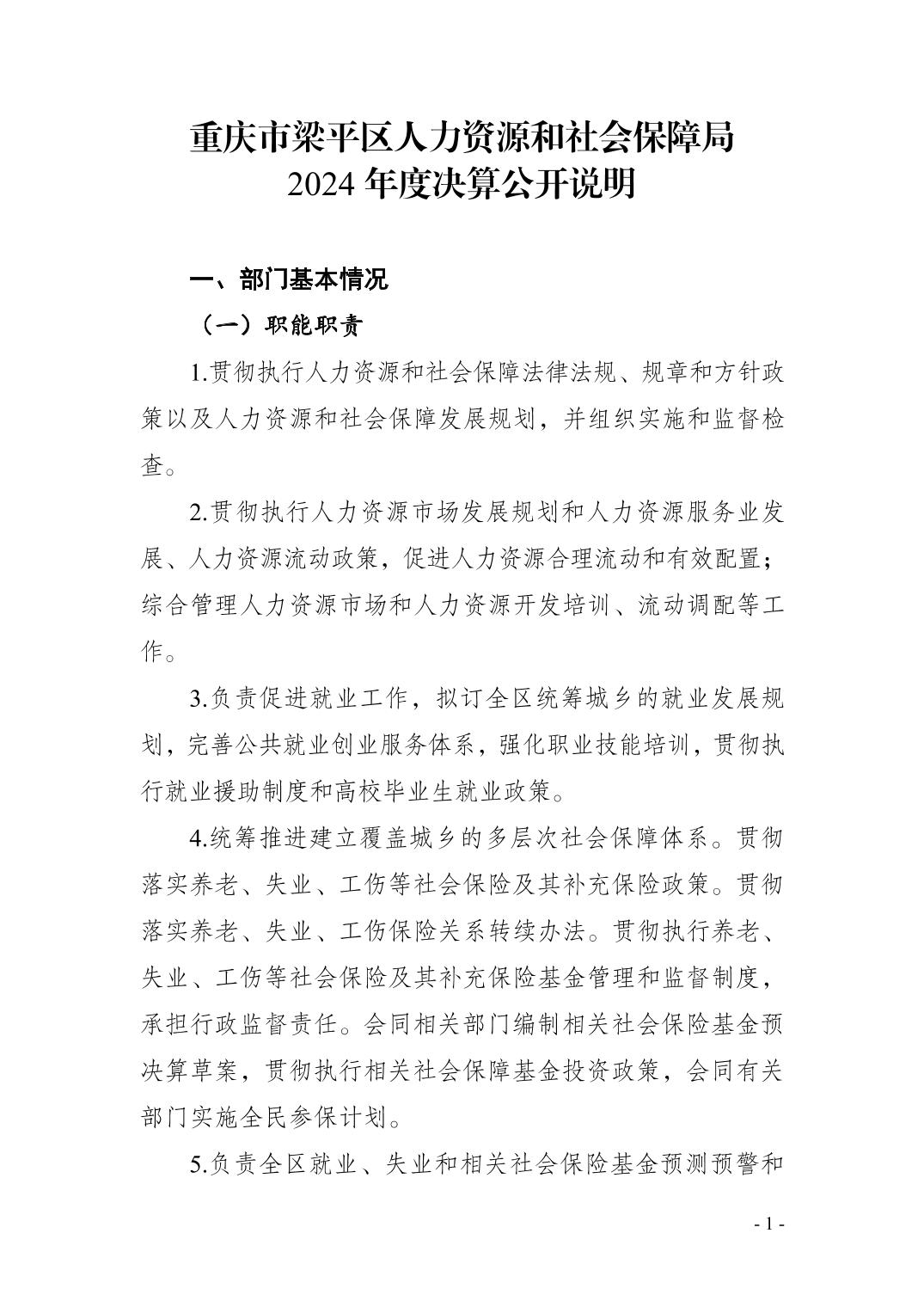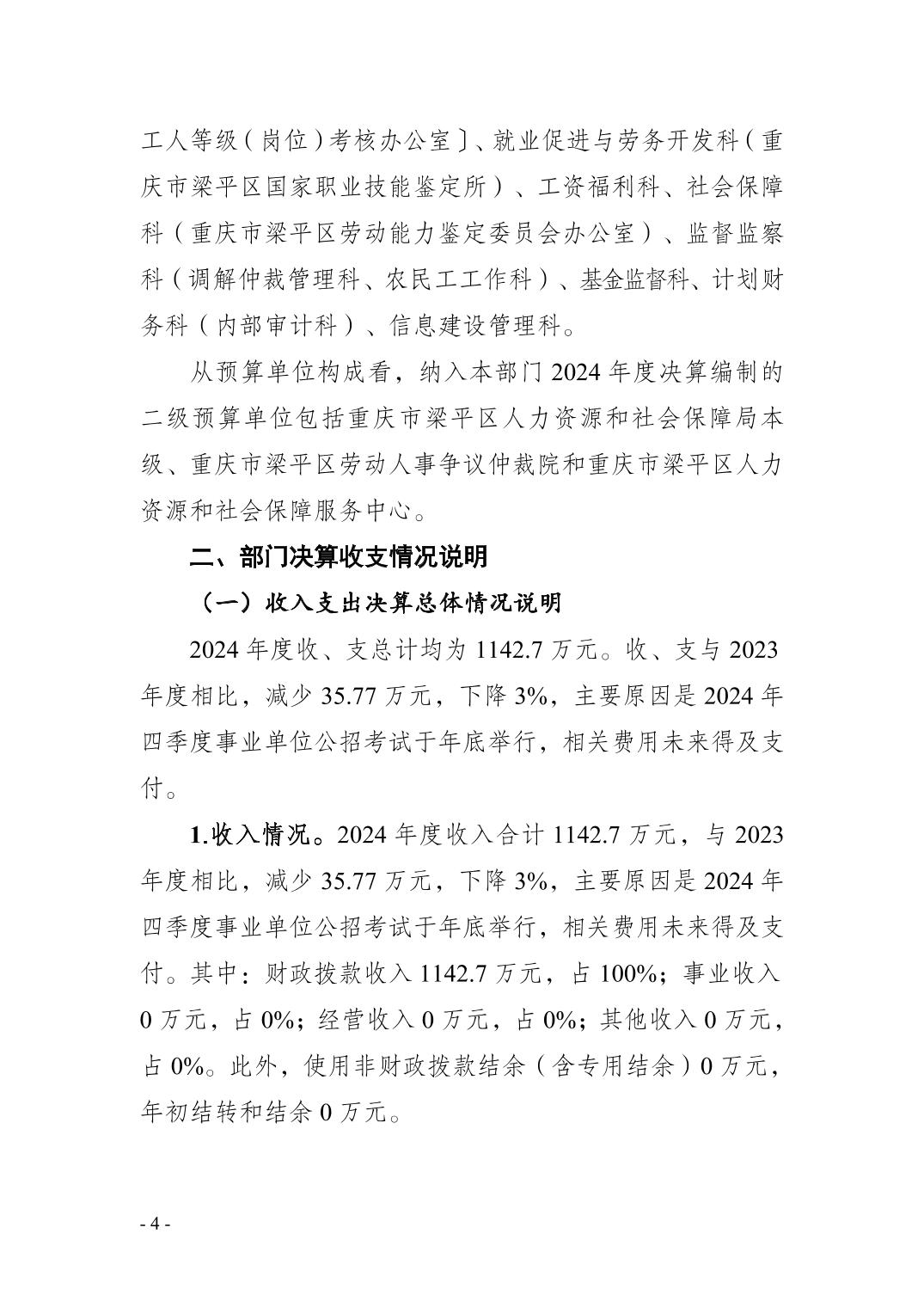 标题 | 重庆市梁平区人力资源和社会保障局 2024 年度决算公开说明 |