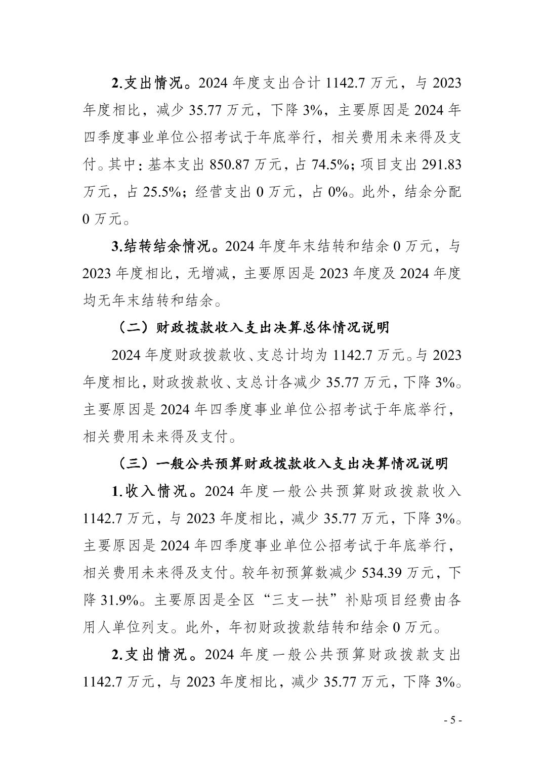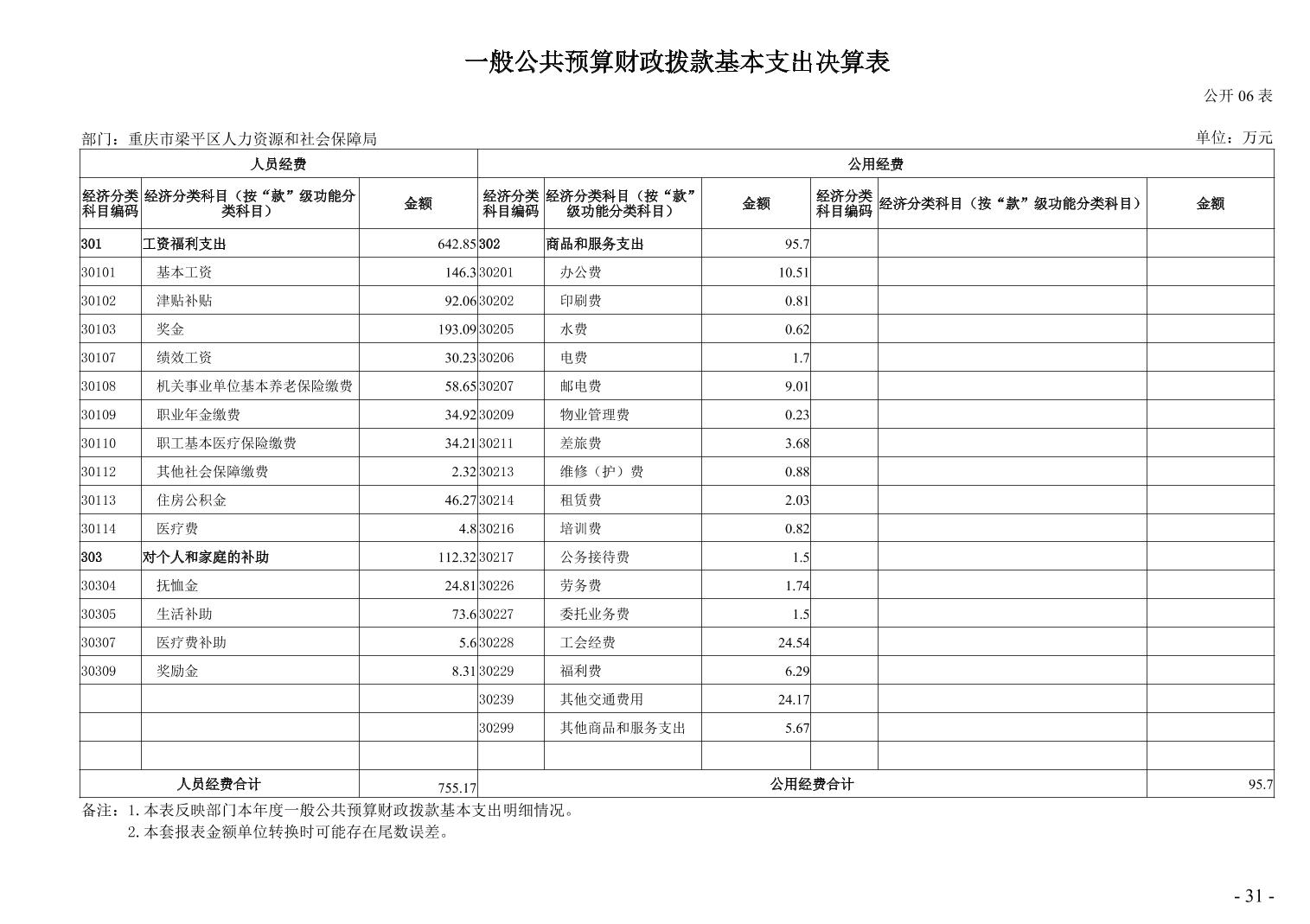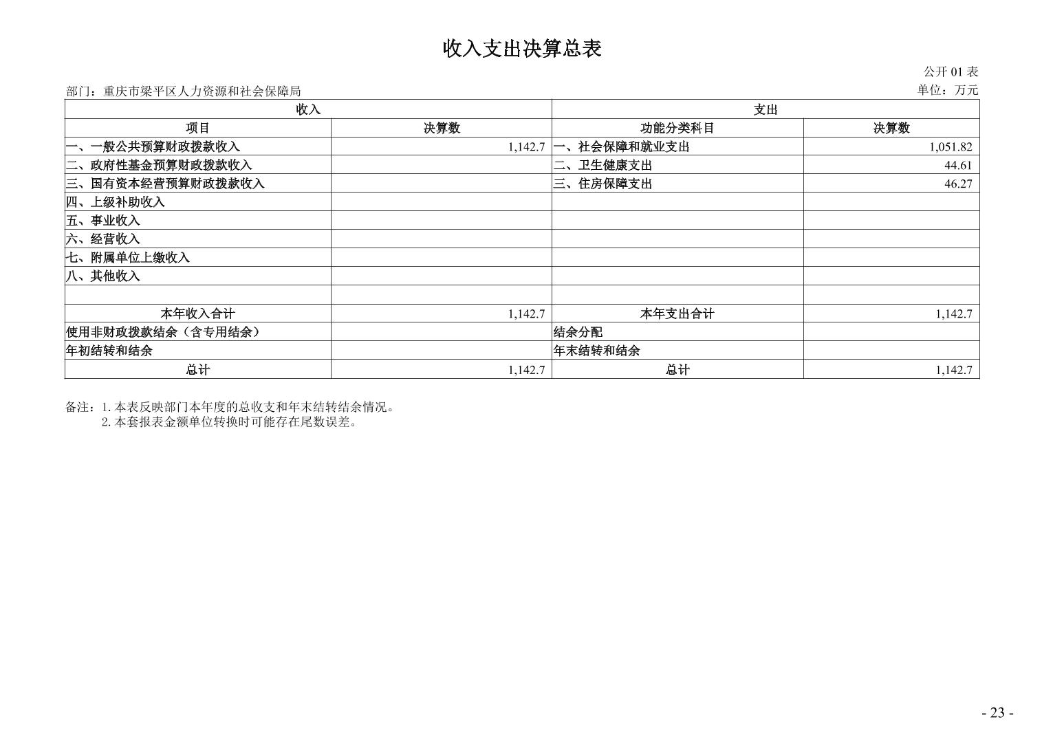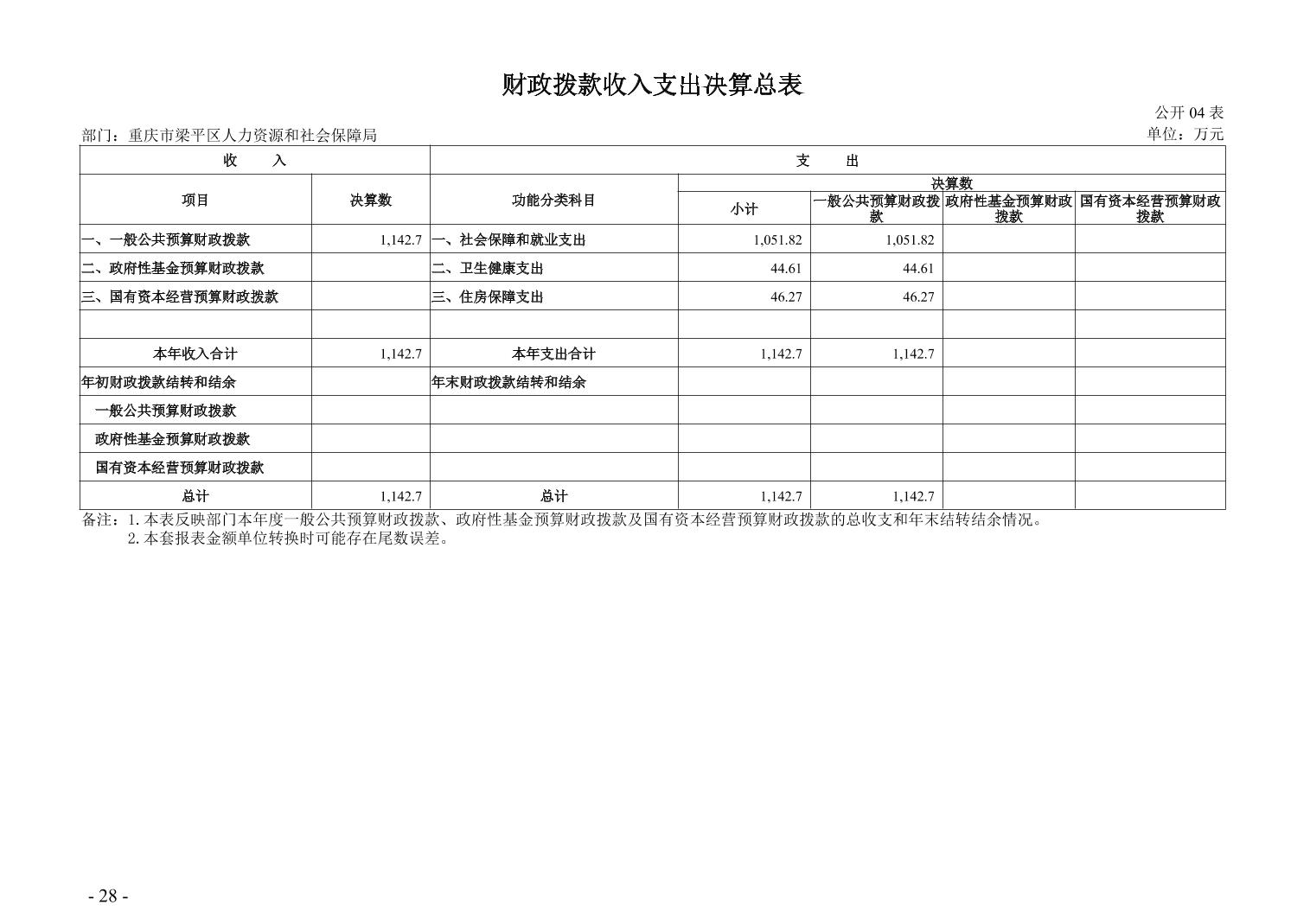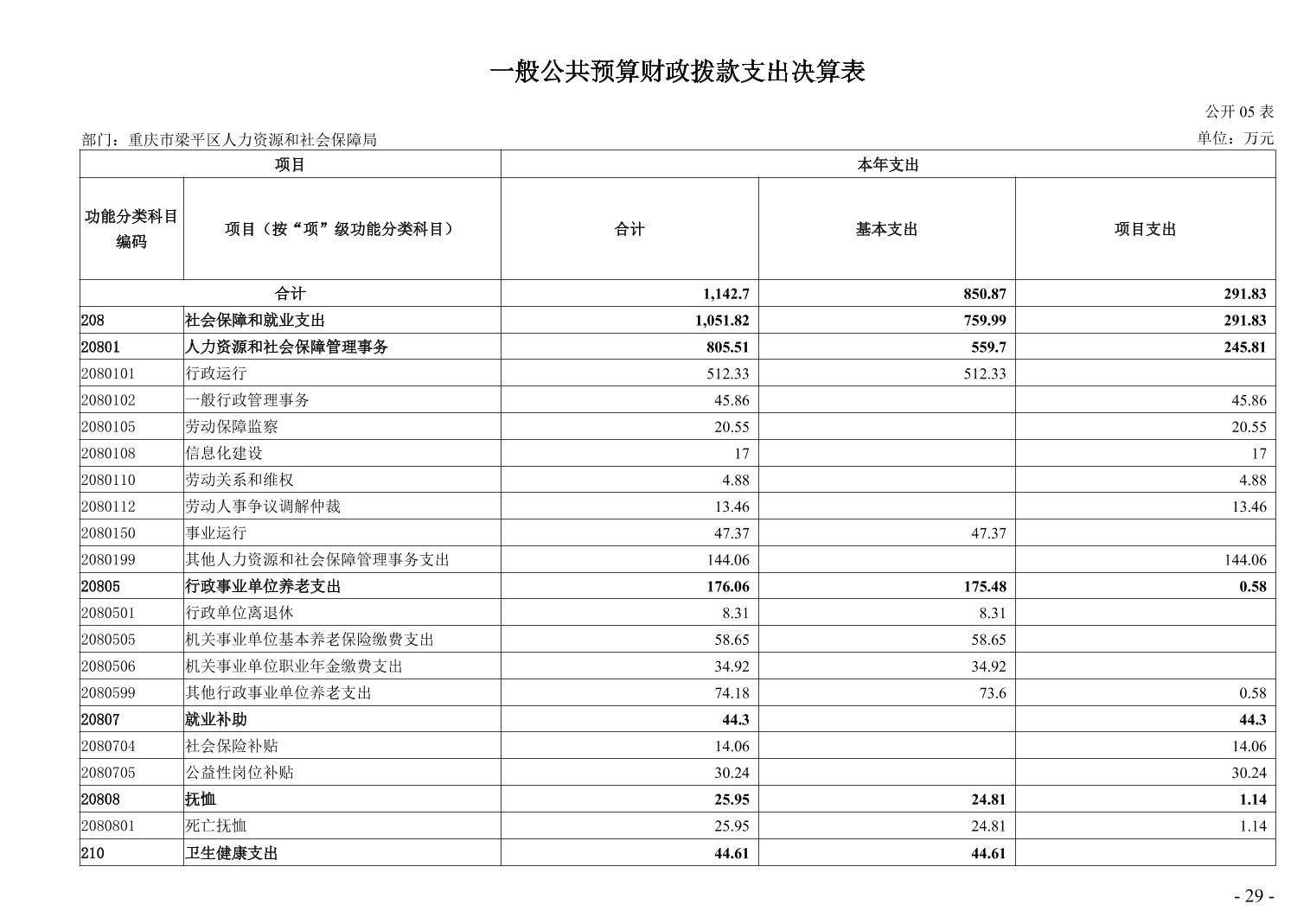 标题 | 重庆市梁平区人力资源和社会保障局 2024 年度决算公开说明 |