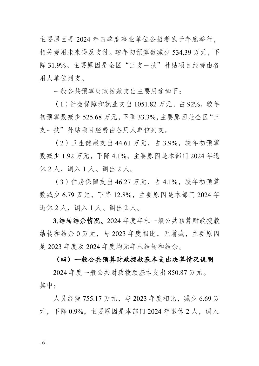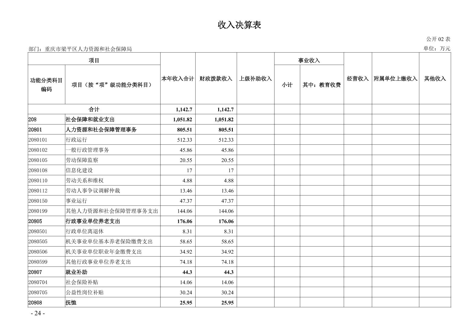 标题 | 重庆市梁平区人力资源和社会保障局 2024 年度决算公开说明 | ||
