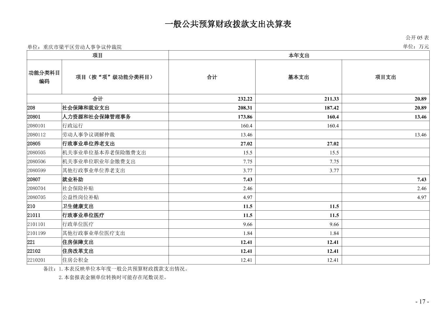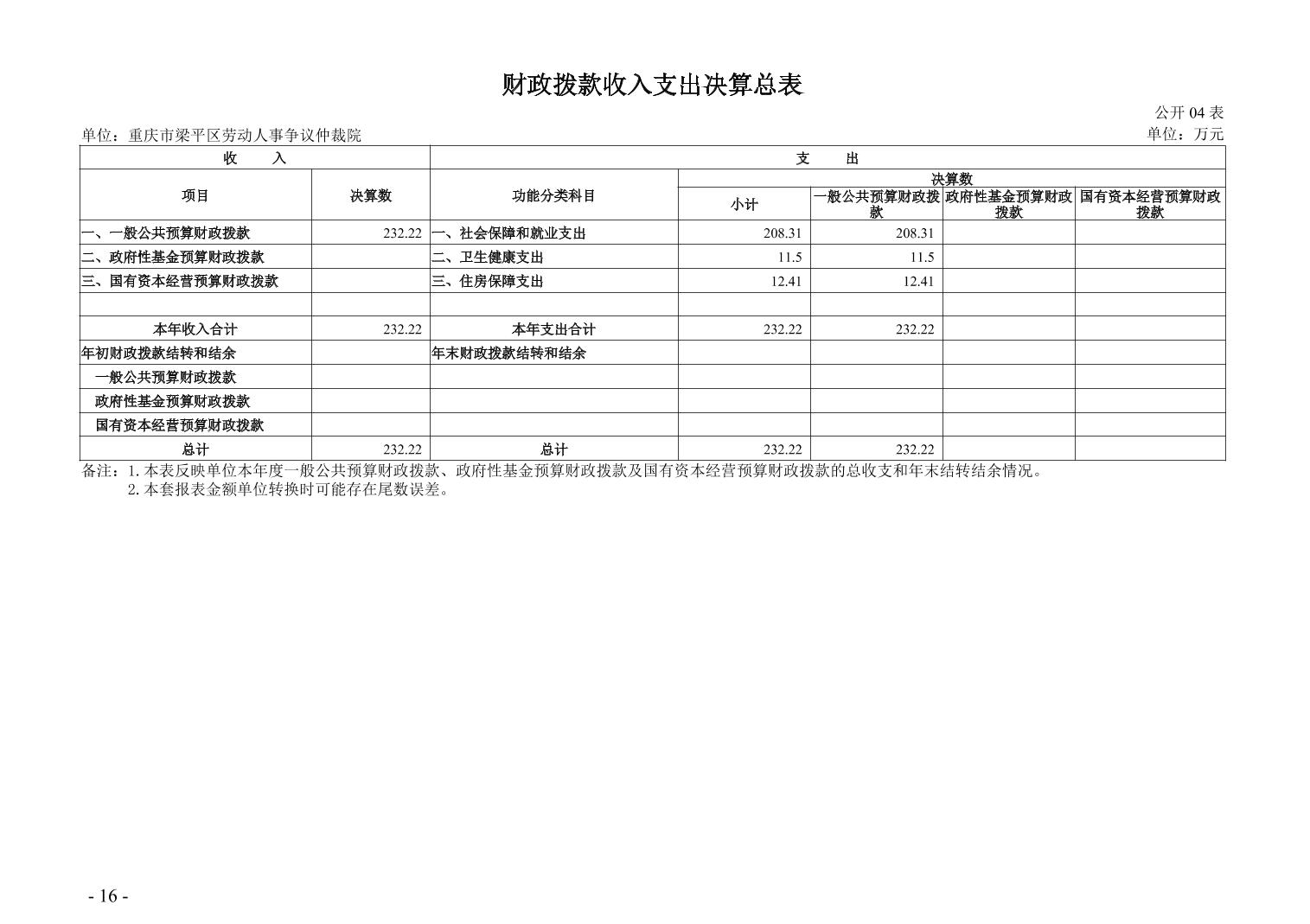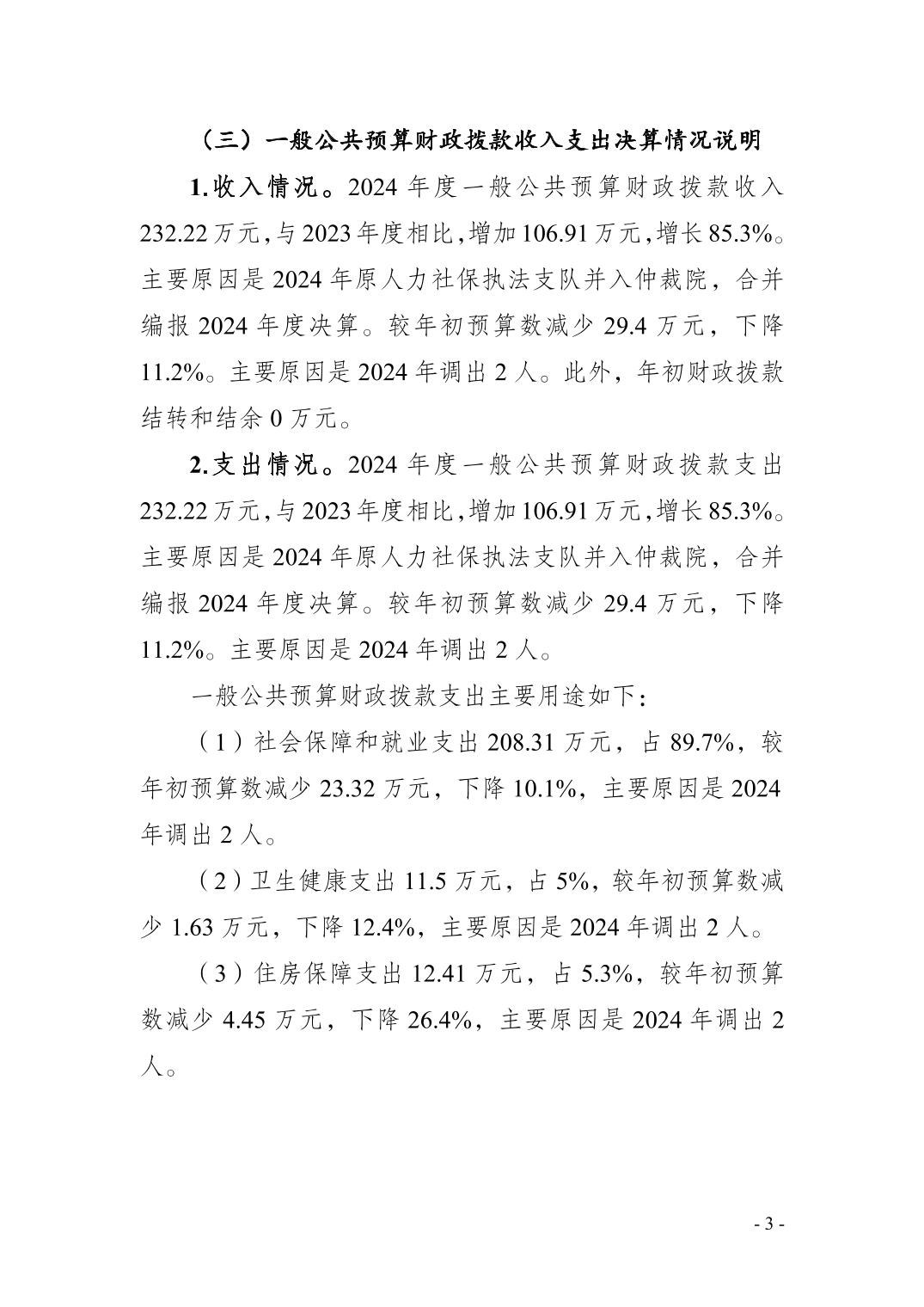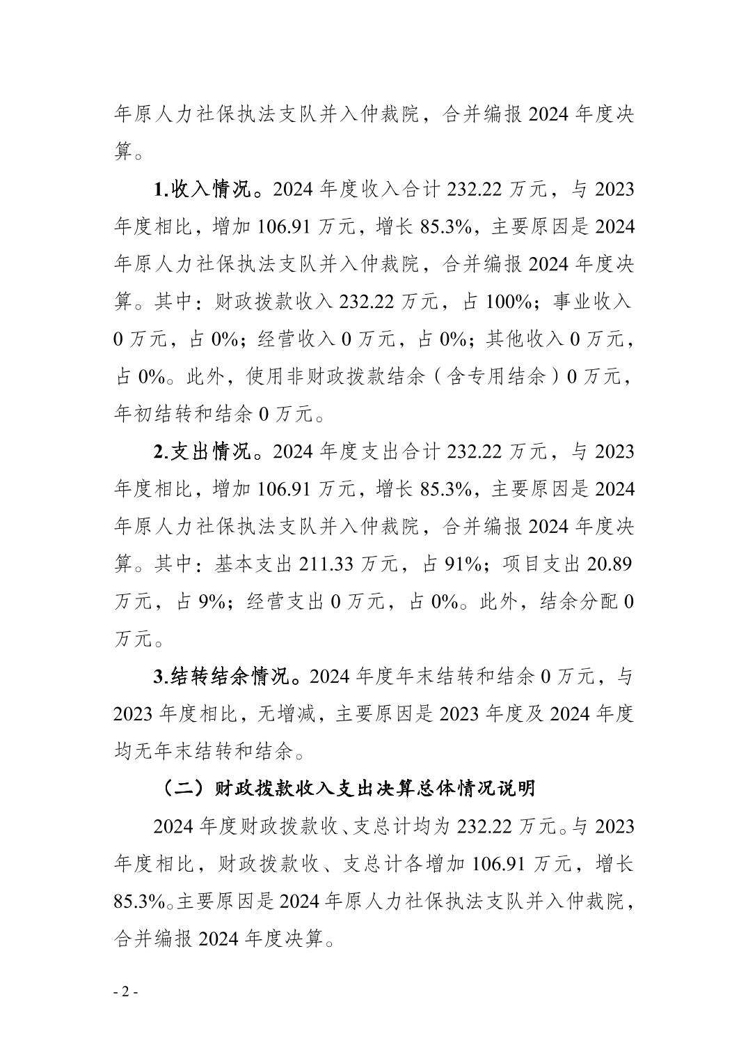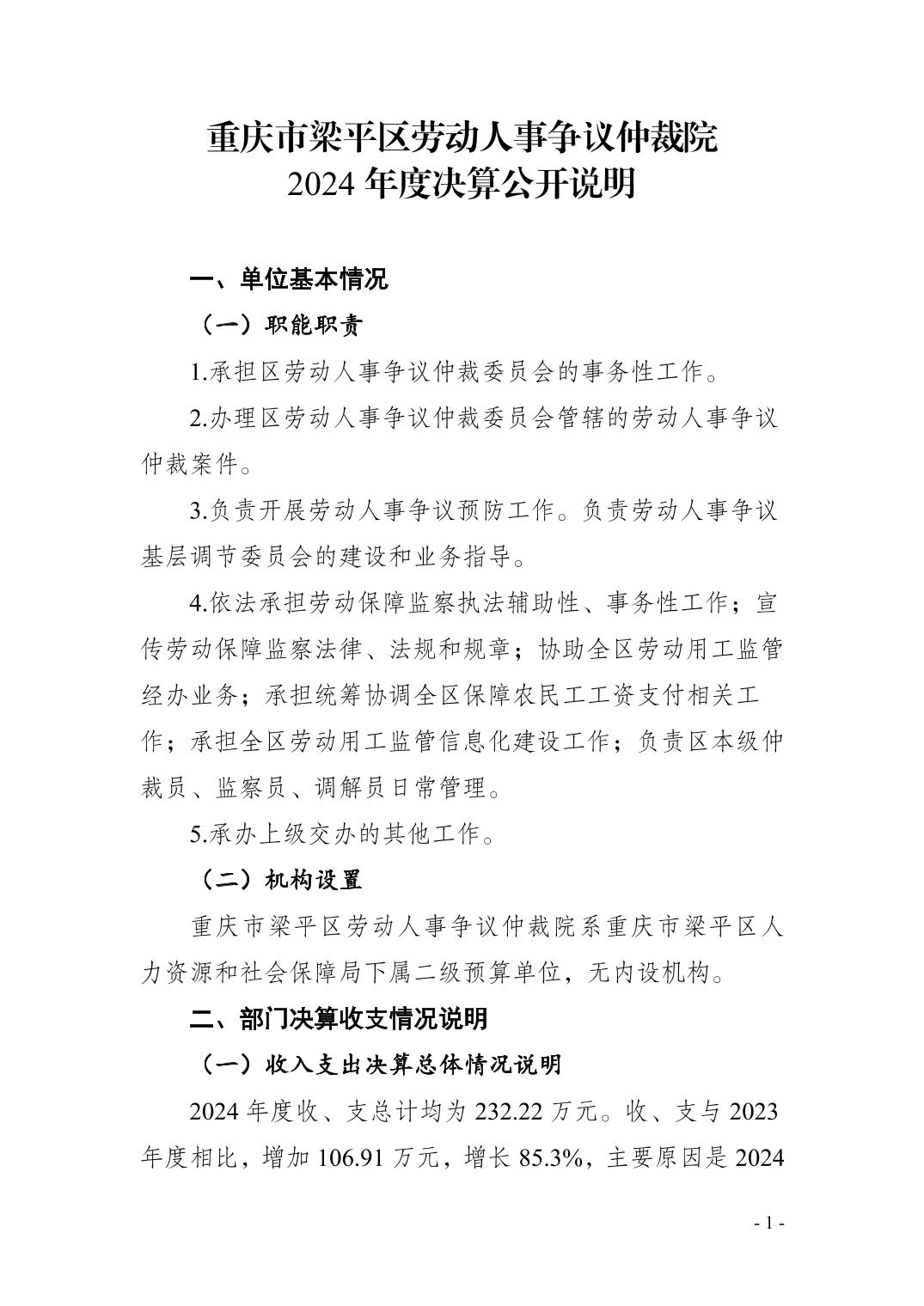 标题 | 重庆市梁平区劳动人事争议仲裁院 2024 年度决算公开说明 |