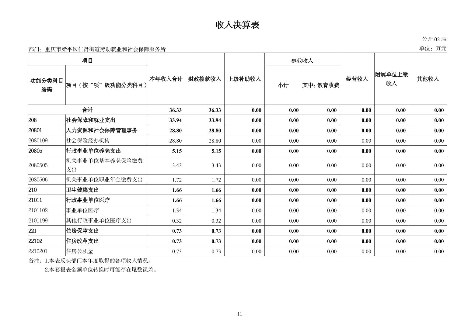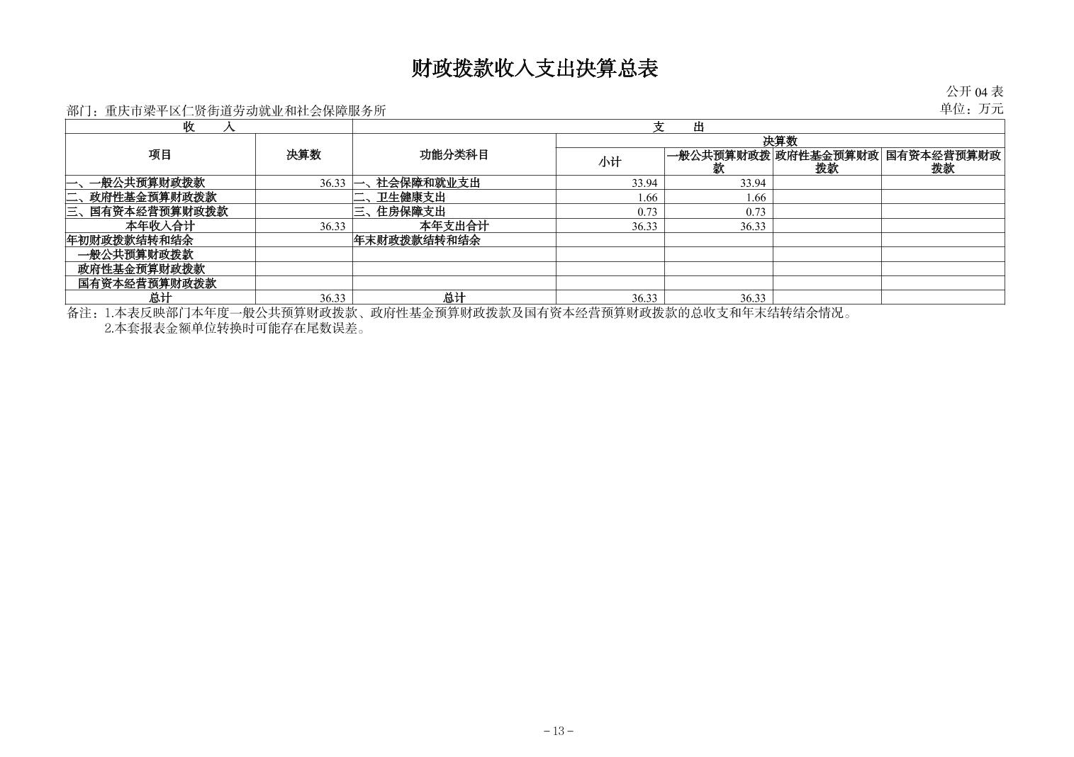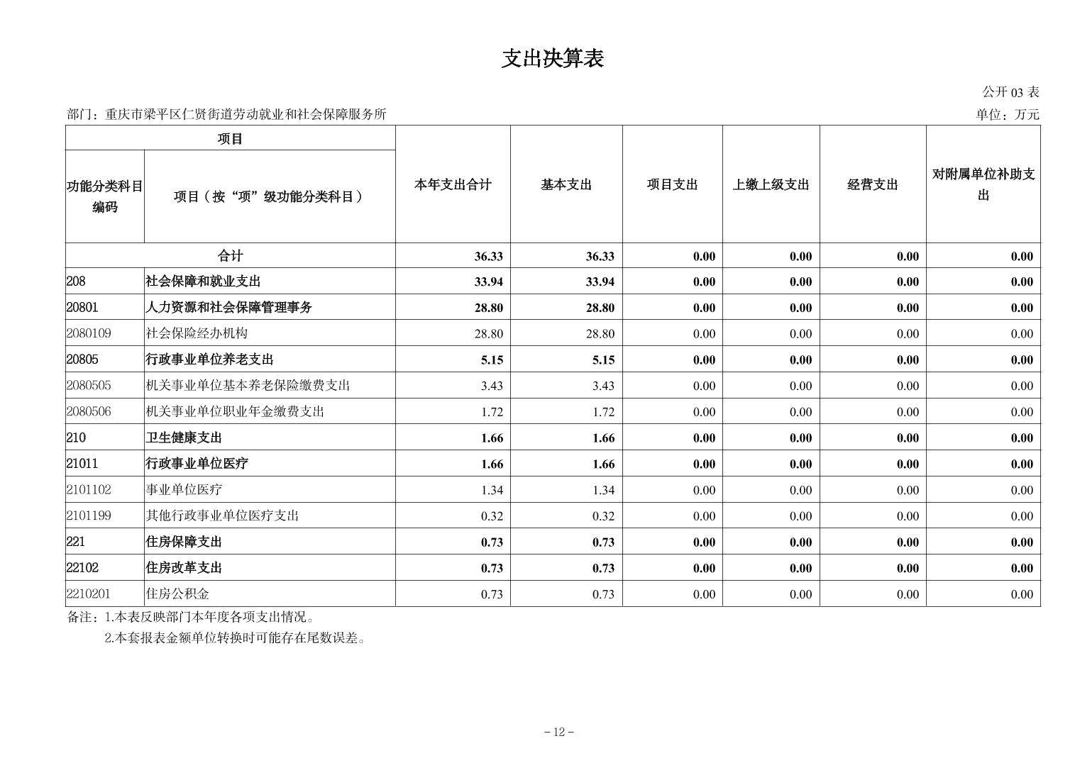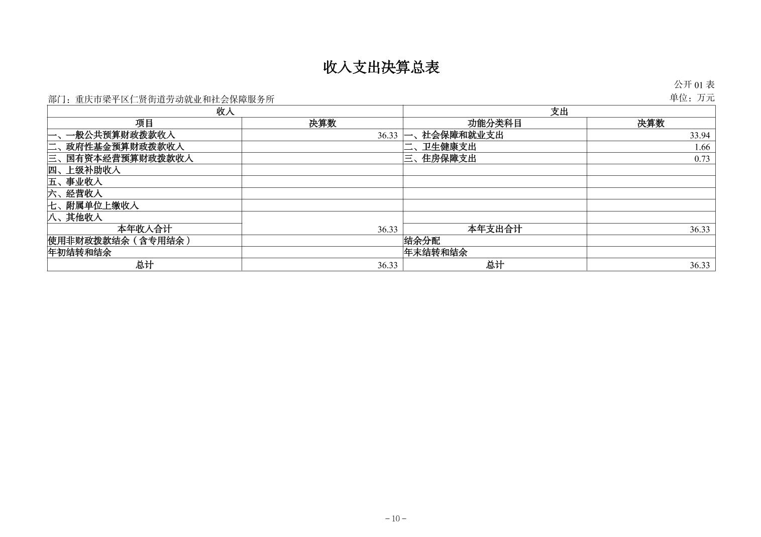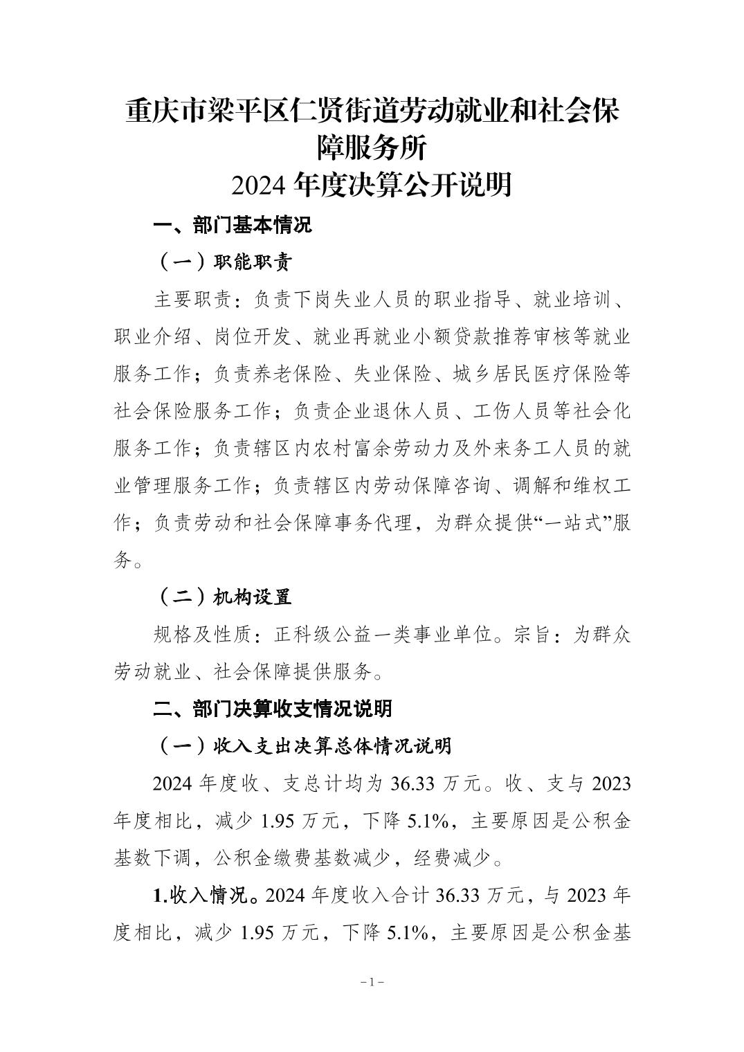 | 标题 | 重庆市梁平区仁贤街道劳动就业和社会保障服务所2024年决算公开说明及公开报表 |