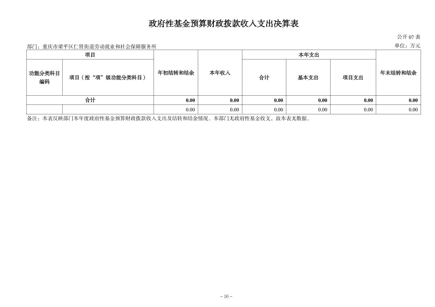 | 标题 | 重庆市梁平区仁贤街道劳动就业和社会保障服务所2024年决算公开说明及公开报表 | ||