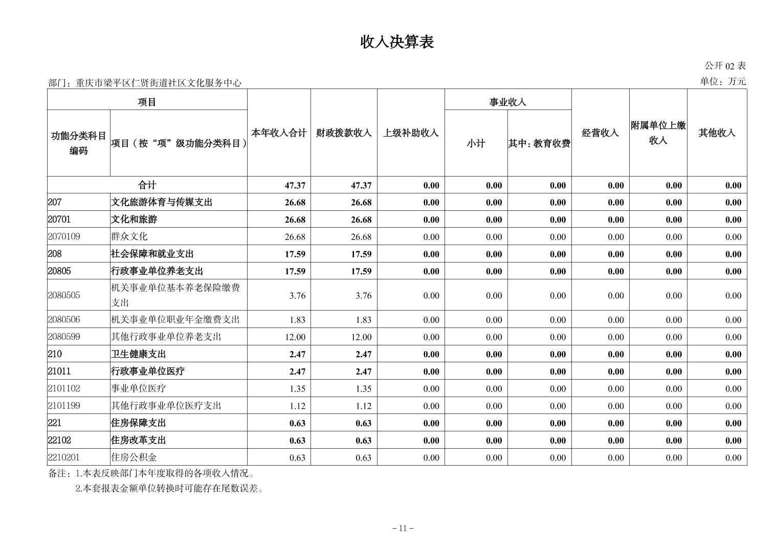 | 标题 | 重庆市梁平区仁贤街道社区文化服务中心2024年决算公开说明及公开报表 | ||