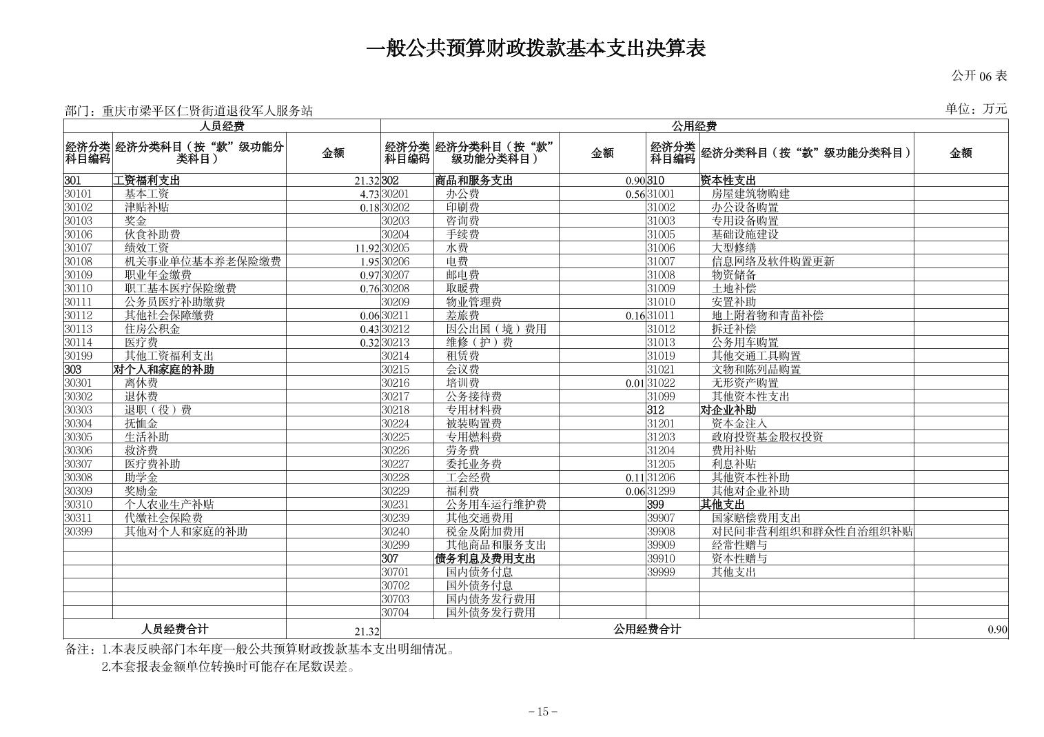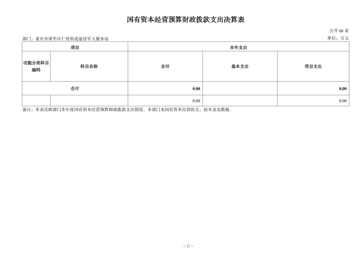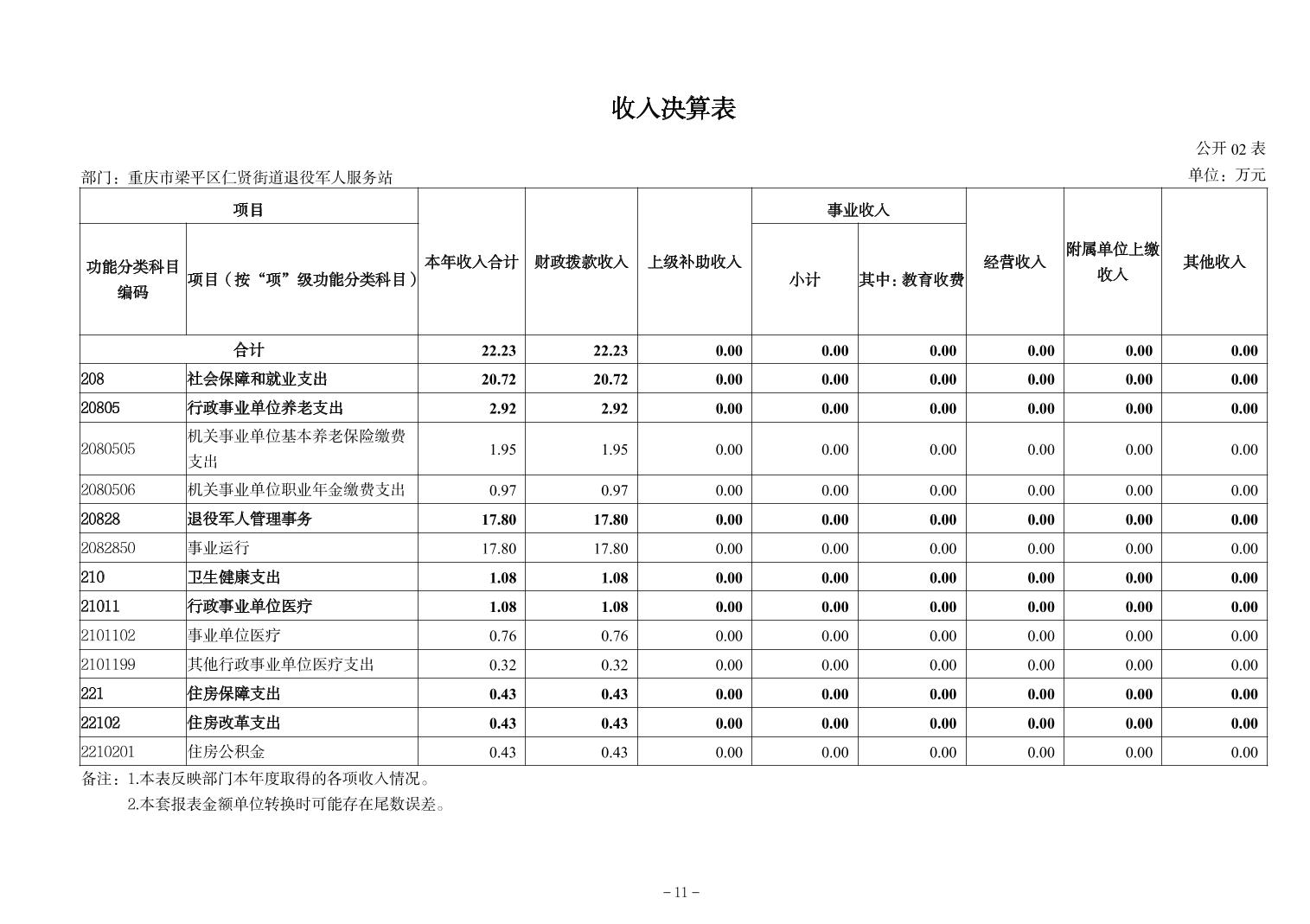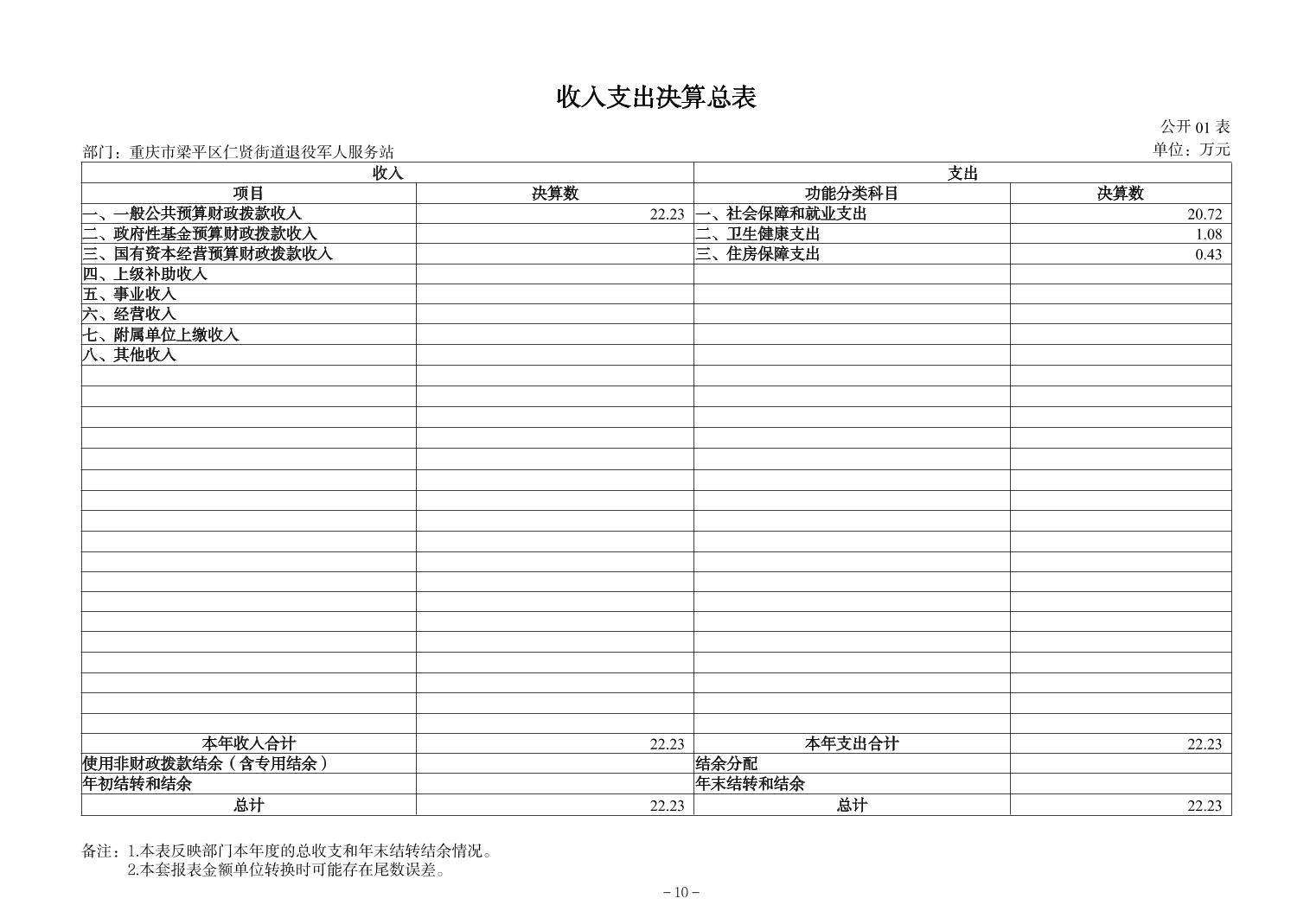 | 标题 | 重庆市梁平区仁贤街道退役军人服务站2024年决算公开说明及公开报表 |