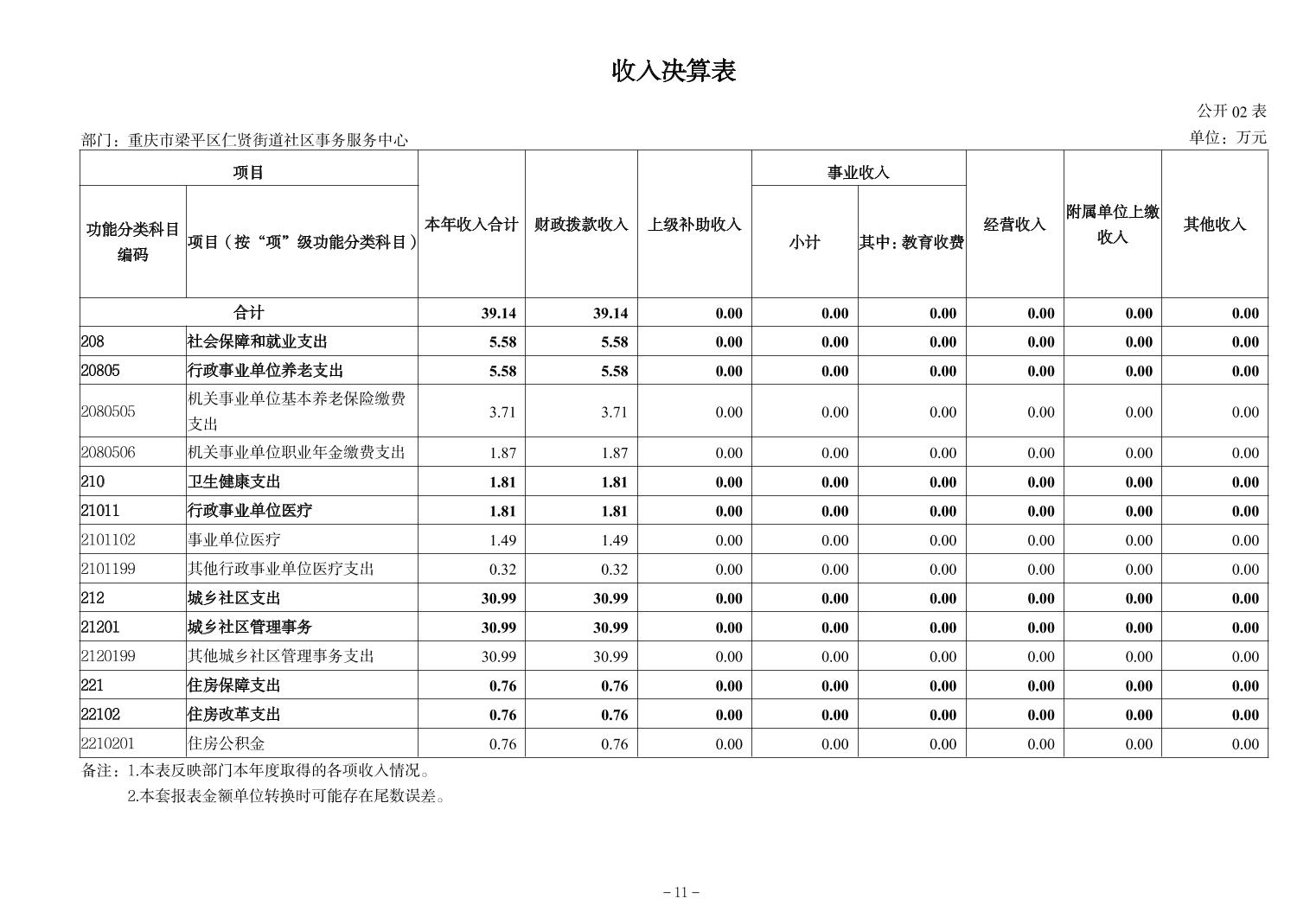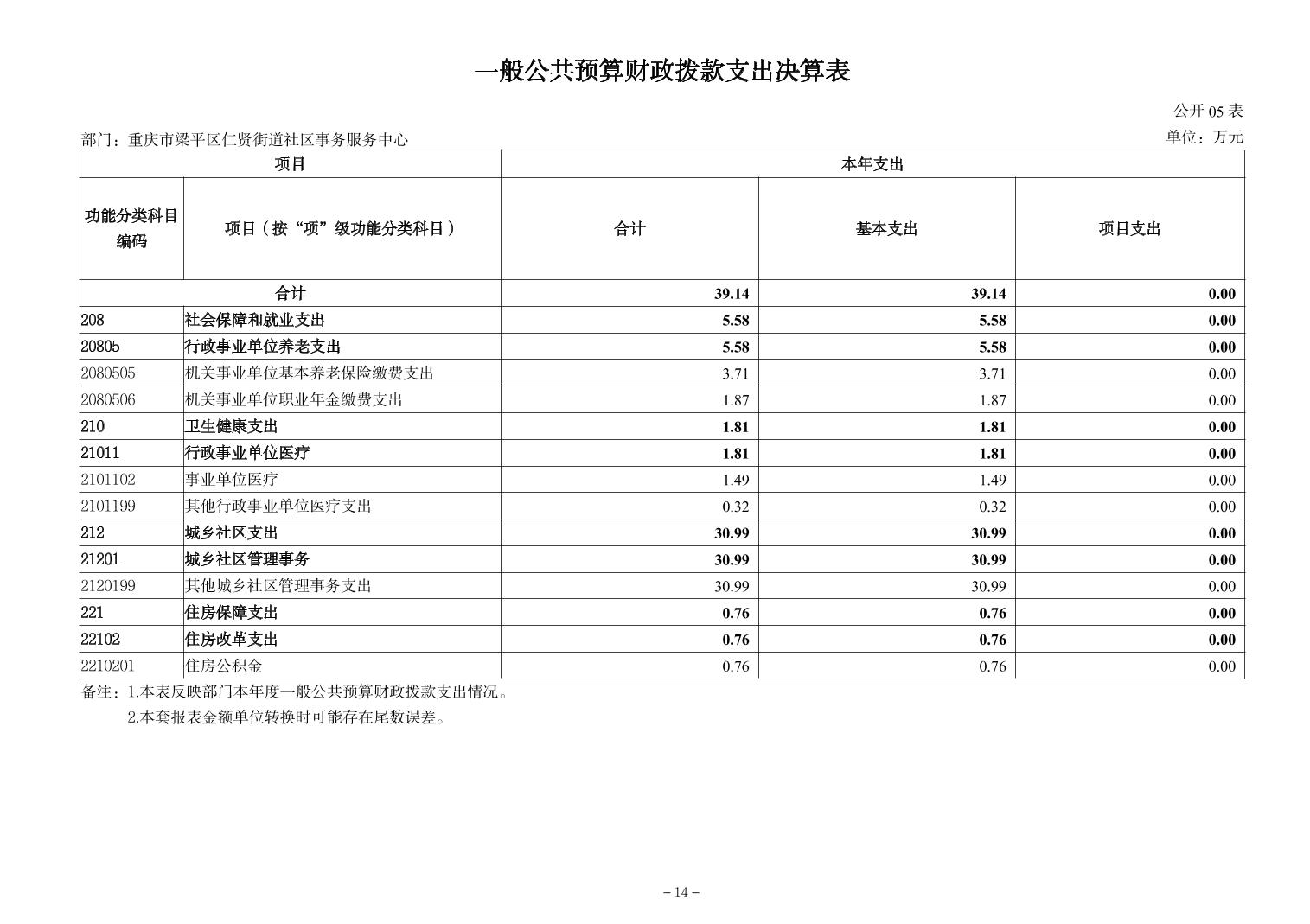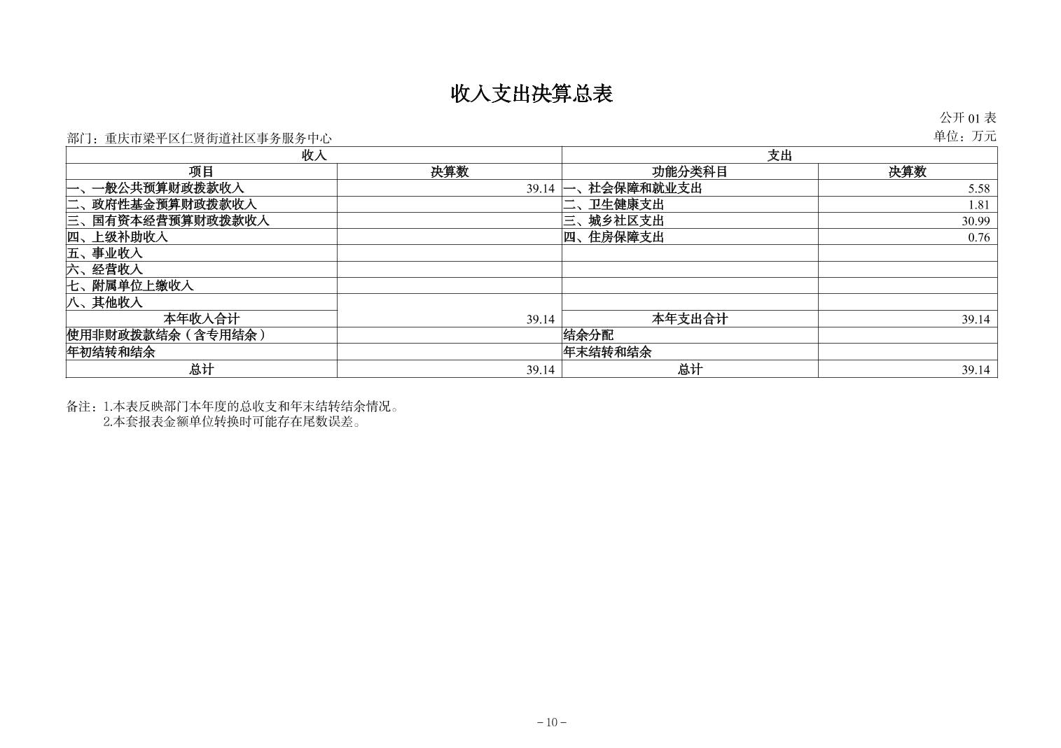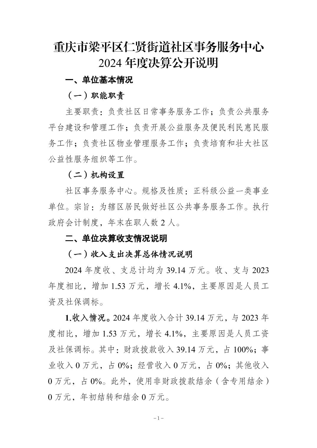 | 标题 | 重庆市梁平区仁贤街道社区事务服务中心2024年决算公开说明及公开报表 |