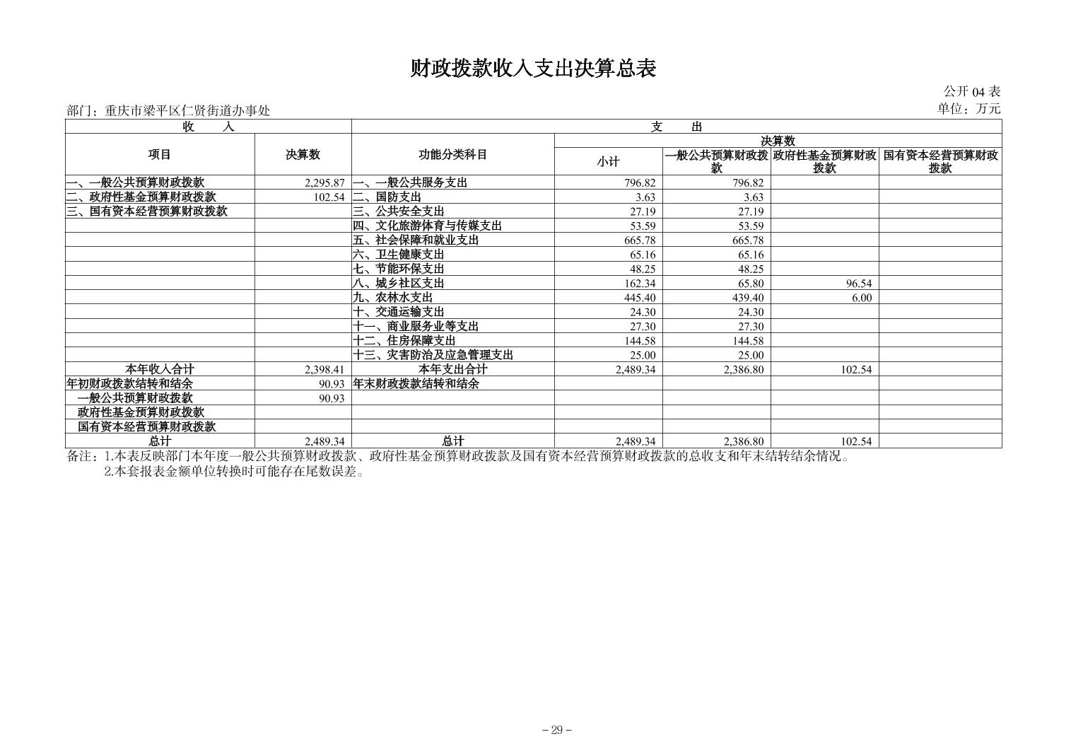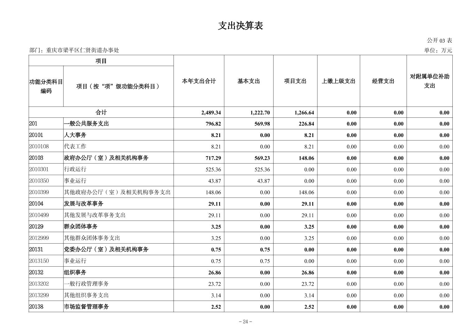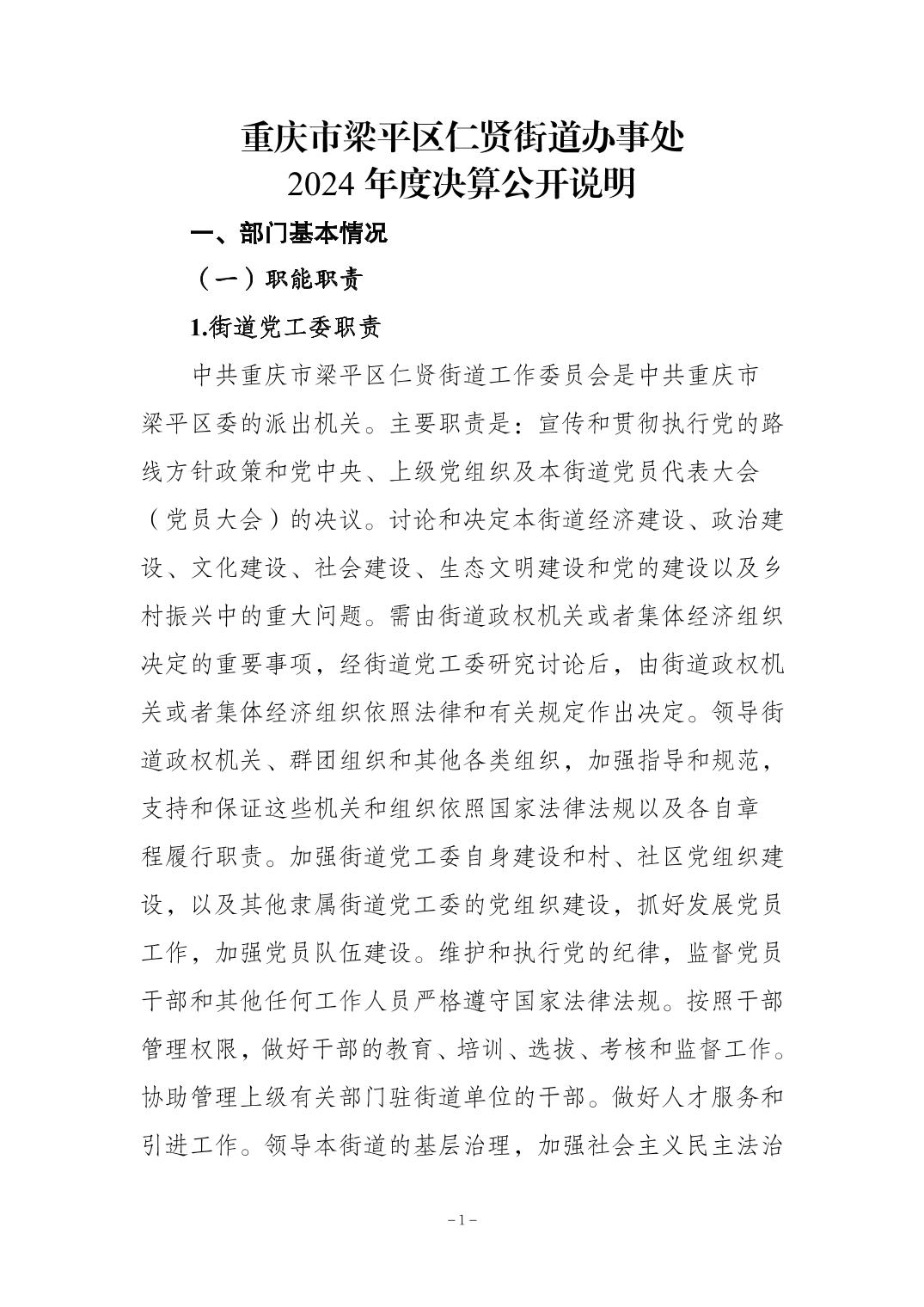 | 标题 | 重庆市梁平区仁贤街道办事处2024年决算公开说明及公开报表 |