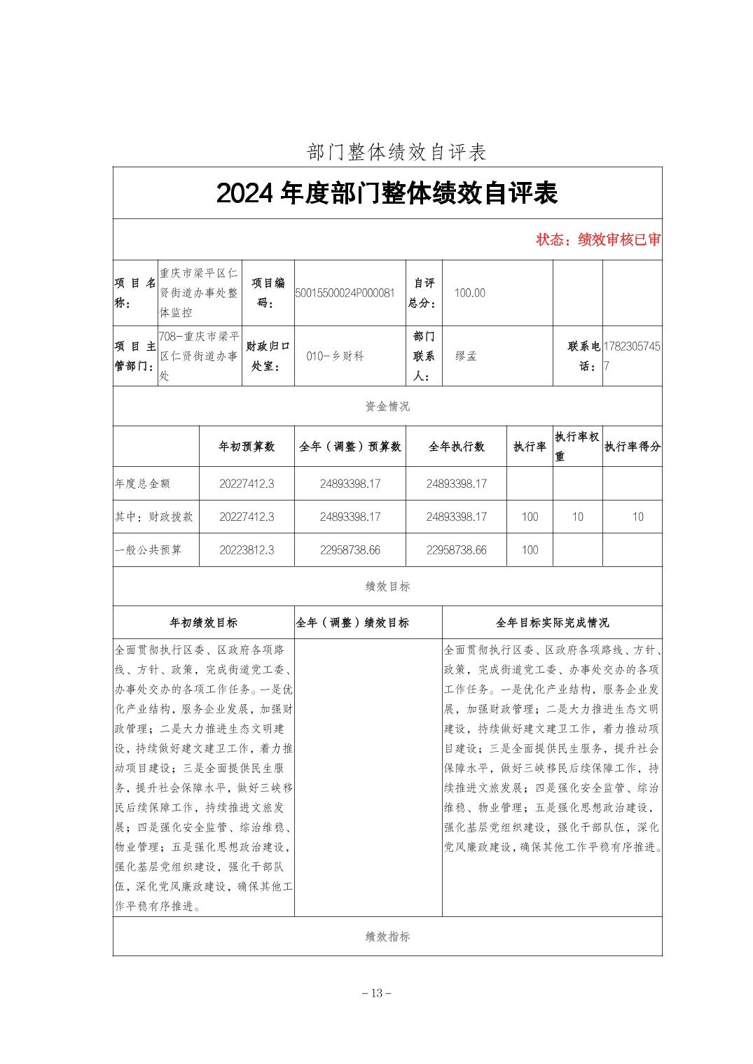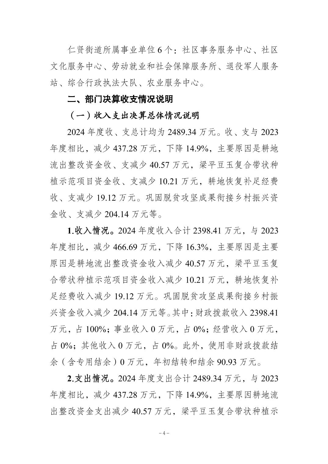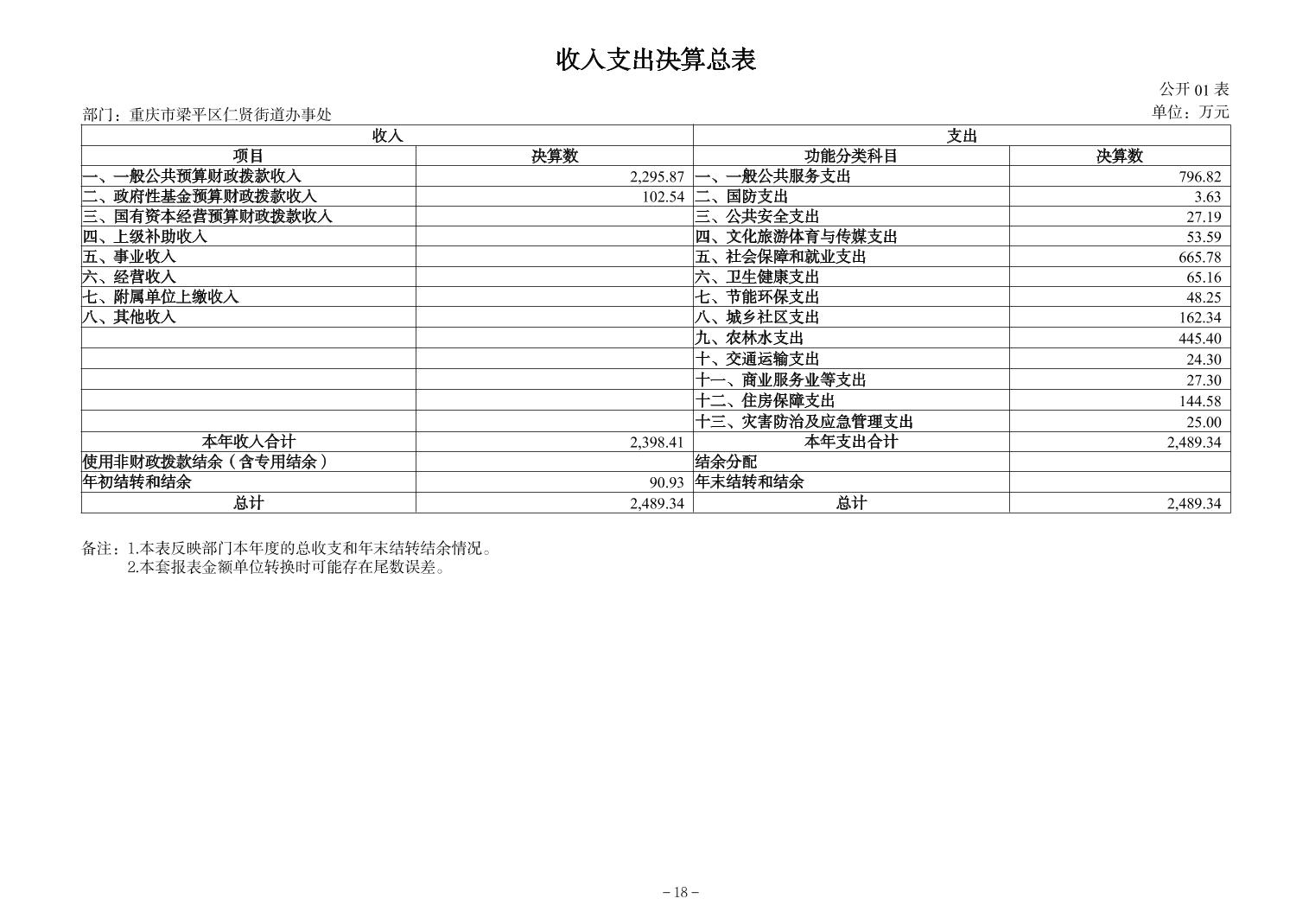 | 标题 | 重庆市梁平区仁贤街道办事处2024年决算公开说明及公开报表 |