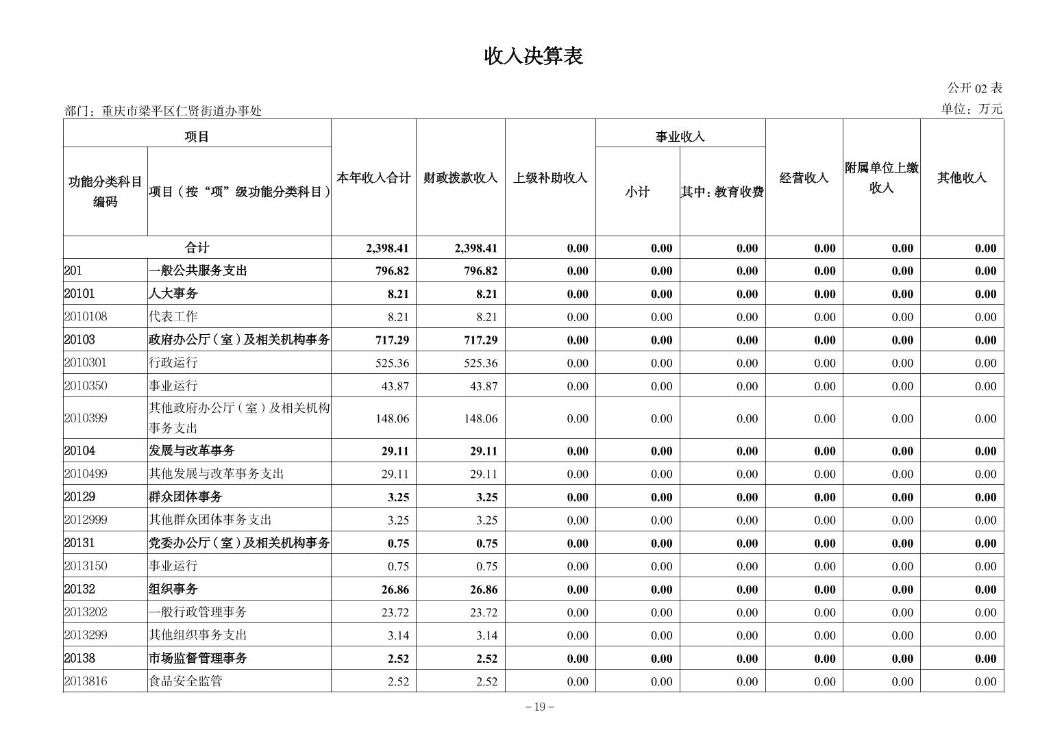 | 标题 | 重庆市梁平区仁贤街道办事处2024年决算公开说明及公开报表 | ||