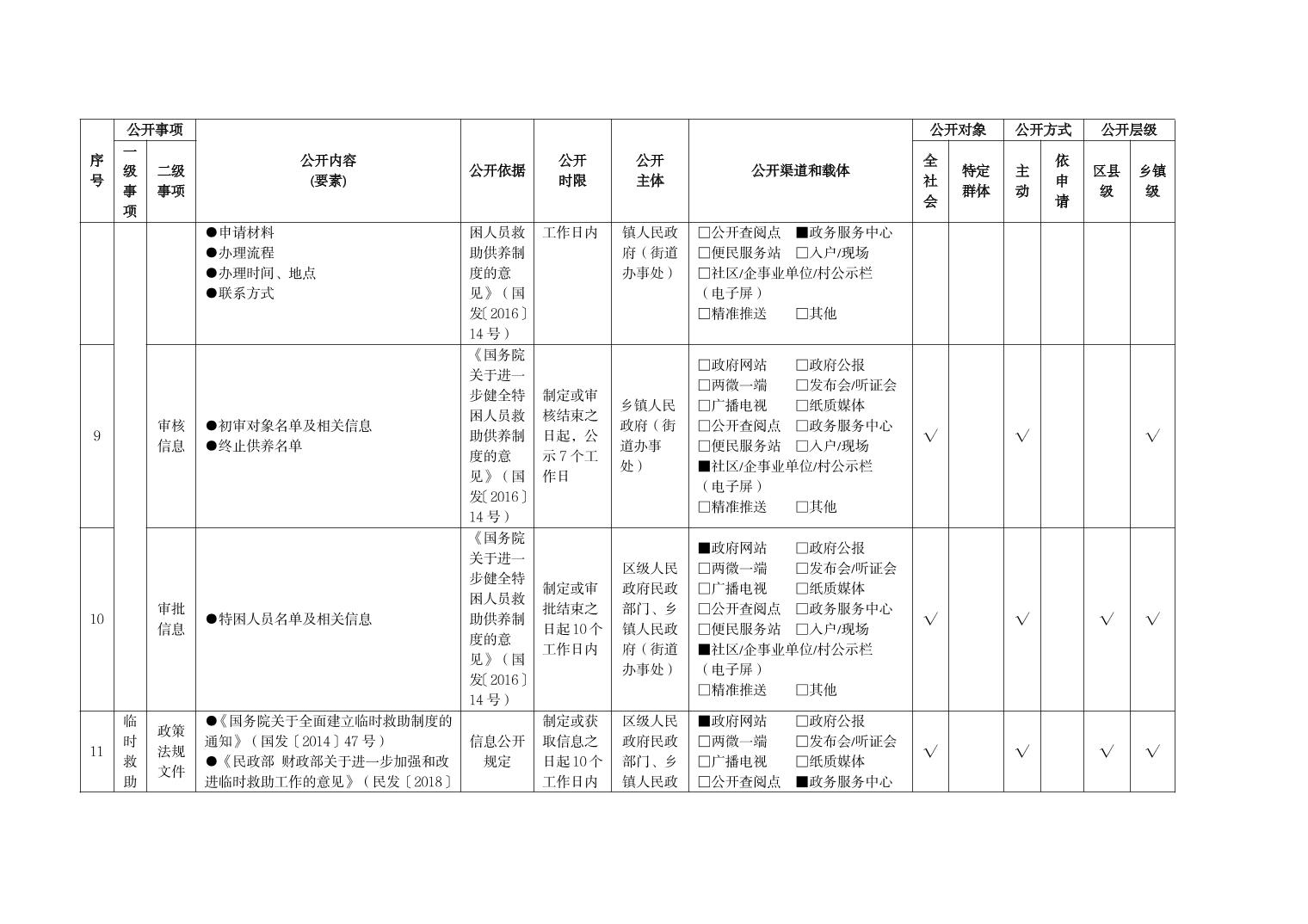重庆市梁平区社会救助领域基层政务公开标准目录