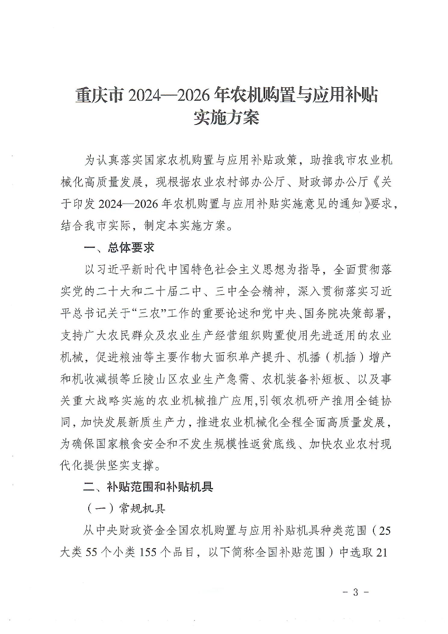 | 标题 | 重庆市2024-2026年农机购置与应用补贴实施方案 |